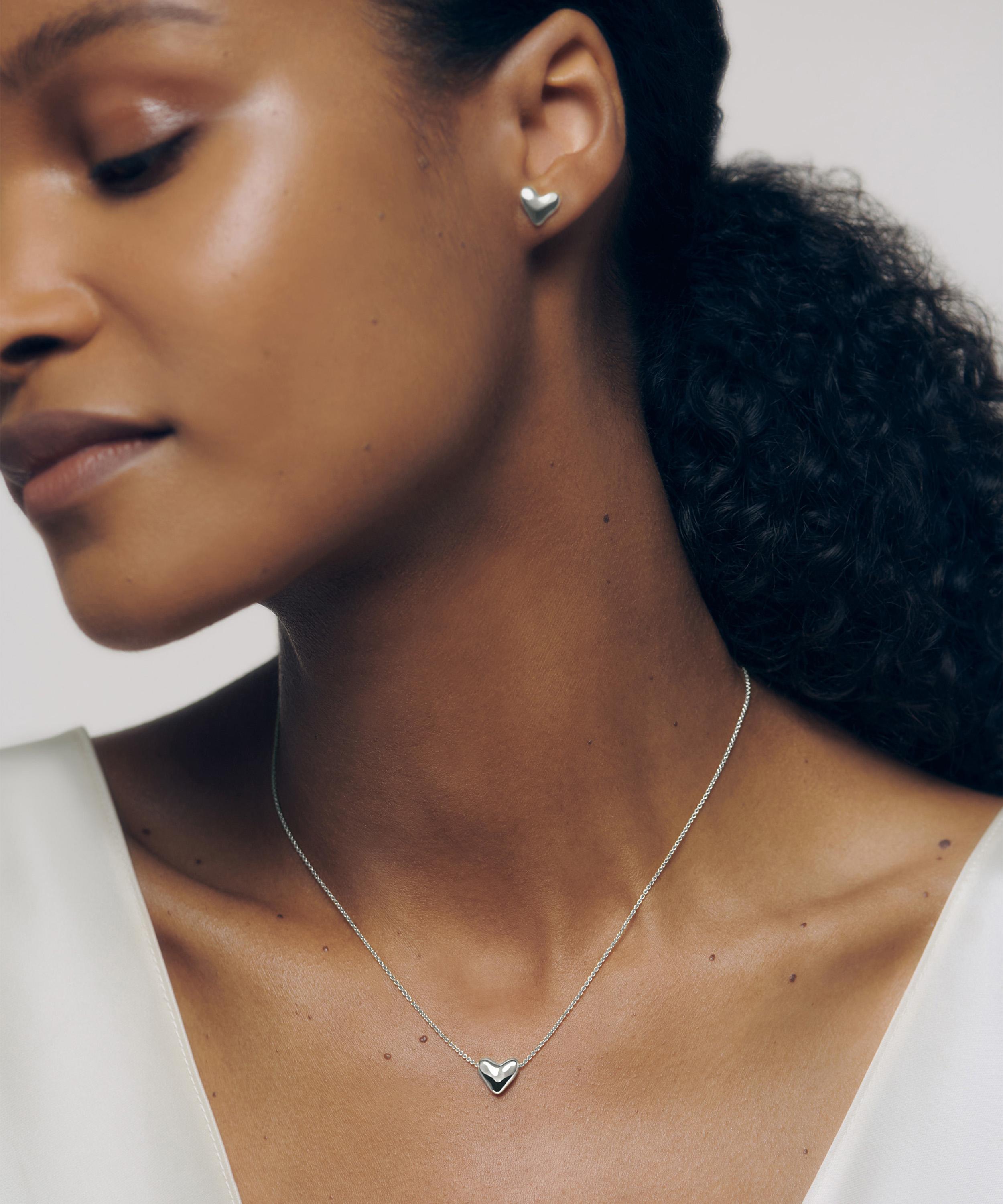 Empower your individual style and transform curated outfits with these contemporary stud earrings from Monica Vinader. Crafted from sterling silver, each earring features a heart-shaped pebble in a polished finish. Wear solo, or stacked and style alongside your go-to gold earrings.
