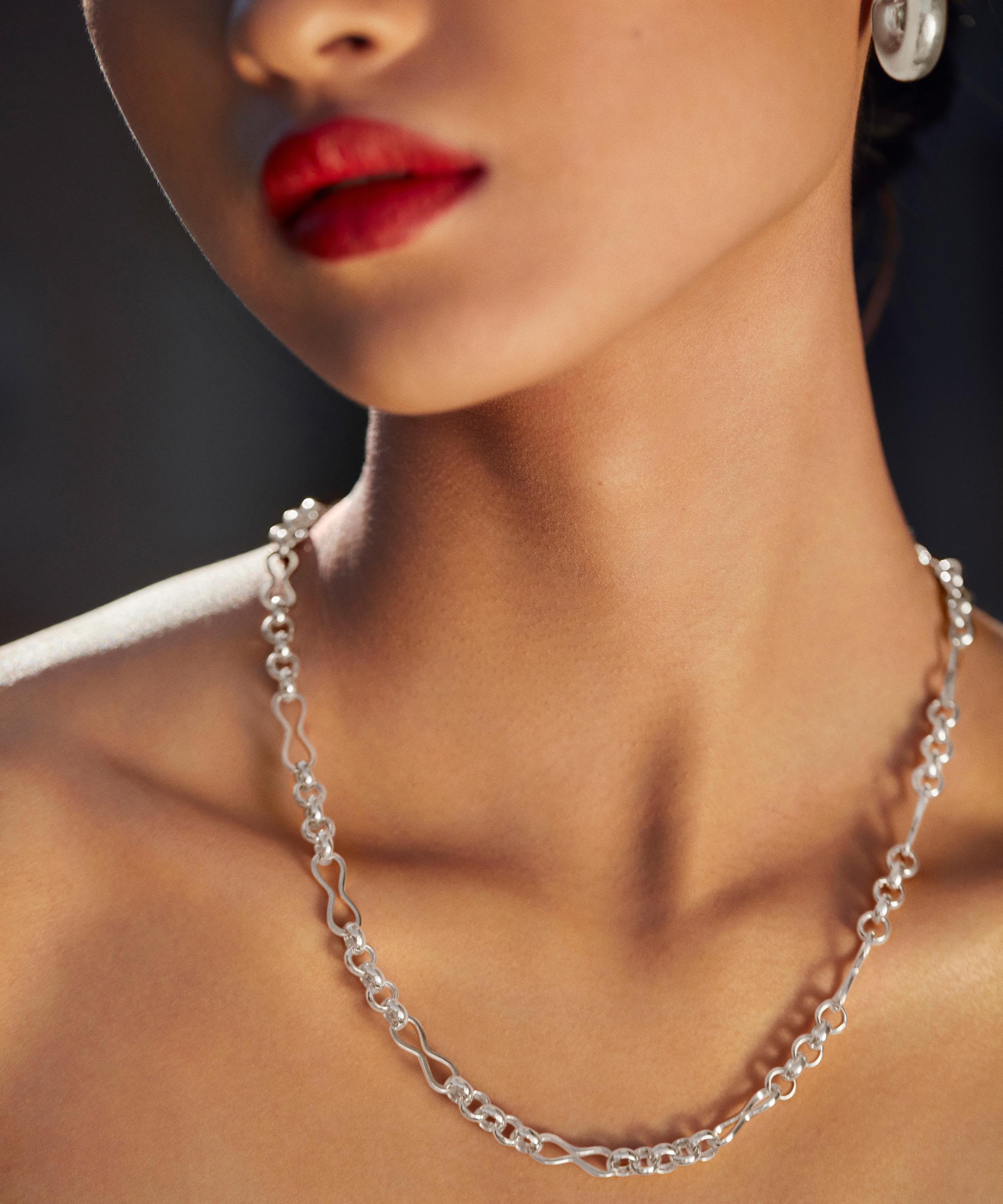 Elevate your everyday jewellery line-up with the Heritage link chain necklace by Monica Vinader. Crafted from recycled sterling silver, this statement necklace features a unique design with fourteen rolo links and fourteen pinched inks in an alternating setting. Ideal for layering, style it with additional chains for a trend-led finish.
