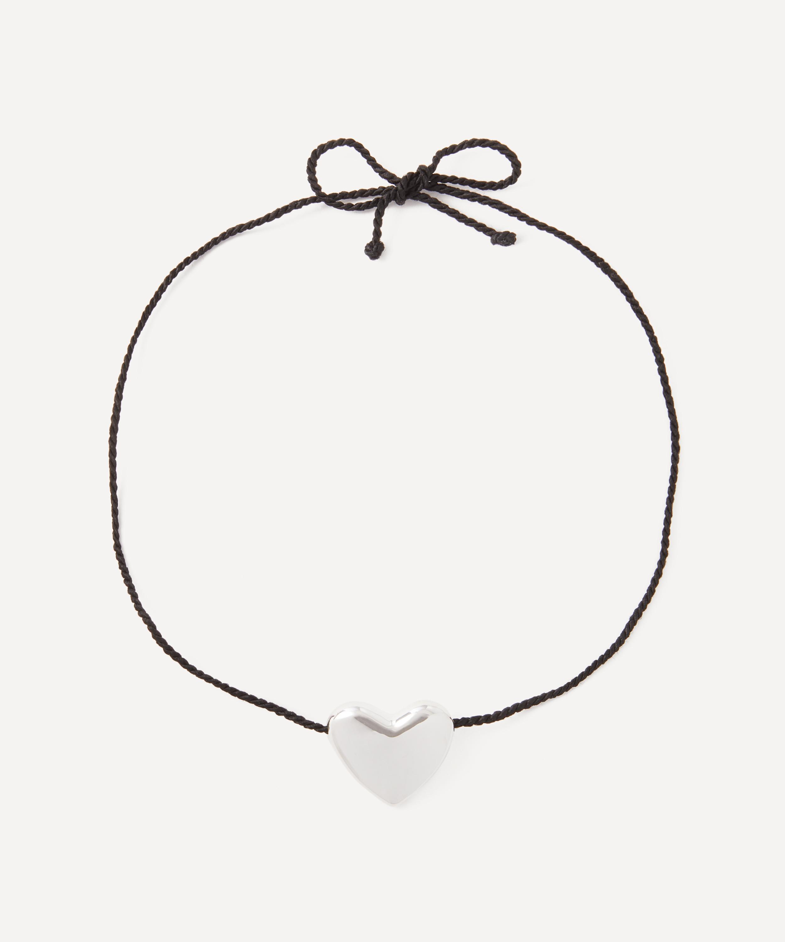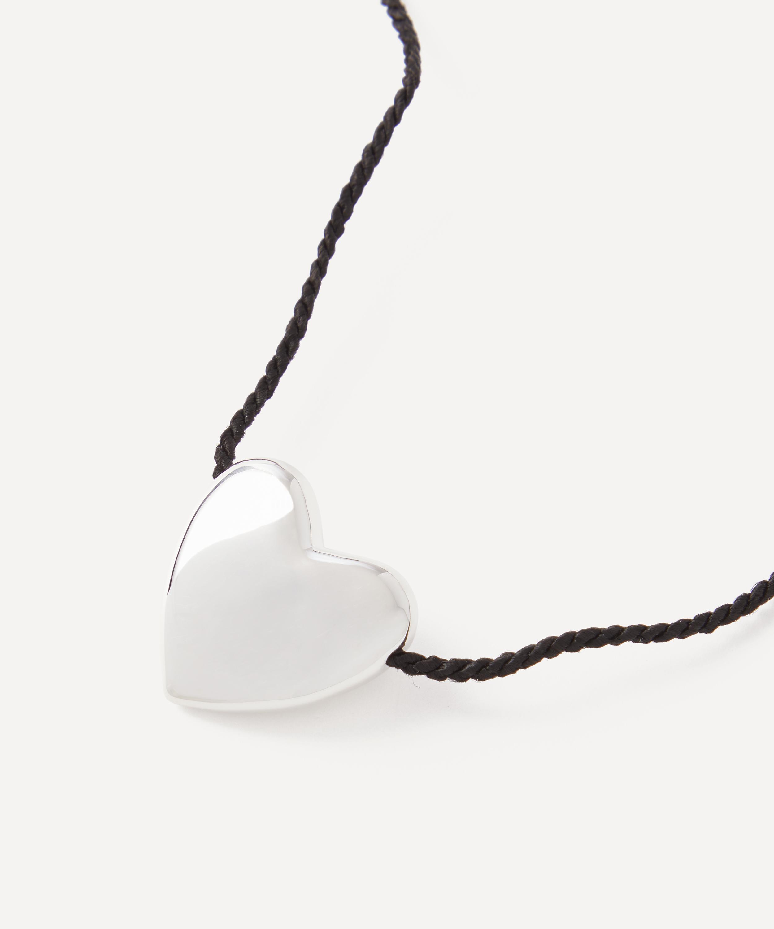 Showcasing the romantic aesthetic Annika Inez is known for, this pendant necklace boasts an elegant and playful way to elevate your edit. Crafted from sterling silver, it features a large, heart-shaped pendant suspended from black silk cord.