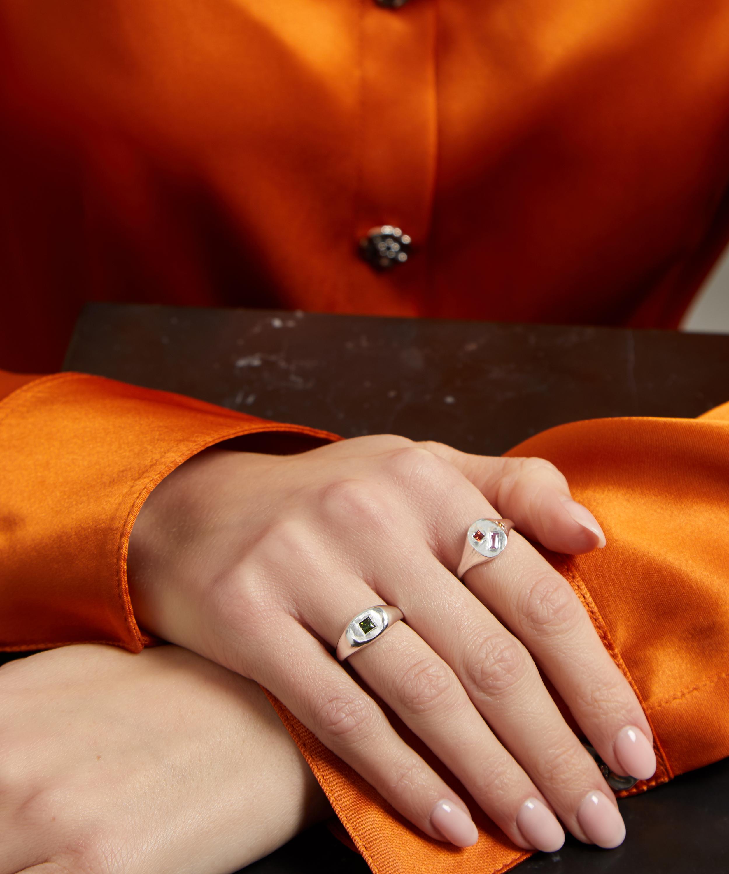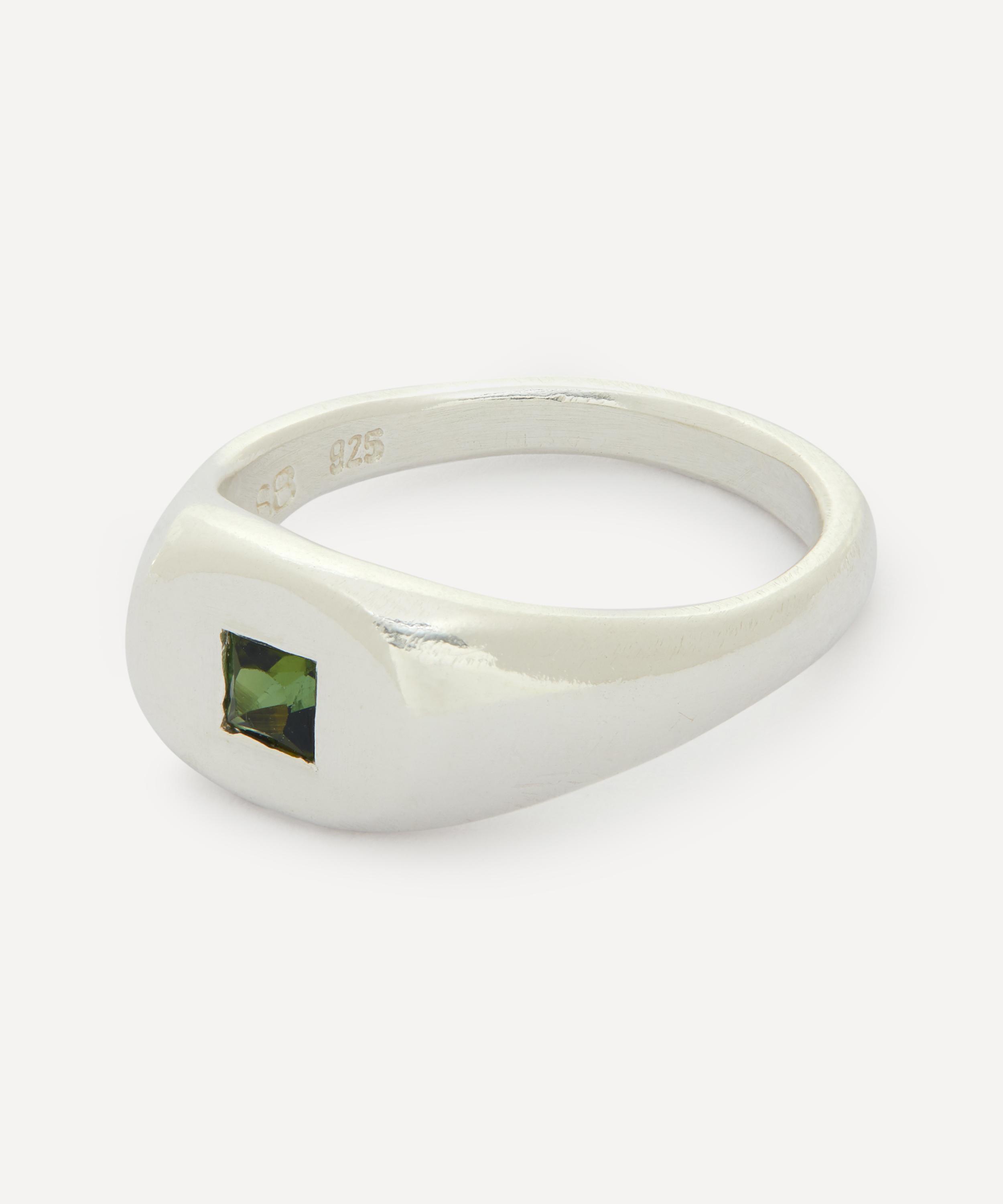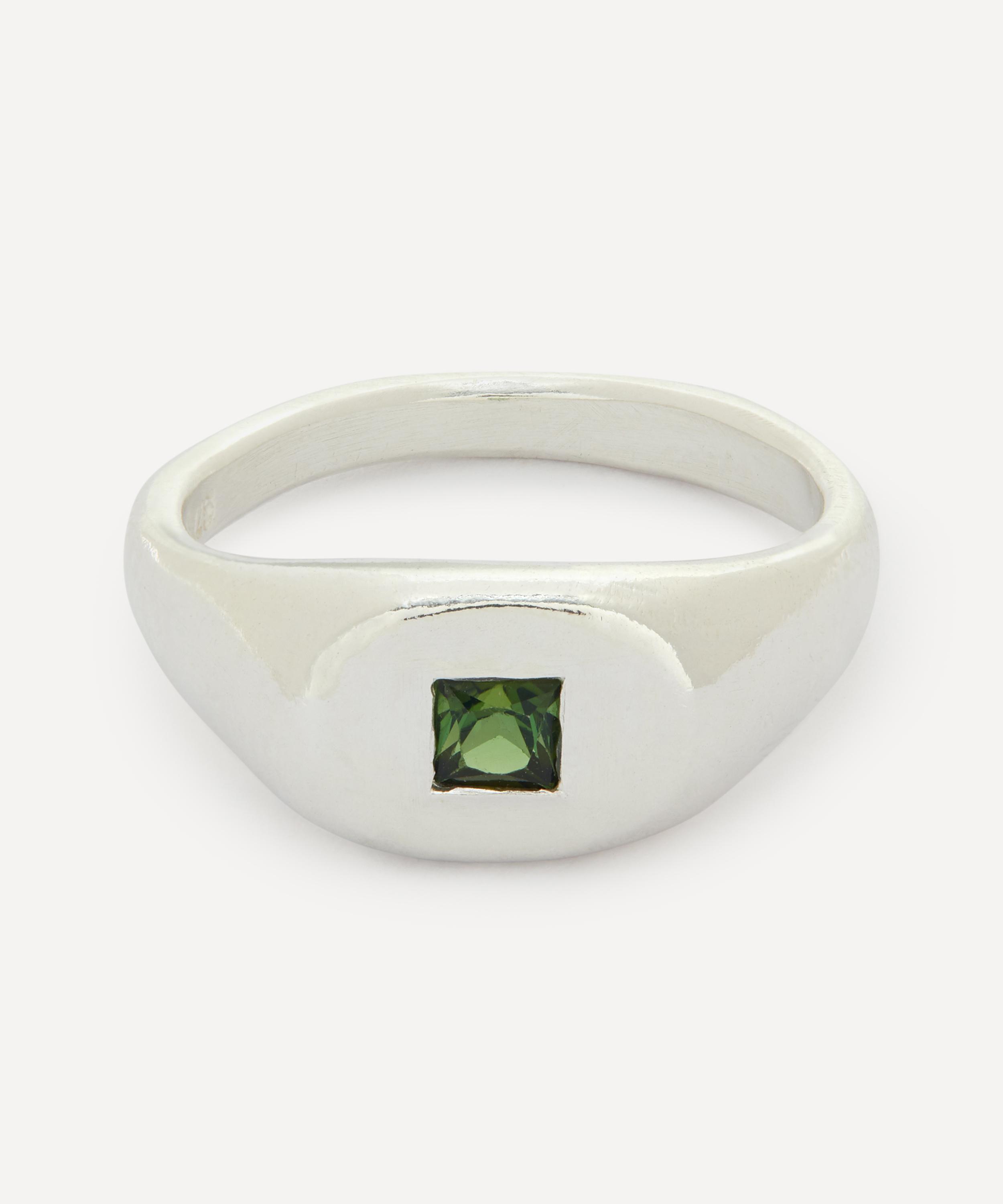 Handmade in Melbourne from polished silver, this small, round signet ring from Seb Brown is cast with a single princess cut green tourmaline stone for an understated yet richly coloured sparkle that changes in different lights. The designer’s experimental design process means every piece is unique - often varying in colour, shape, and texture for an organic finish that's perfect for injecting a burst of individuality into your everyday jewellery line-up.
