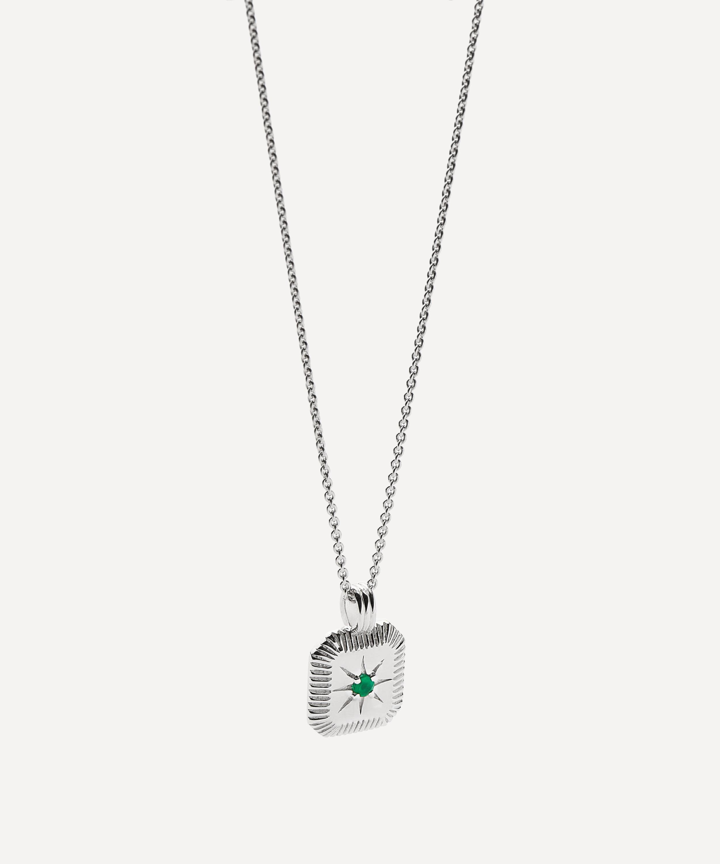 This birthstone pendant necklace from Missoma seamlessly blends stylish design with meaningful symbolism – taking personalised jewellery to a new level. Crafted from sterling silver, this necklace features a fine cable chain with a beautifully ridged pendant. The pendant is embellished with a central star motif, fitted with a dyed green chalcedony – making it the perfect gift for anyone born in May.