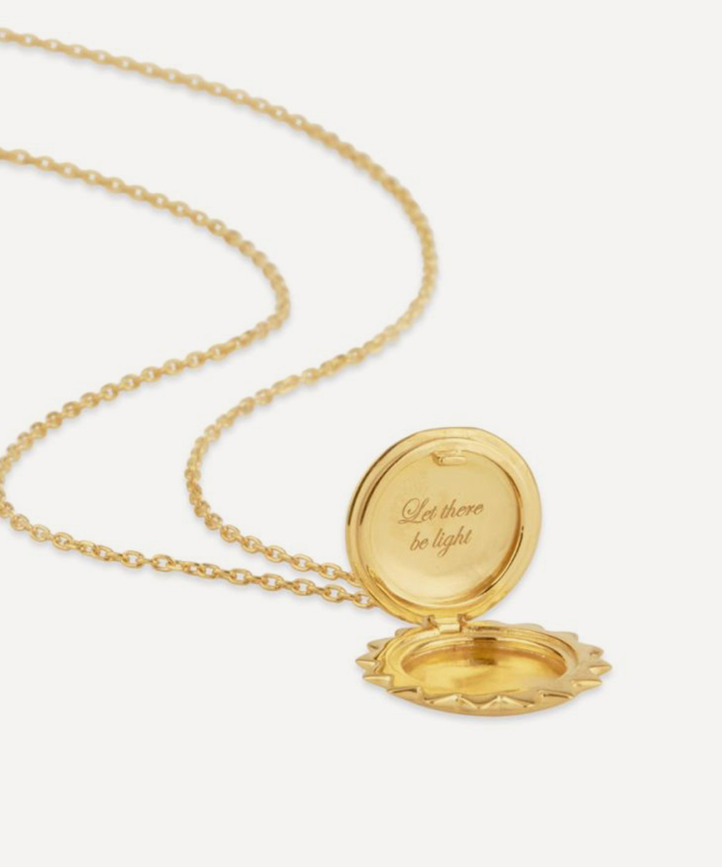 Crafted from sterling silver, it features a fine trace chain and a sun locket, beautifully decorated with a secret inscription inside that reads: ‘Let There Be Light’. Style yours as a solo piece, add it to a curated stack, or team with other pieces from the collection.