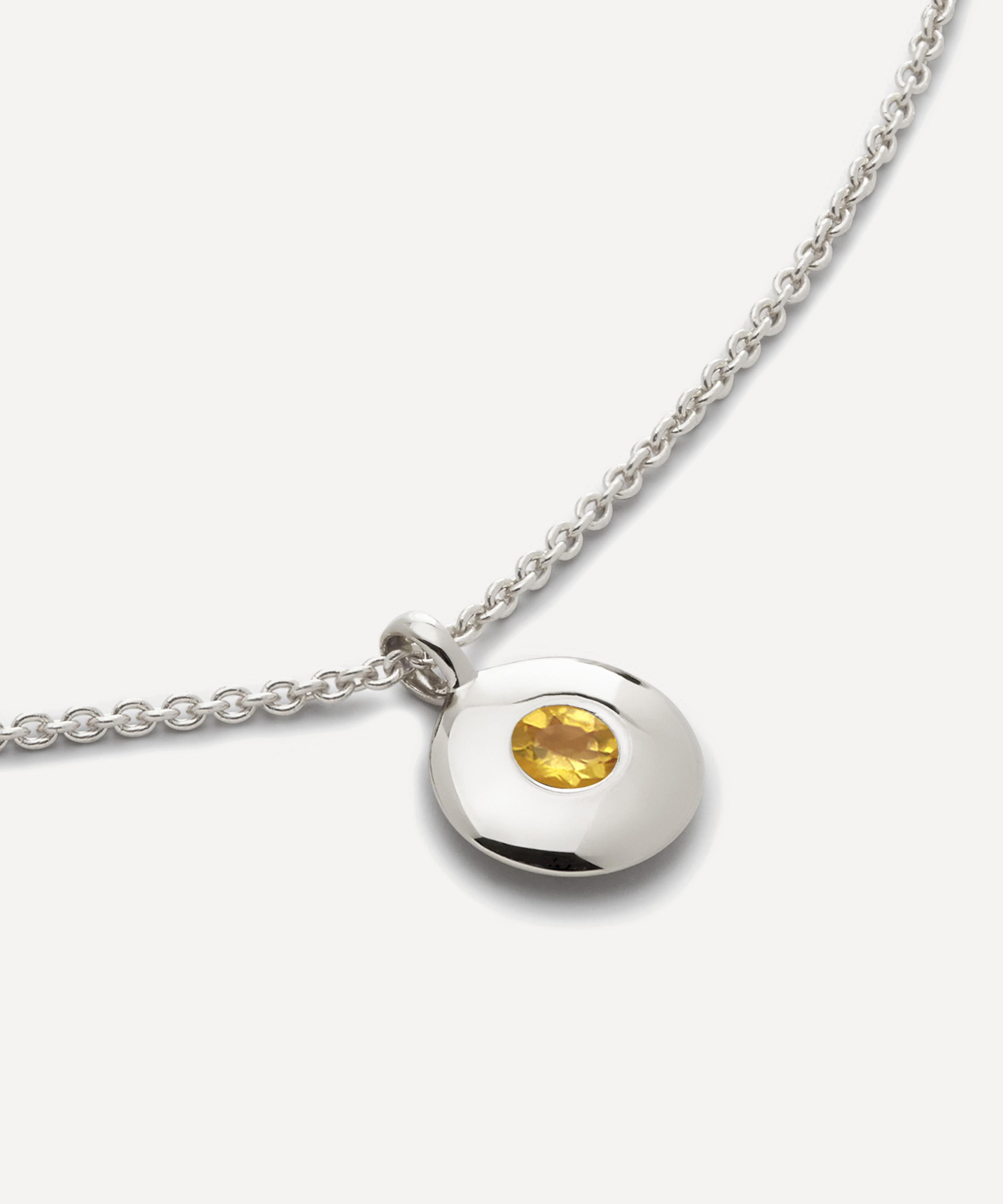 Crafted from sterling silver, it features a fine link chain and polished pebble pendant, adorned with a round cut citrine – perfect for anyone born in the month of November. Boasting a fine keepsake to treasure for years to come, treat yourself or make it a wonderfully thoughtful and personalised gift for someone special.