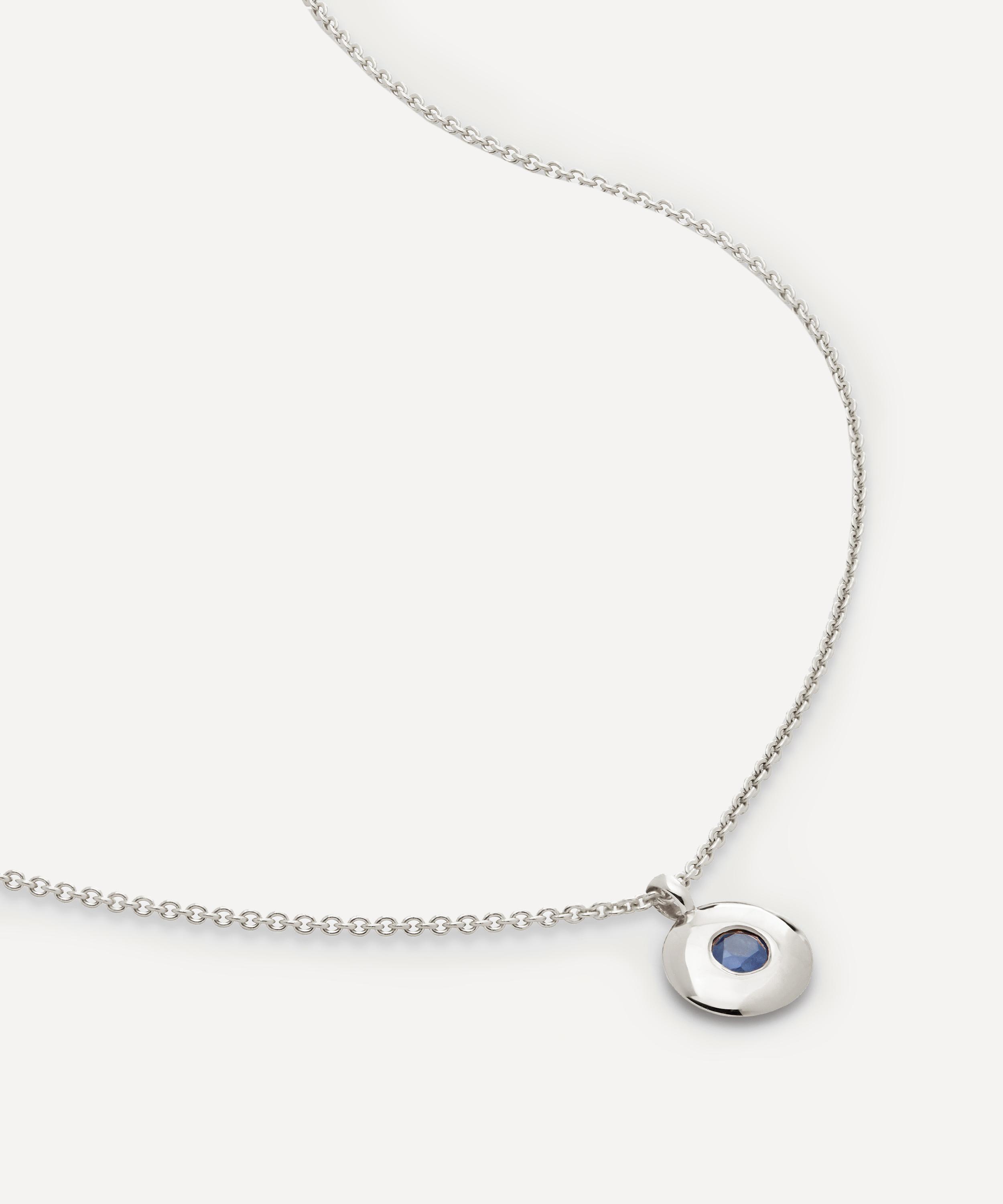Crafted from sterling silver, it features a fine link chain and polished pebble pendant, adorned with a round cut blue sapphire – perfect for anyone born in the month of September. Boasting a fine keepsake to treasure for years to come, treat yourself or make it a wonderfully thoughtful and personalised gift for someone special.