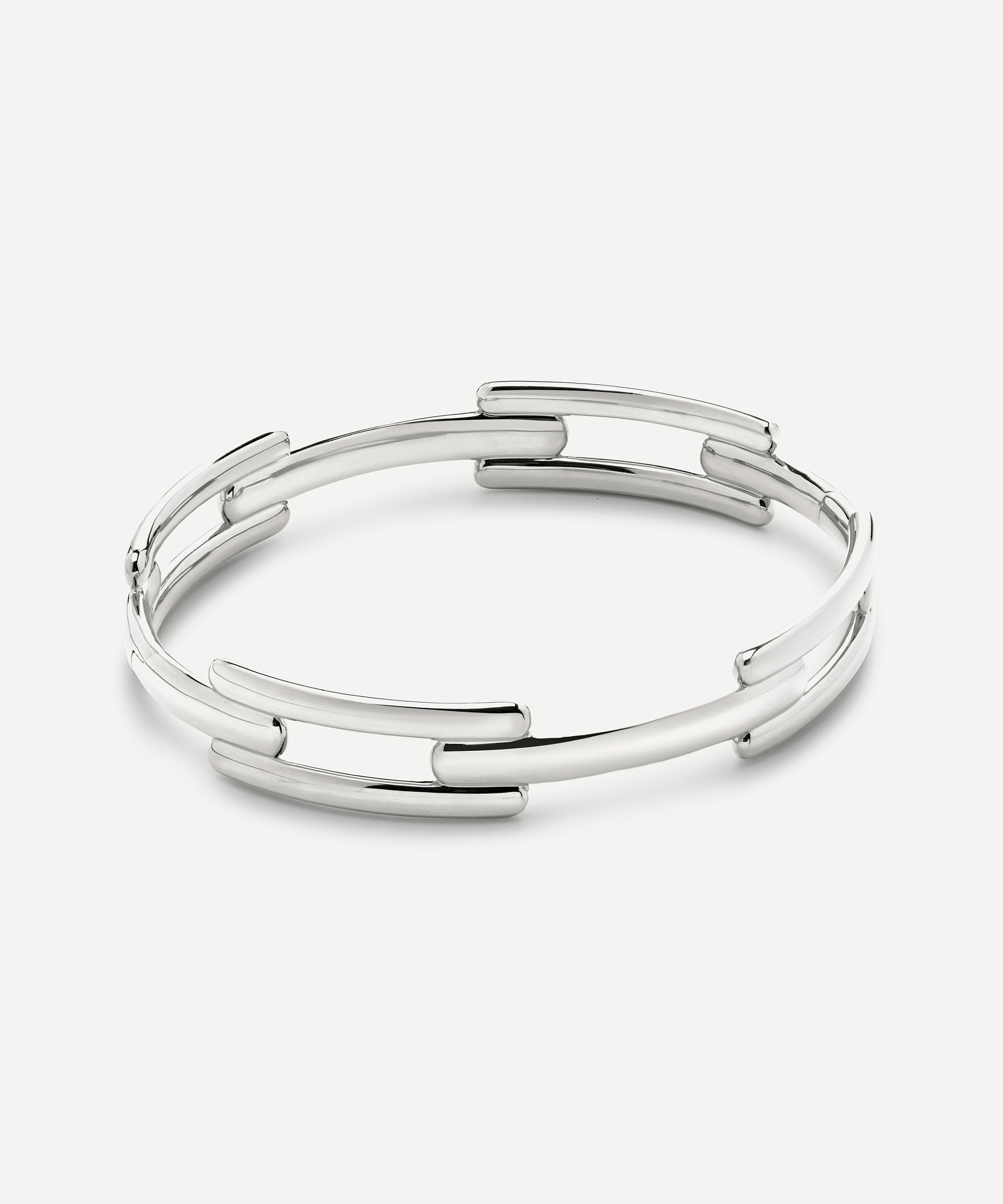 Taking inspiration from contemporary architecture, every piece in Monica Vinader's Signature collection combines strong, clean lines and flowing curves for a modern and feminine finish. Perfect for stacking or styling alone, this bangle showcases an elegantly curved design with an angular flat bar and inverted corners. Try wearing it with several contrasting Signature bangles for a seamless stack of polished metal that will instantly elevate your everyday look.