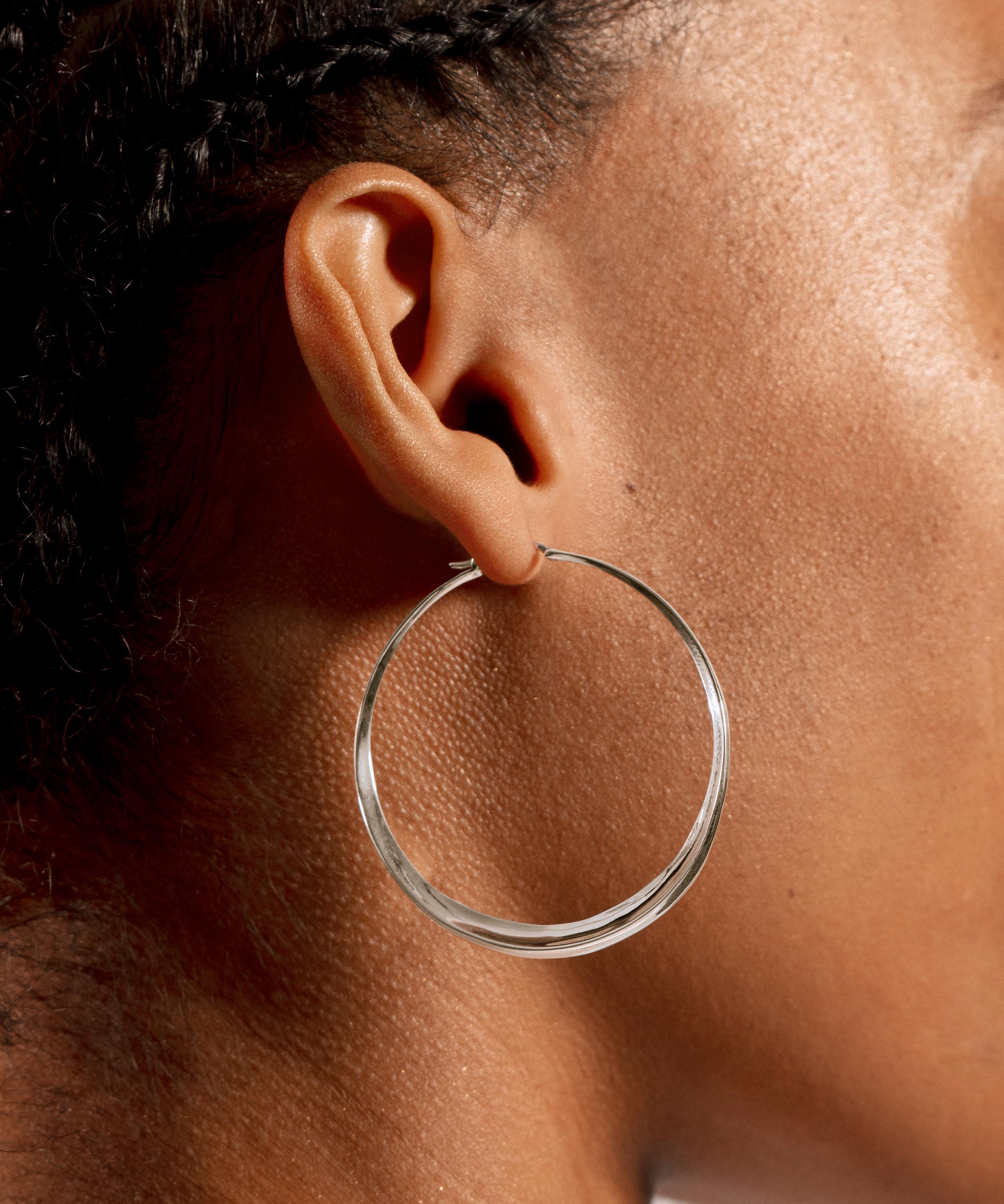 Crafted from recycled silver, these hoop earrings are part of Monica Vinader’s Deia collection.