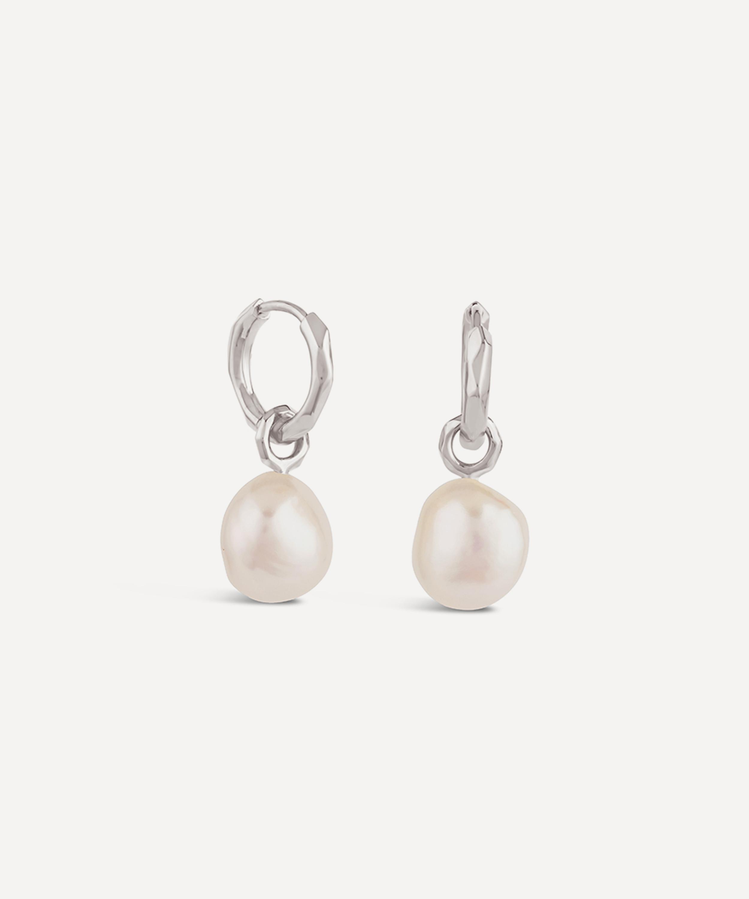 Crafted from sterling silver, each earring features a faceted hoop – to appear worn away by the passing tides - adorned with an opulent baroque pearl drop. Complete in a polished and light refracting finish, they make for a mini statement piece perfect for everyday styling. Wear this pair alone, or layer them with additional hoops and studs for a trend-led finish.