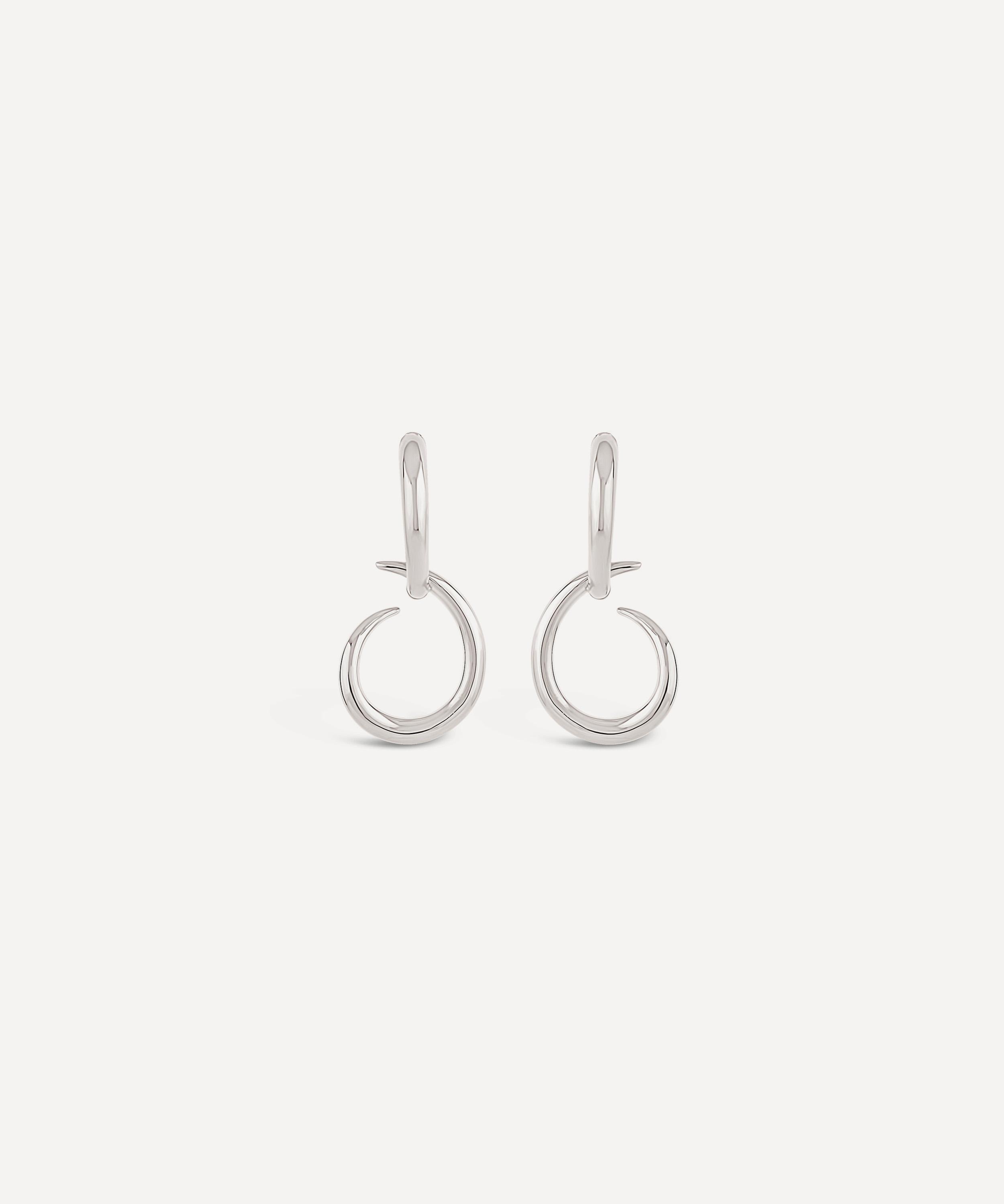 Empower your self-expression and unique style with Dinny Hall’s emblematic Toro drop hoop earrings. Crafted from sterling silver, this exceptional pair feature a sleek half hoop design with a tapering horn drop – inspired by the Italian cornicello horn. Their sculptural yet versatile silhouette offer seamless day-to-night styling, wear them on their own, pair with matching pieces from the collection, or stack with another pair of silver earrings, hoop earrings and studs to add depth and dimension to your look.