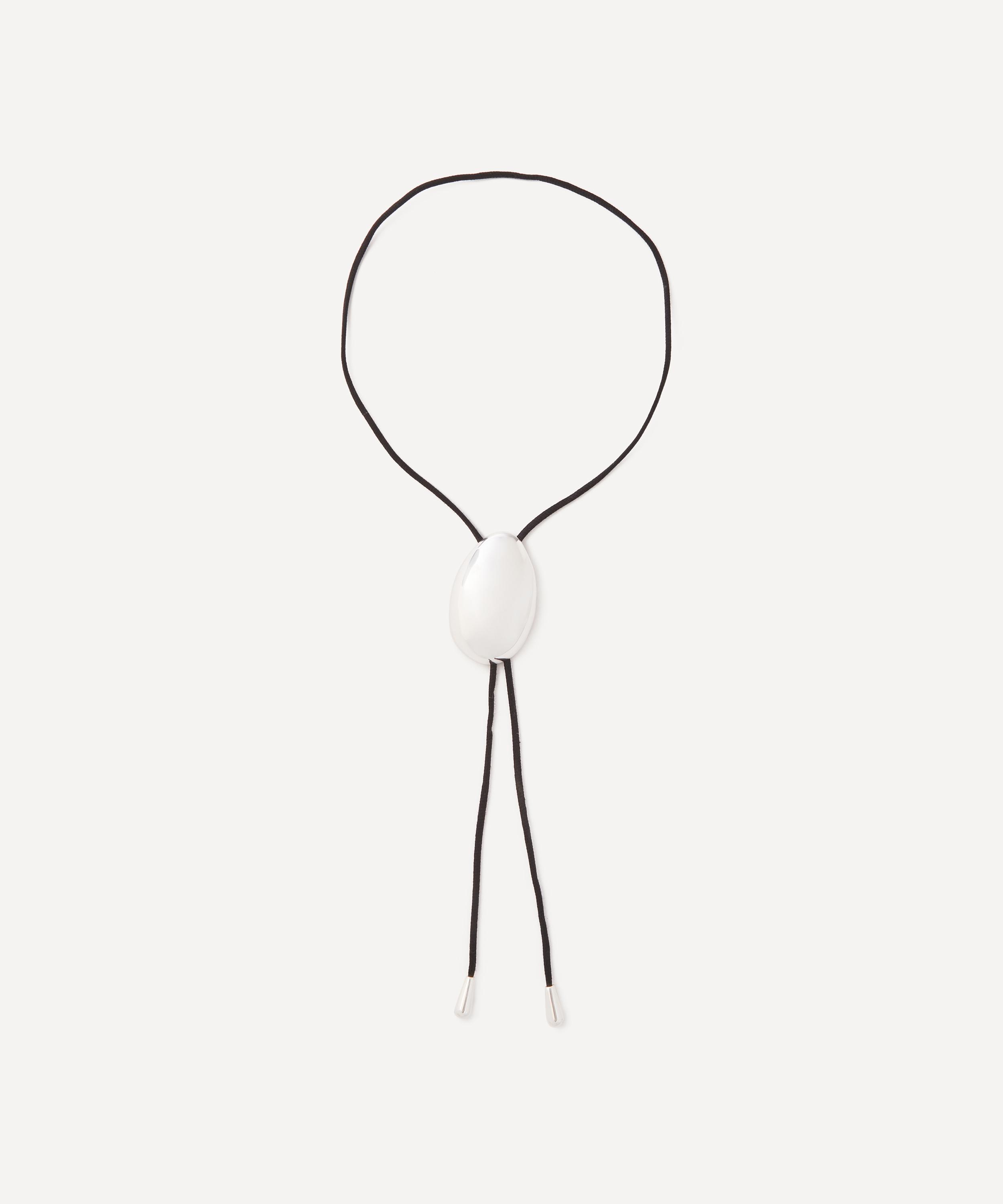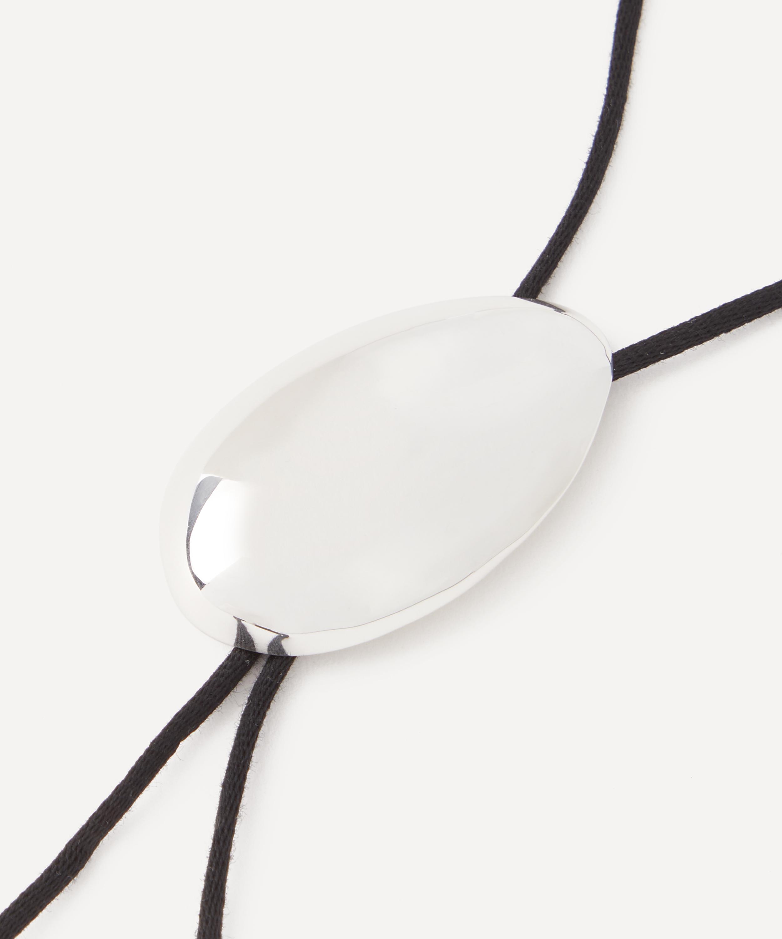 The Vertical bolo necklace from Annika Inez is fusion of modern design and vintage charm. Part of a collaborative collection with Camille Graffin, this necklace features a silver bolo pendant - inspired by antique spoons – on a adjustable black silk cord.