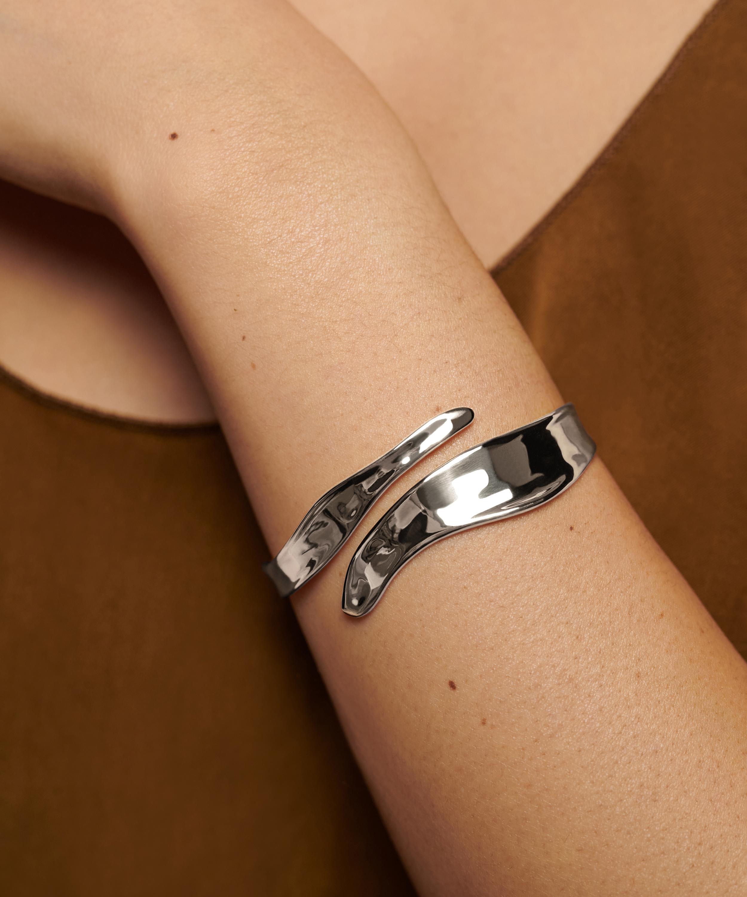 Add visual intrigue to your look with the Wave cuff bracelet – a wearable work of art from Monica Vinader. Crafted from sterling silver, it features an organic, undulating silhouette inspired by the beauty and brilliance of the ocean. Style it solo, or with a mix of bangles and chains to create a curated stack.