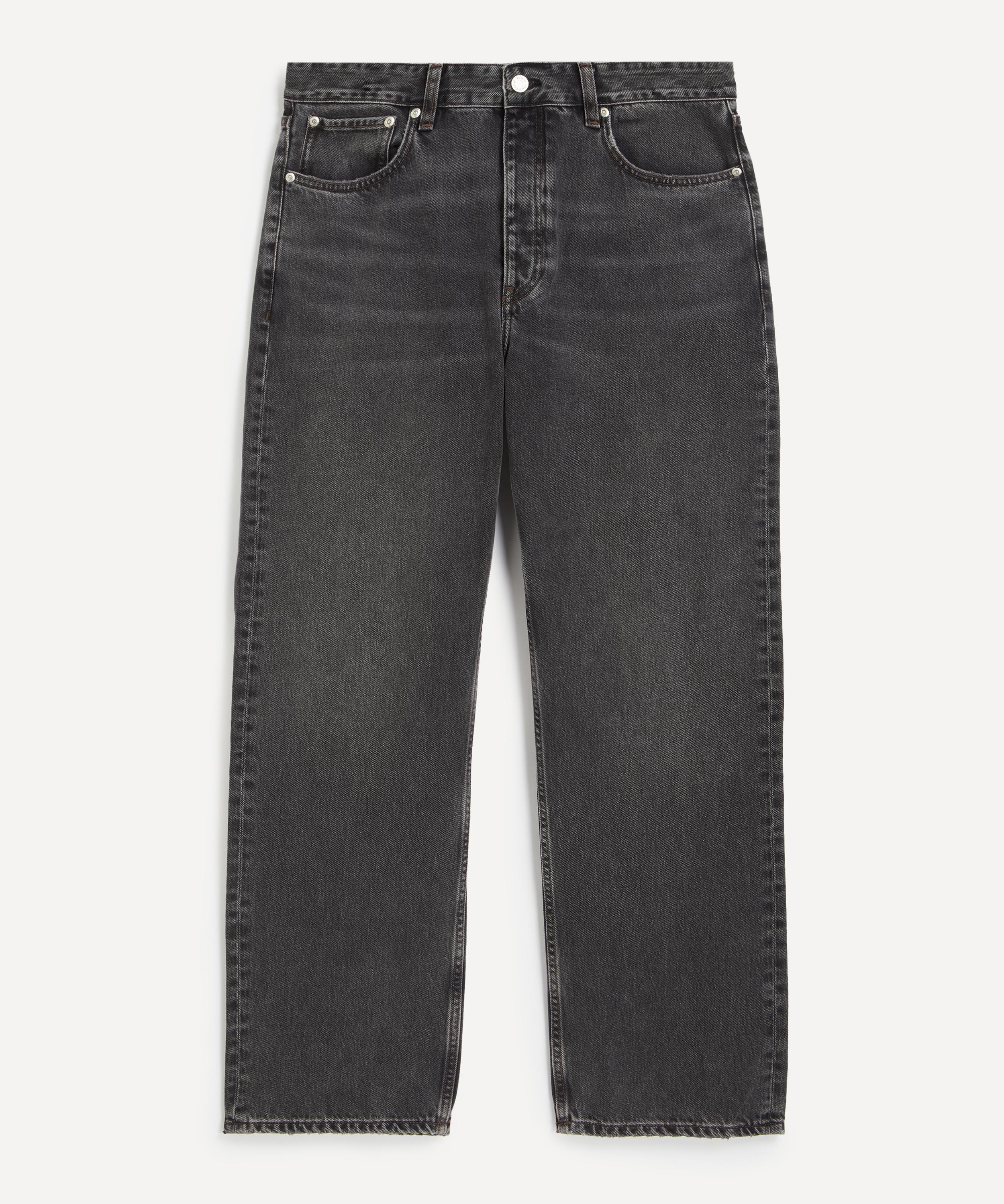 Crafted from rigid cotton denim in a vintage, washed-out black hue, Steve features a loose fit with a mid-rise waist and straight leg. Branded logo buttons and a leather jacron patch at the back add a signature finish.