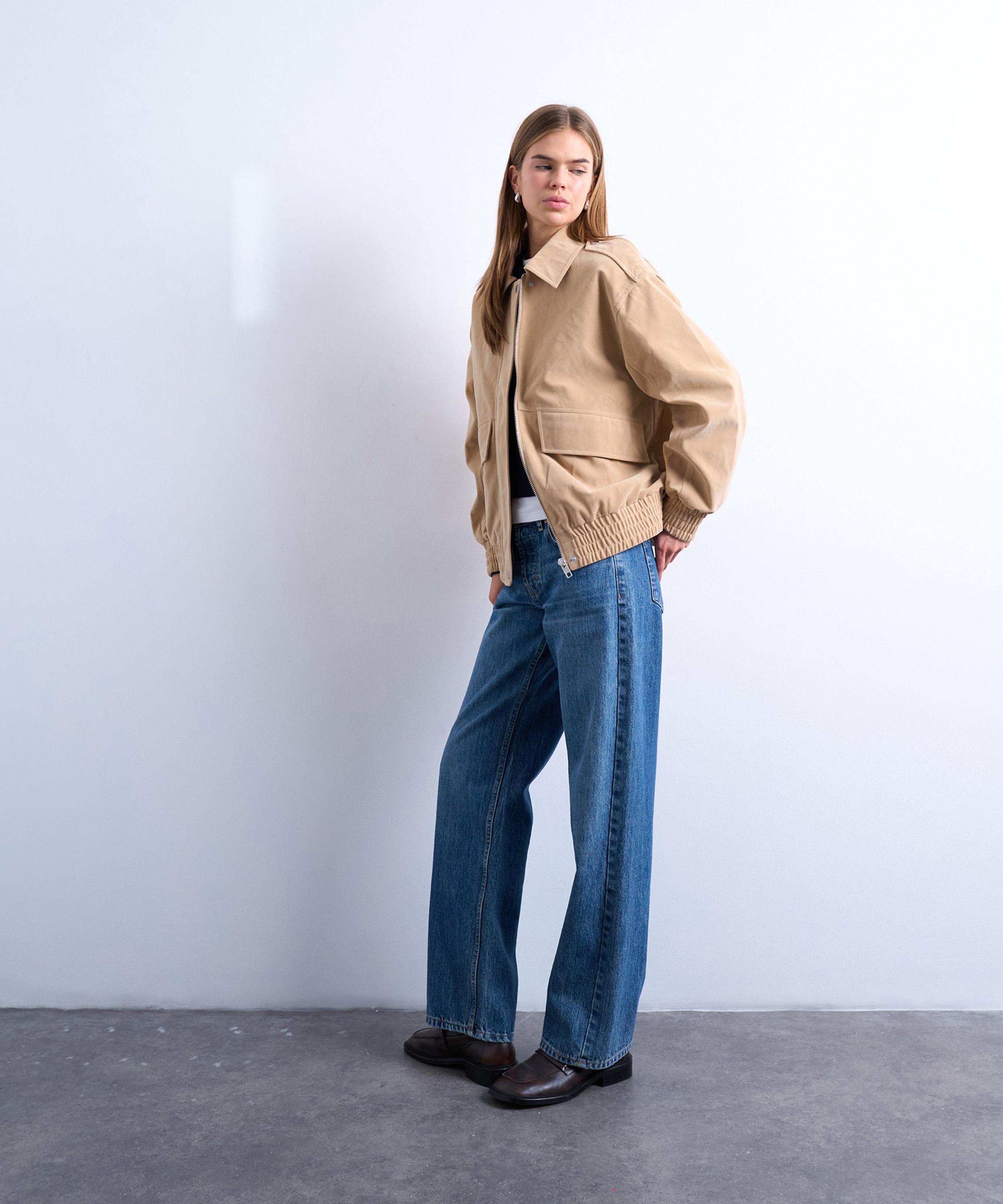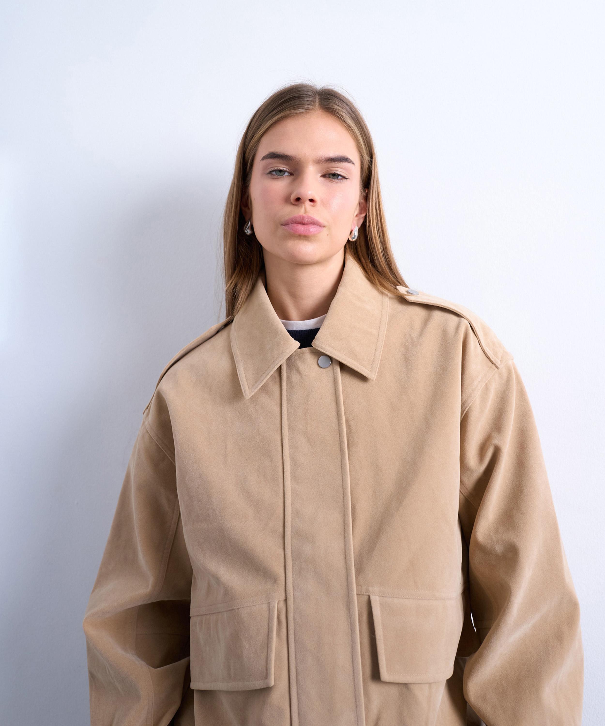 The Stone Faux Suede Oversized Bomber Jacket is part of the exclusive Liberty x TOPSHOP residency, marking TOPSHOP’s highly anticipated relaunch at Liberty.