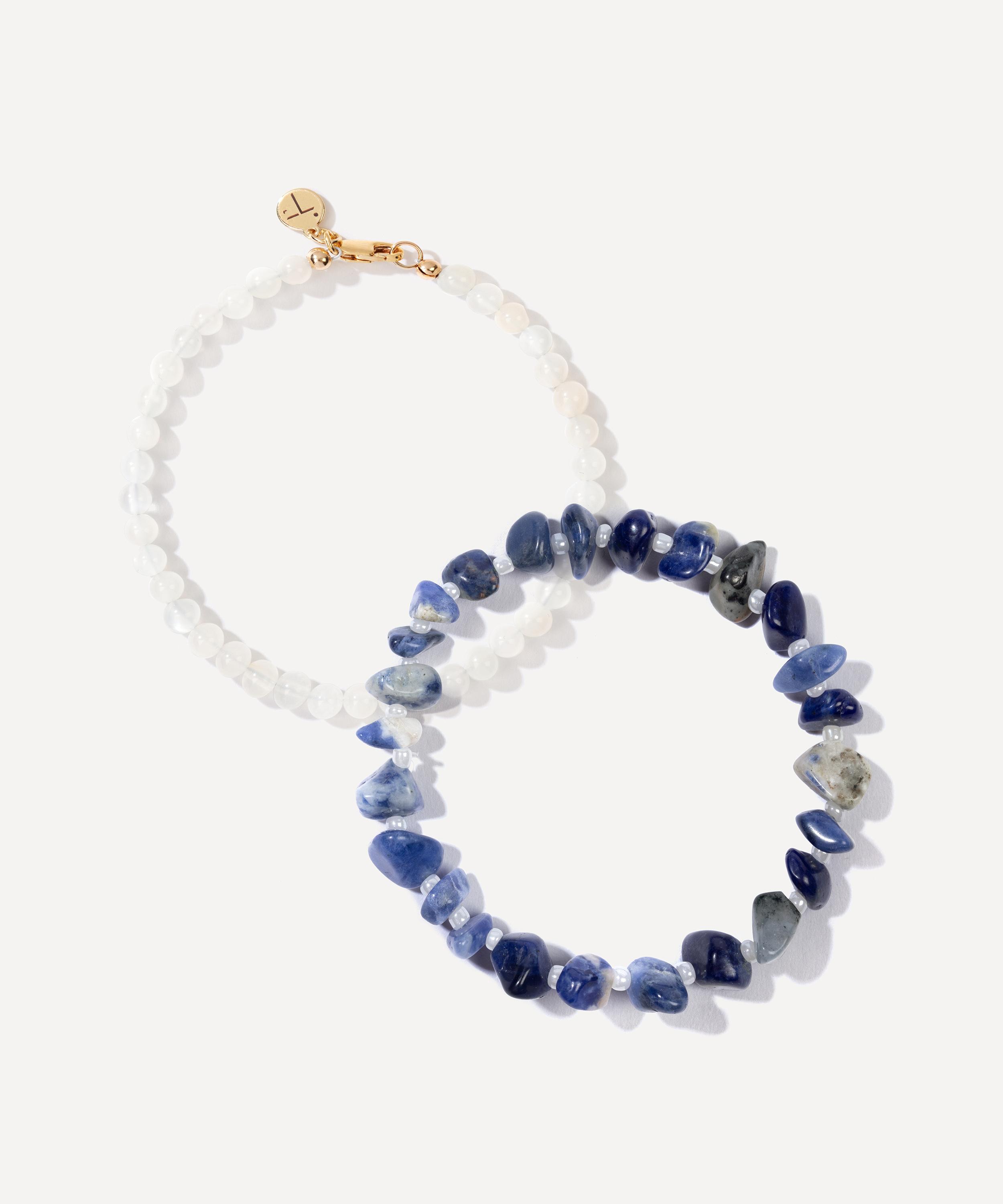 The Storm Healing bracelet stack from TBalance Crystals features three bracelets adorned with sodalite and moonstone crystals, thought to inspire new beginnings whilst channelling peace and balance.