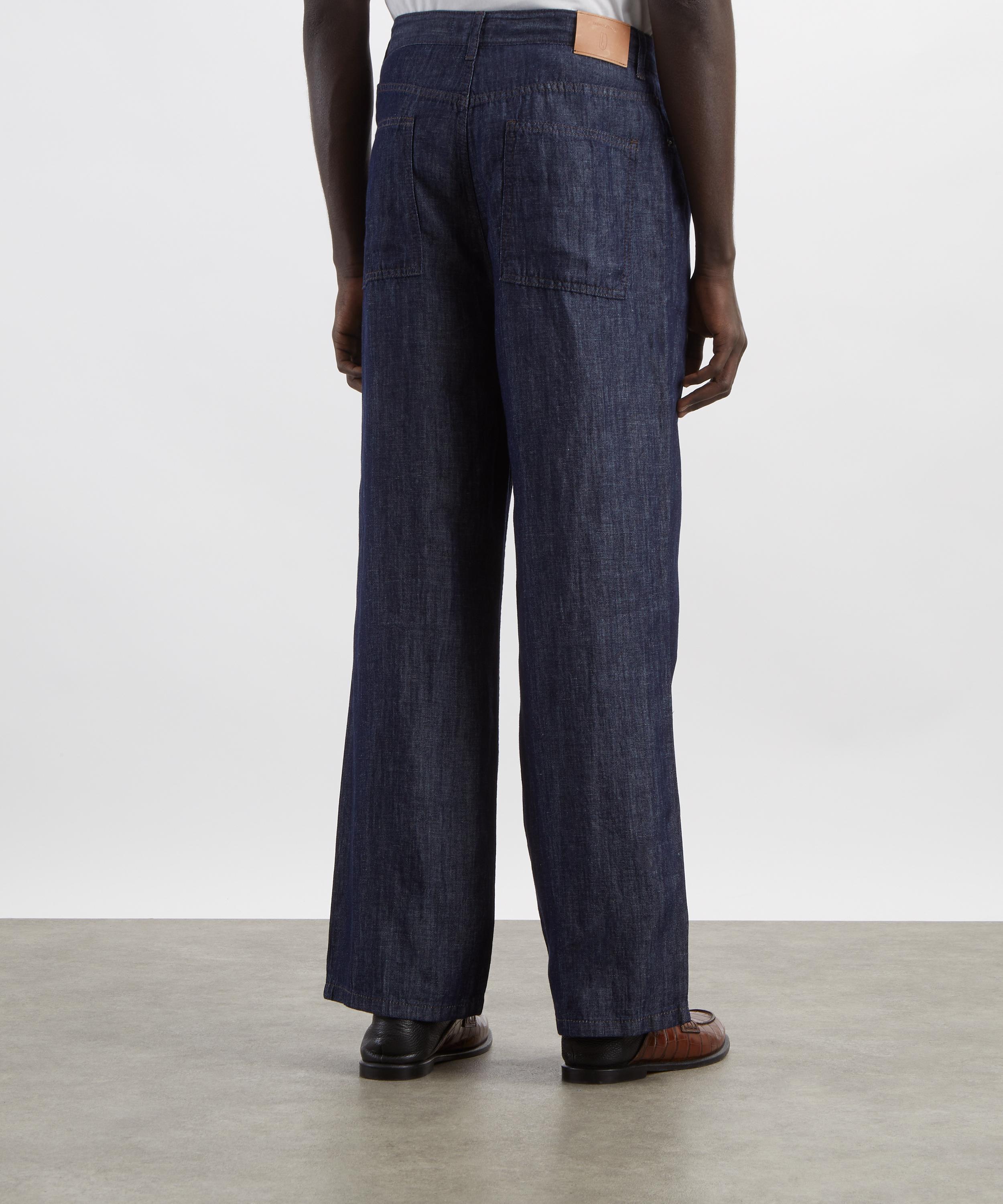 Rendered in deep indigo denim, these jeans are cut to a relaxed, straight-leg silhouette and finished with a classic five-pocket construction for a timeless appeal.