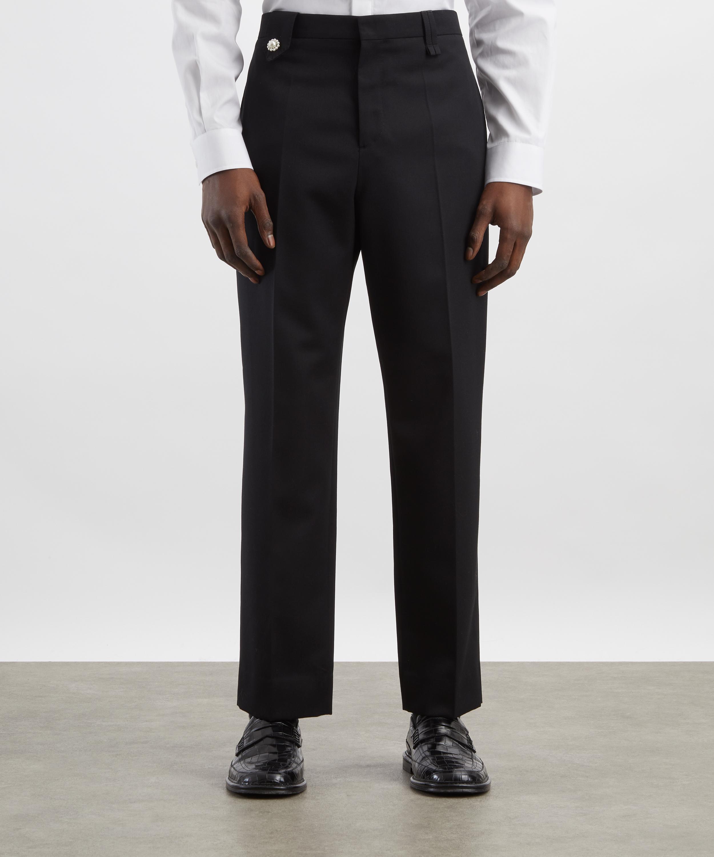 Crafted from Venetian wool, these tailored trousers feature a straight-leg silhouette with a concealed fastening, pressed creases, and pearl-embellished belt loops for a signature finish.