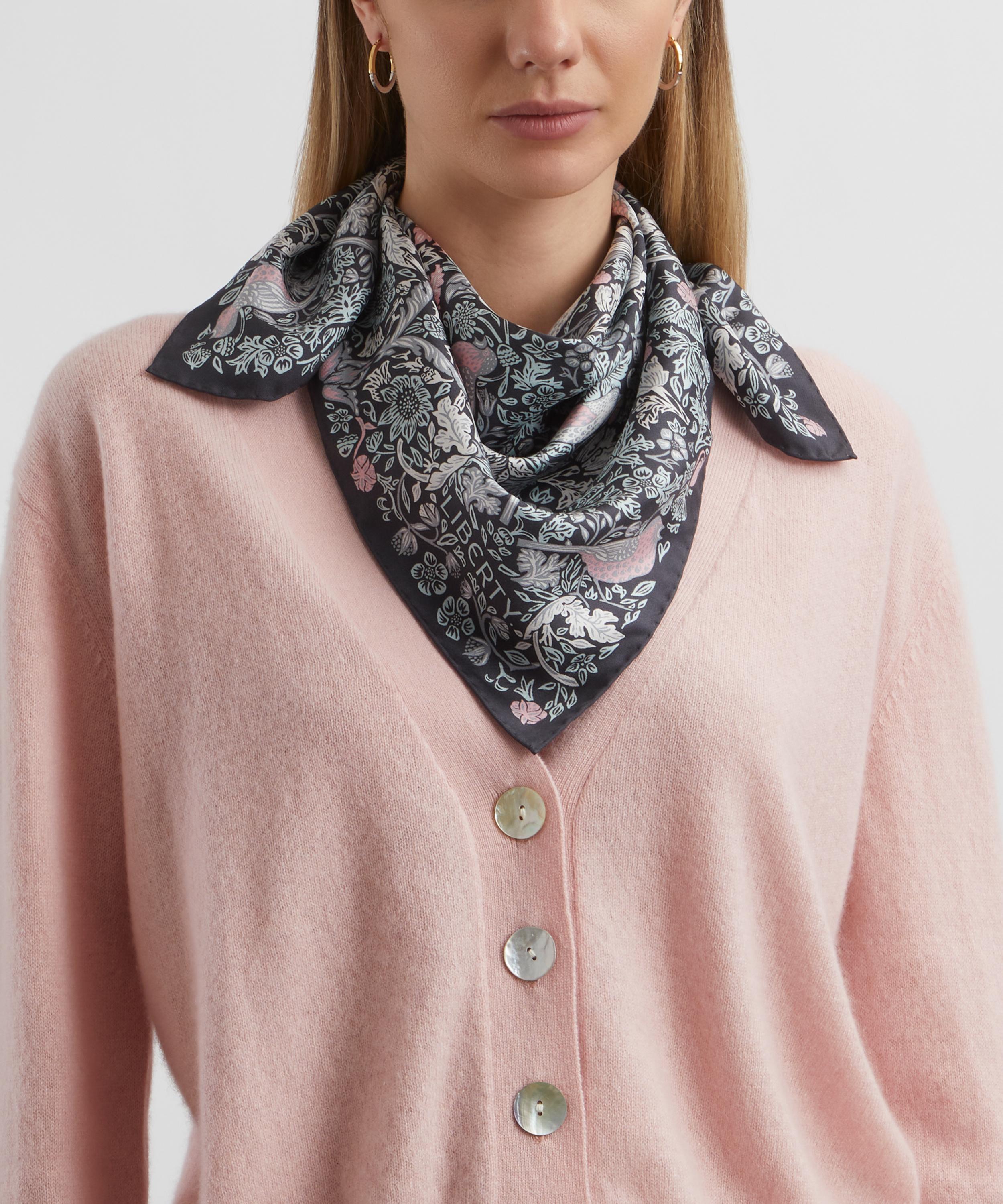 Meticulously crafted in Italy from an innovative and ultra-soft silk fabric with hand rolled hems, it’s characterised by our showstopping Strawberry Meadowfield print – boasting an Arts and Crafts classic, originally designed by William Morris in 1884. Designed to stand the test of time, this versatile, year-round staple offer seamless adaptability, try styling it as a traditional neck scarf to lock in warmth, wear it as a chic hair accessory, or use as a creative embellishment to a bag, the possibilities are endless.