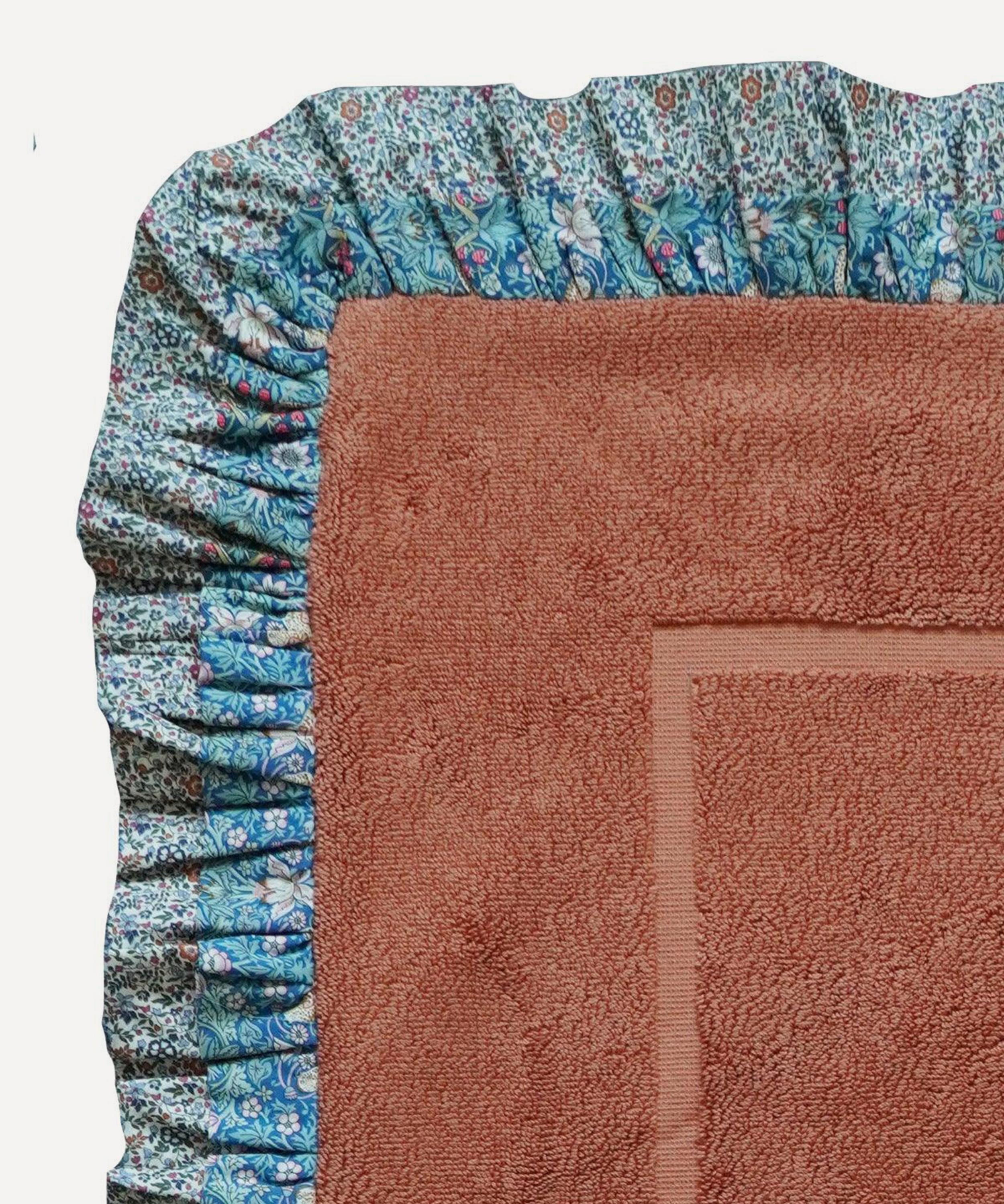Bring a touch of Liberty’s charm to your bathroom by selecting this Strawberry Thief and Katie and Mille ruffle edge bath mat from Somerset-based soft furnishings specialist Coco & Wolf.