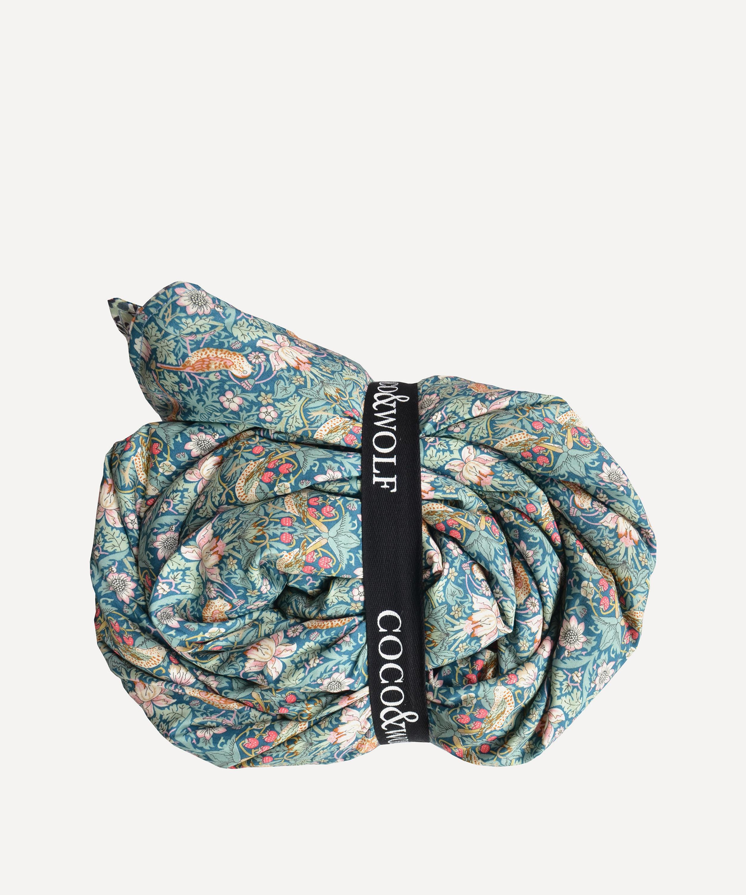 Somerset-born bedding brand Coco & Wolf is renowned for its Liberty print bedspreads, duvets and cushions, crafted from our inimitable Tana Lawn™ cotton. This double heirloom quilt is dressed in Liberty Fabrics’ iconic Strawberry Thief and Wiltshire prints for a bold floral infusion. Use the quilt to infuse a touch of print into an otherwise, subdued sleeping space. We suggest embracing the maximalist trend by coupling with print-loaded cushions, linen throws and rattan décor.