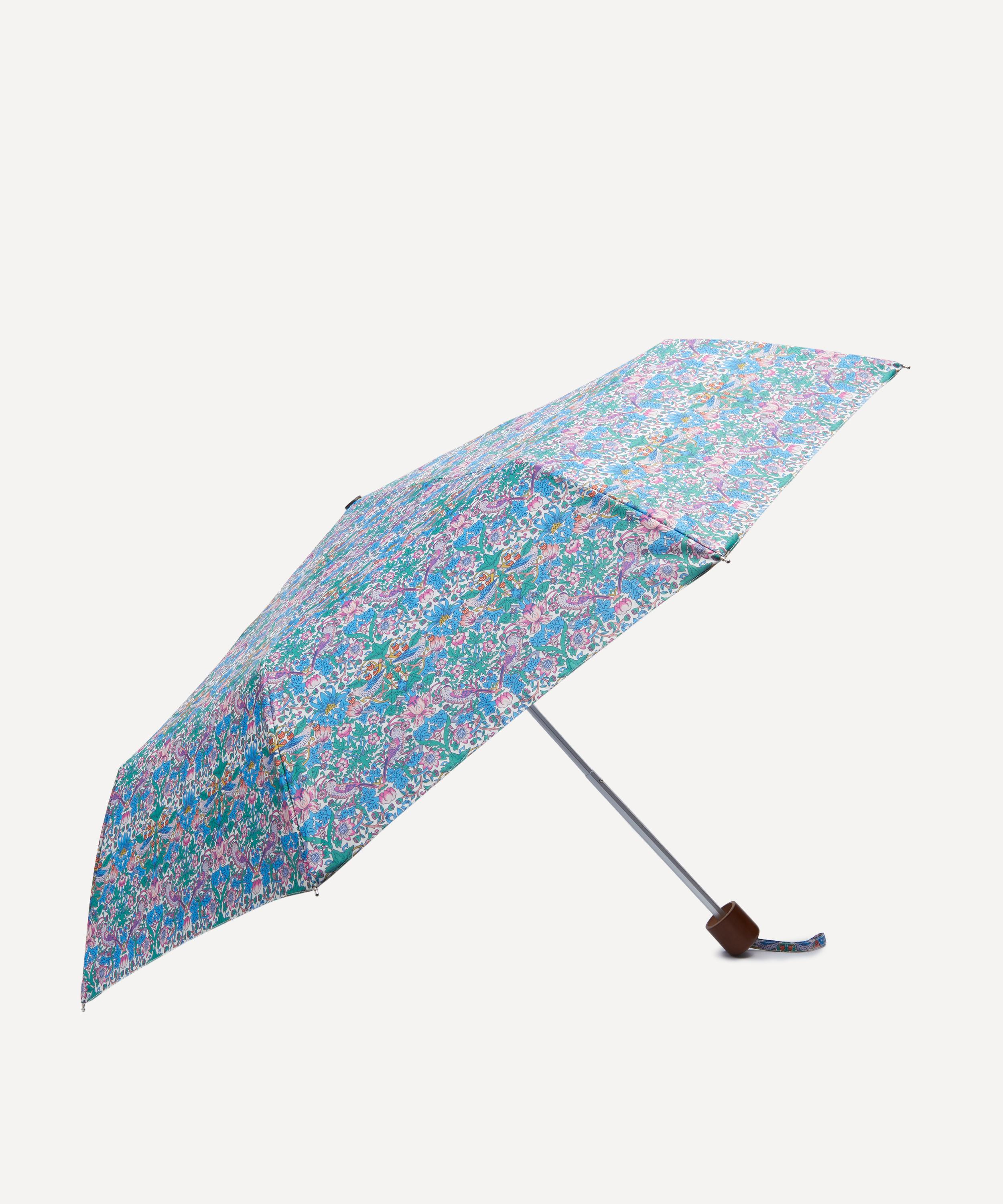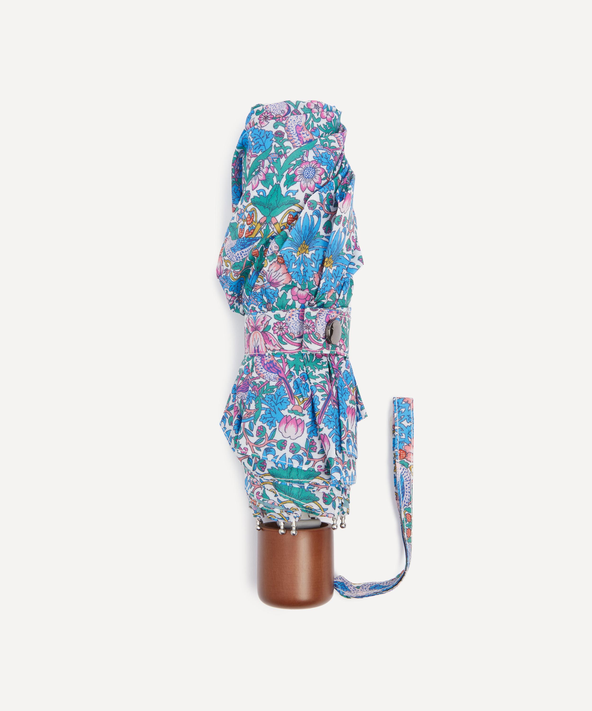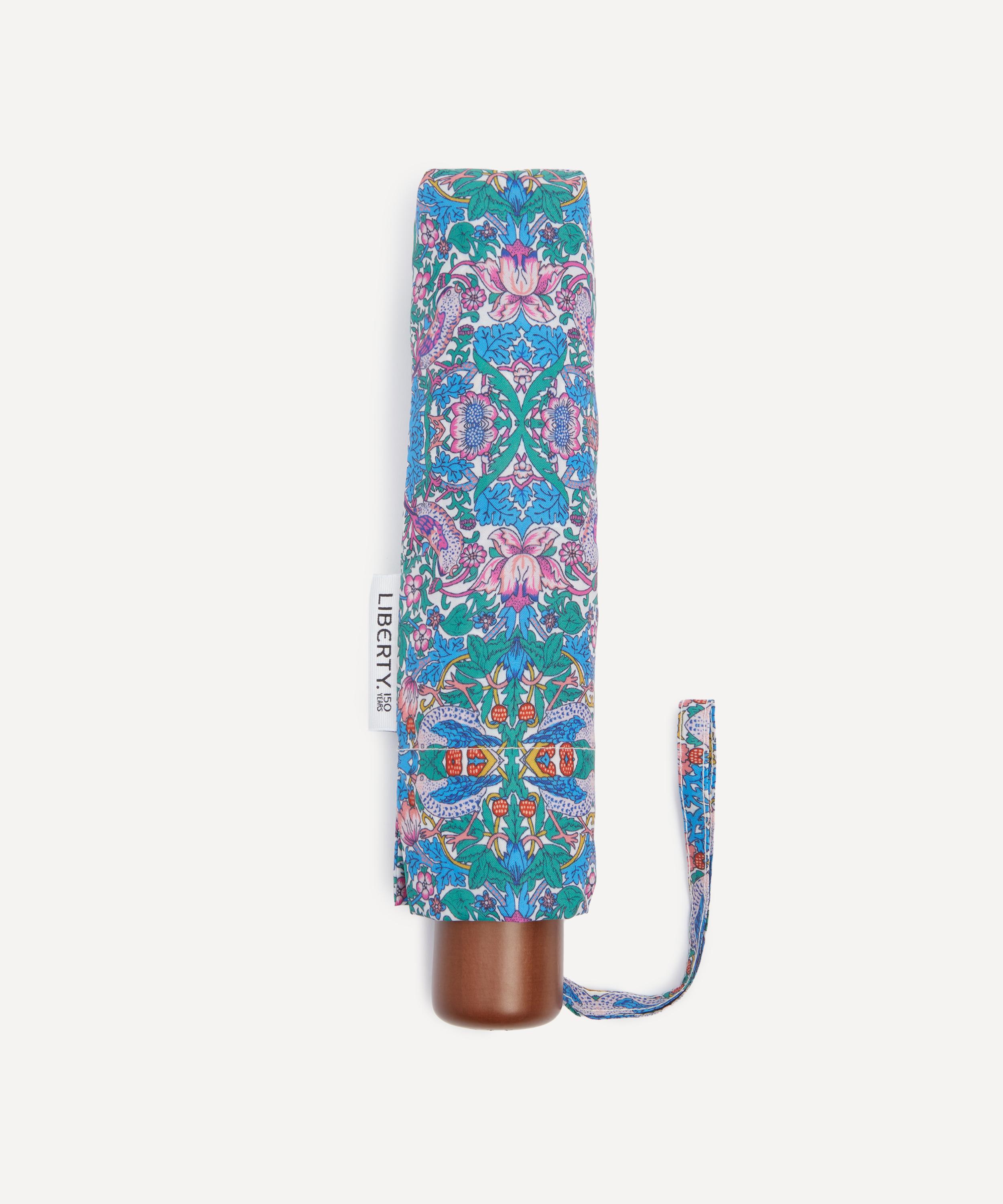 Brighten up gloomy days and stay dry in the rain with Liberty’s printed umbrella. Both stylish and practical, it’s dressed in our Strawberry Thief print – a classic Arts and Crafts design was originally created by William Morris in 1883. Our compact umbrella is lightweight and foldable, small enough to stow away in your handbag and carry wherever you go.