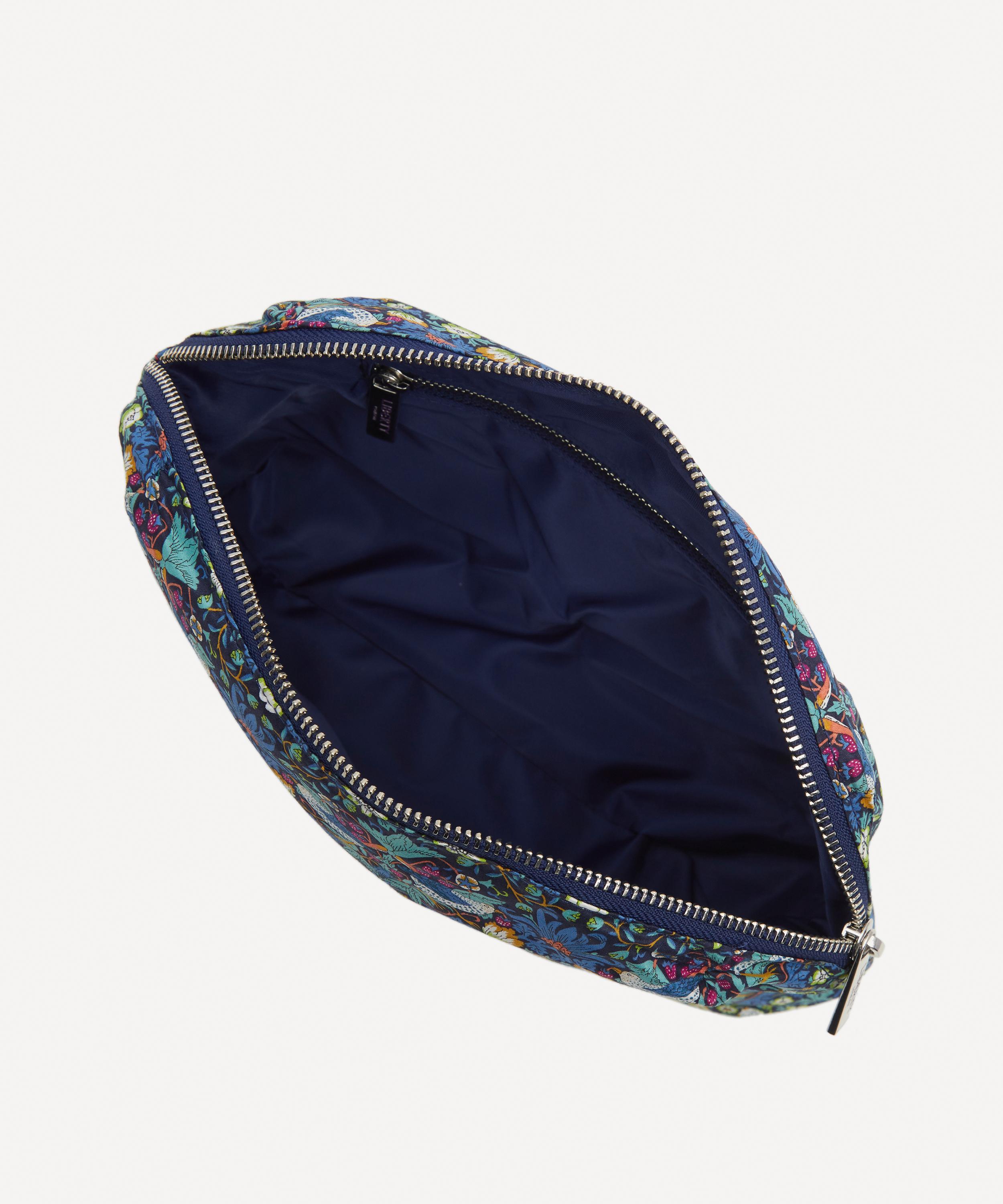 Elevate your beauty regimen and keep cosmetics in check with our Liberty large wash bag in Strawberry Thief print.