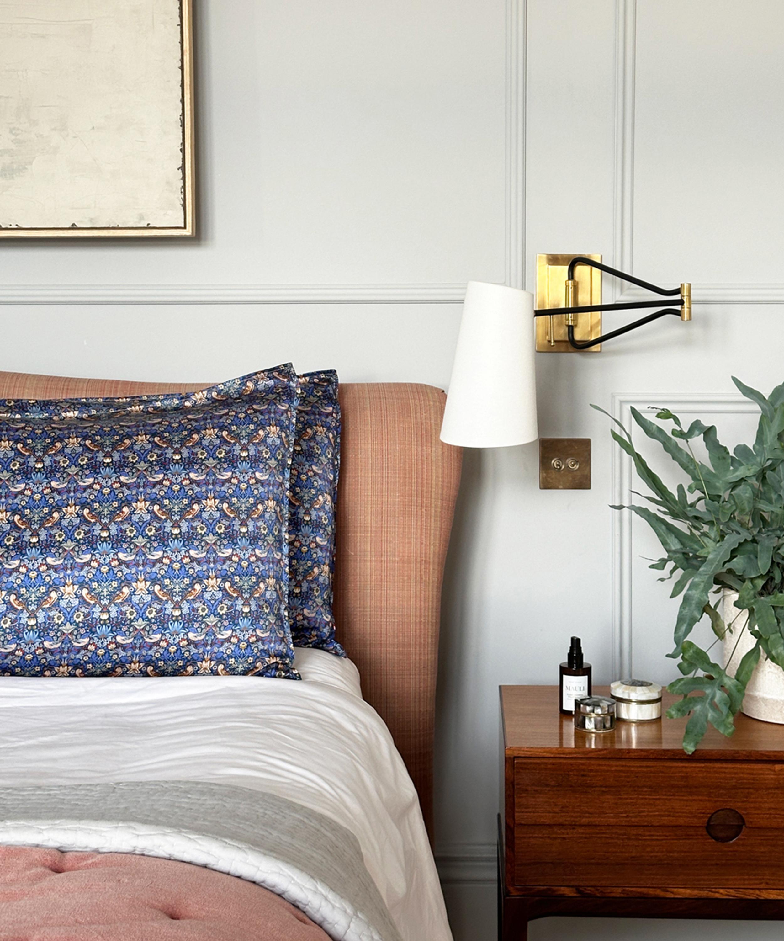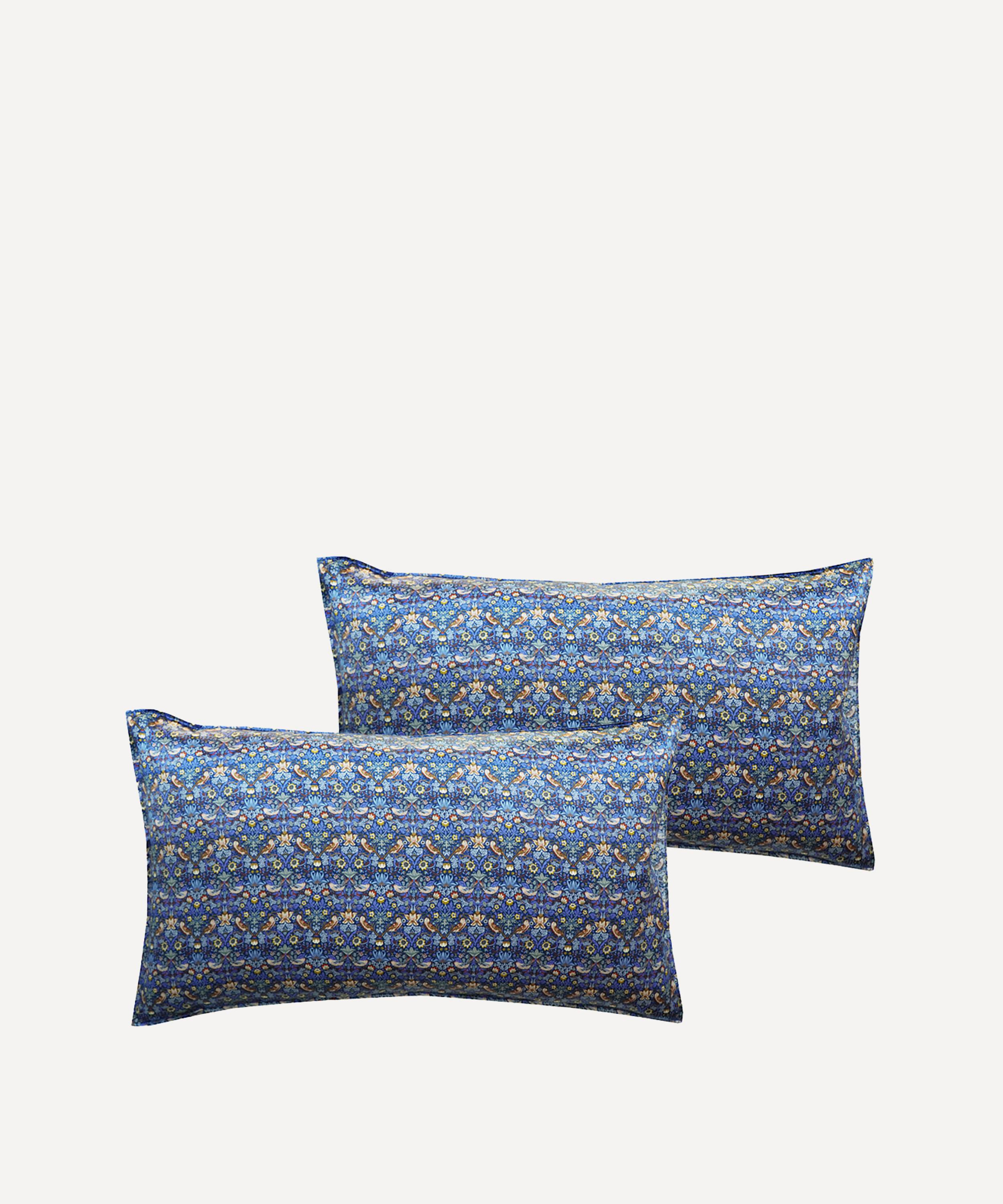 Somerset-born bedding brand Coco & Wolf is renowned for its Liberty print textiles. Meticulously crafted from supreme silk, these pillowcases are charmingly dressed in Liberty Fabrics’ Strawberry Thief print - originally designed by William Morris in 1883, this Arts and Crafts design has been a perennial Liberty favourite since first appearing as a furnishing fabric in 1979. We suggest embracing the maximalist trend by coupling the set with print-loaded cushions, linen throws and rattan décor.About Coco & Wolf