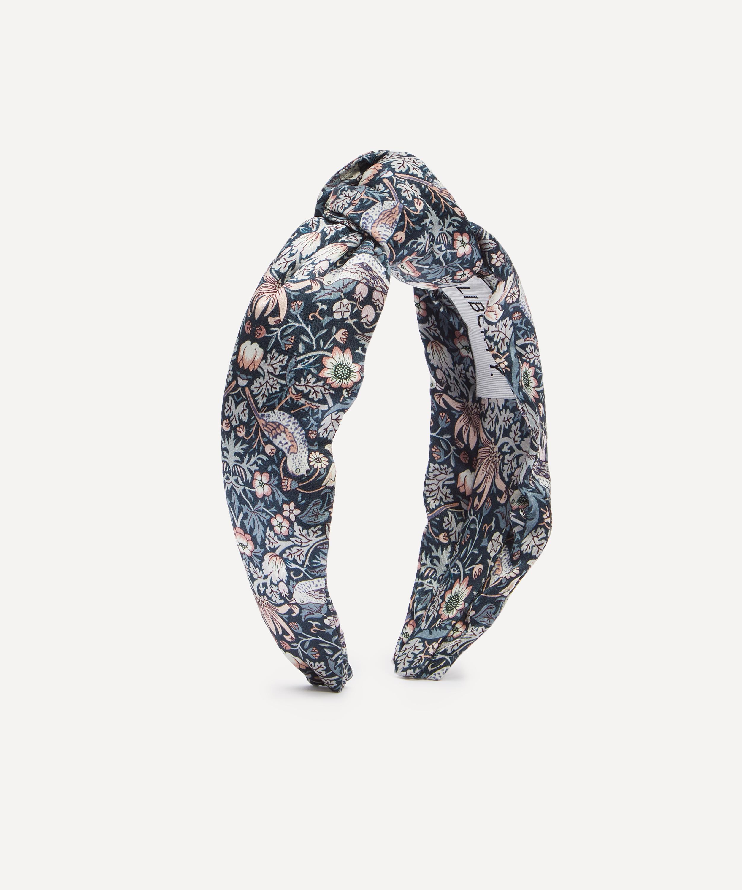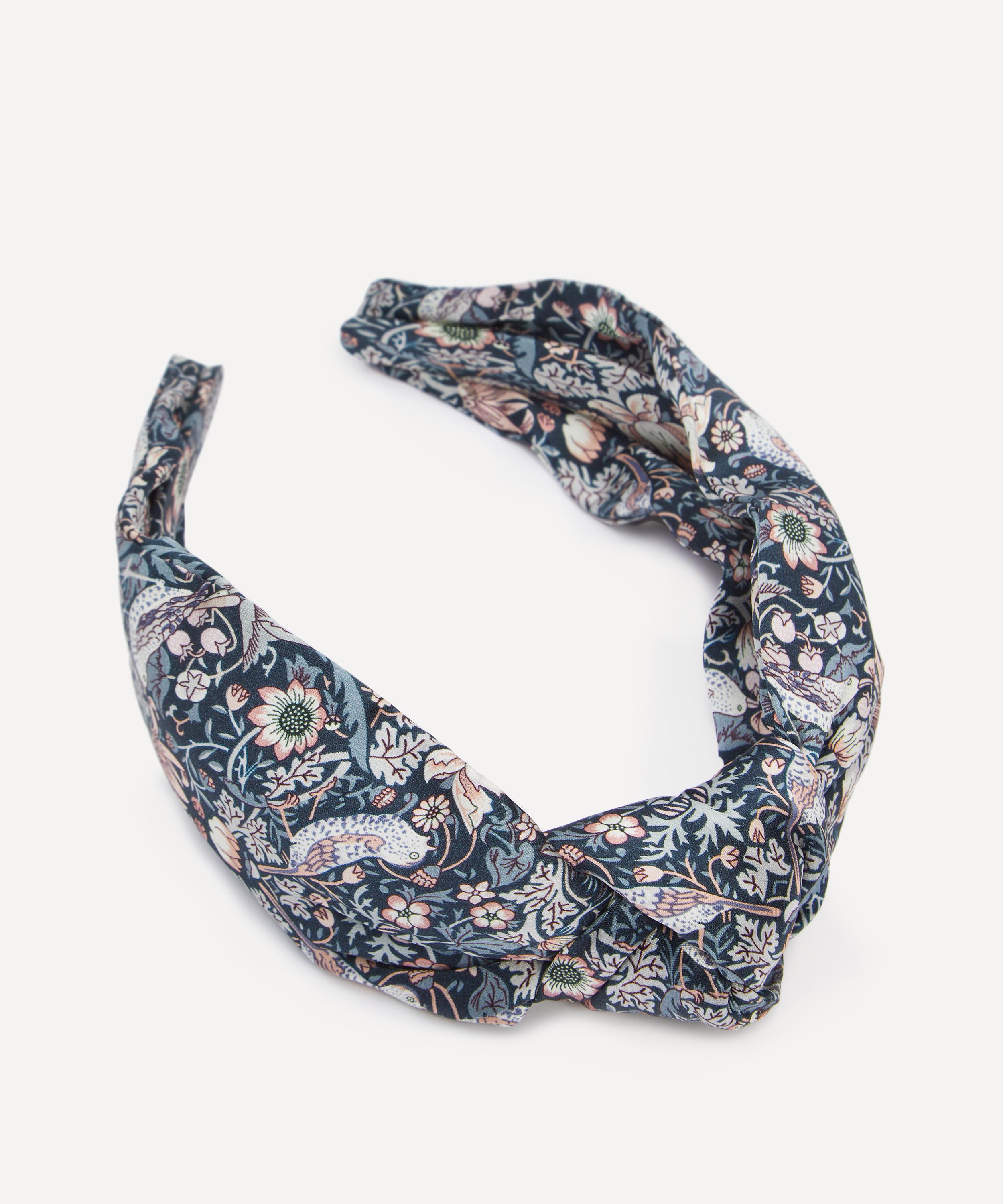 Add a pop of colour to your accessories collection. Cut from Liberty’s inimitable silk fabric in Strawberry Thief - this printed headband features a retro chic aesthetic that draws the eye with its floral design. A less damaging hair alternative, pair this piece with pulled back hair, loose waves, or a chic top knot to elevate your everyday look.