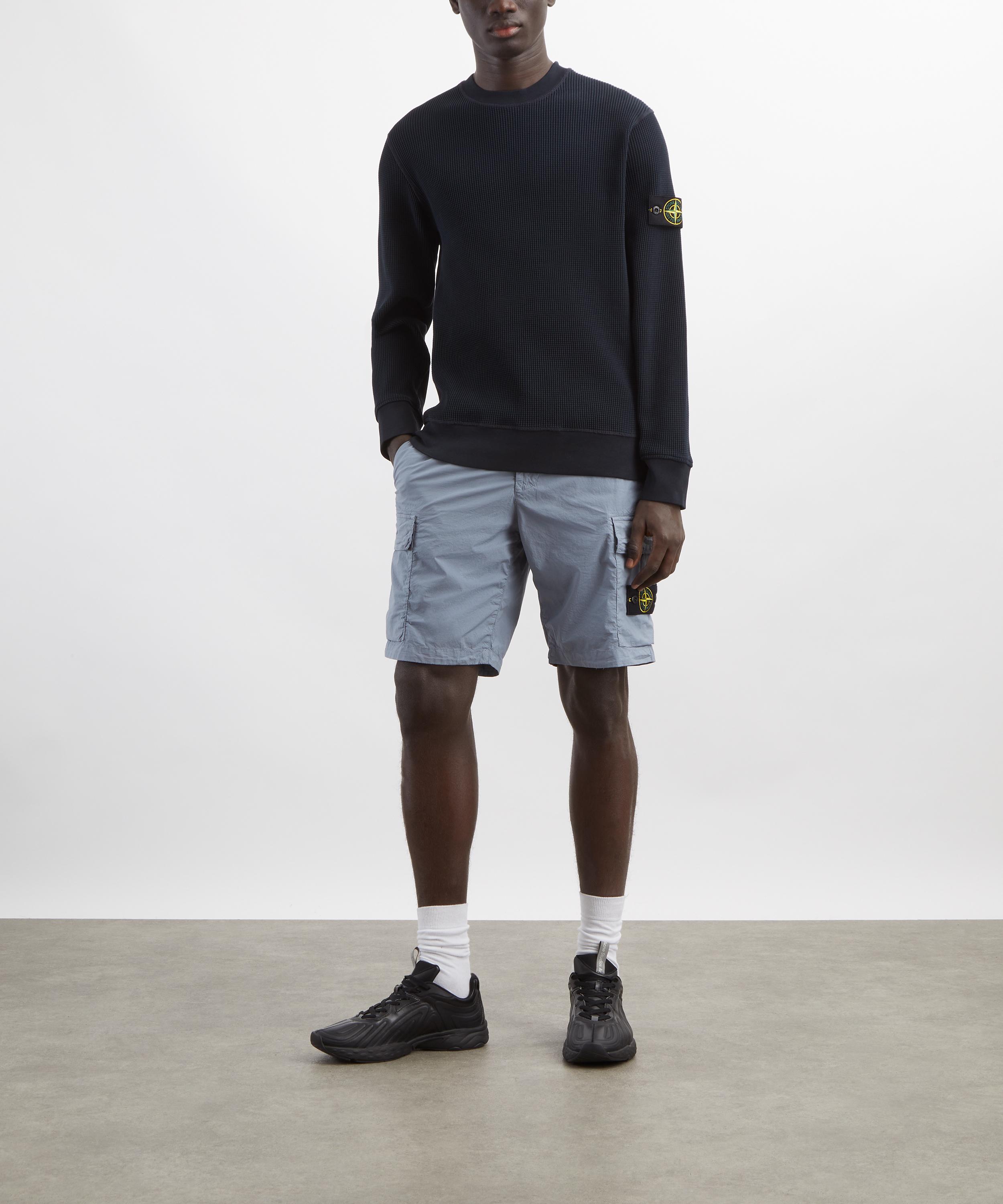 Crafted from lightweight stretch cotton tela and garment-washed to a pale cornflower blue, these cargo-style Bermuda shorts are cut to a regular fit and feature a concealed zip fastening and cargo flap pockets. The iconic Stone Island Compass logo patch at the side delivers a distinctive signature finish.