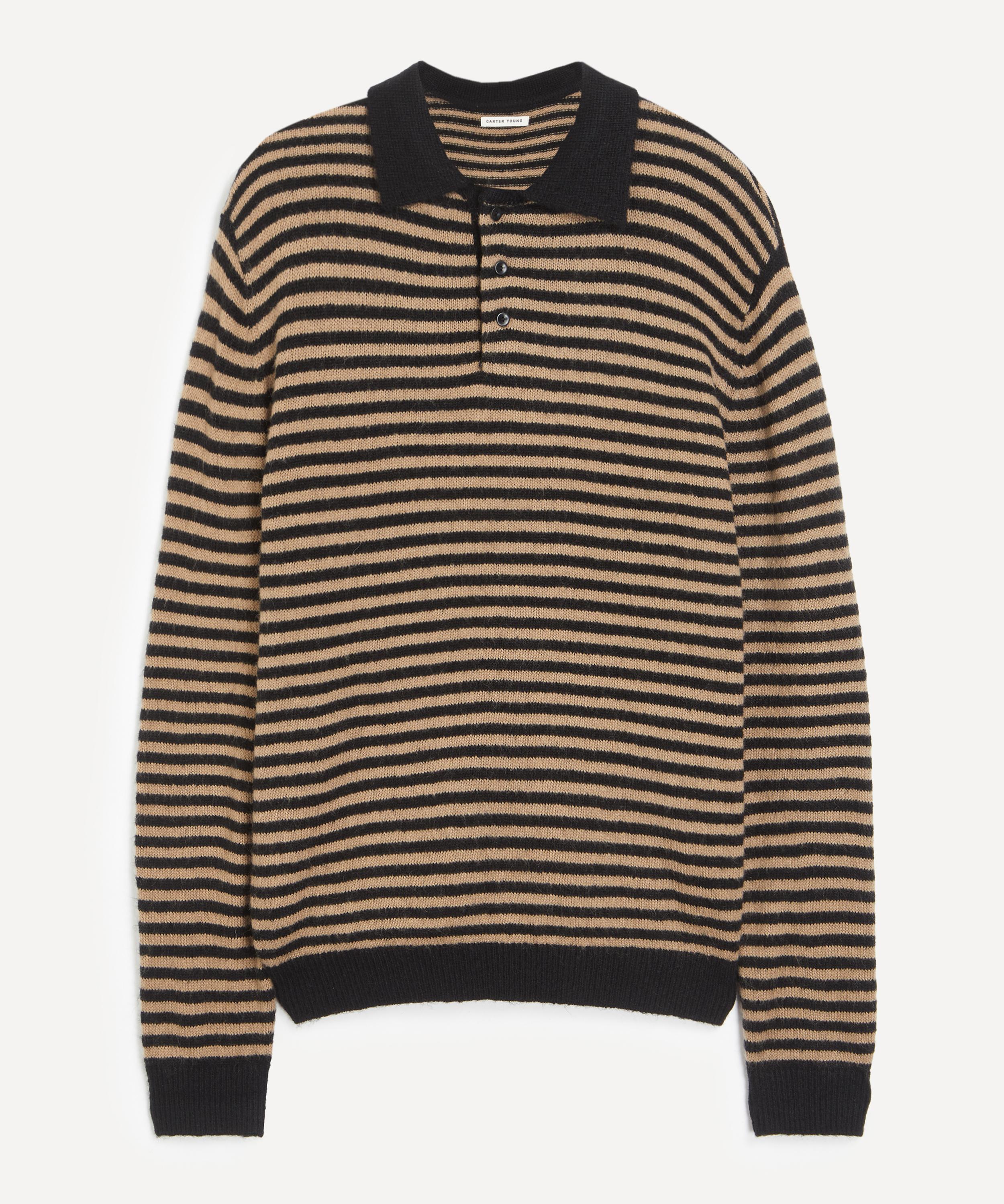 The Stripe Leigh Polo Jumper from Carter Young is a true embodiment of Americana, drawing on the timeless essence of American craftsmanship and culture.