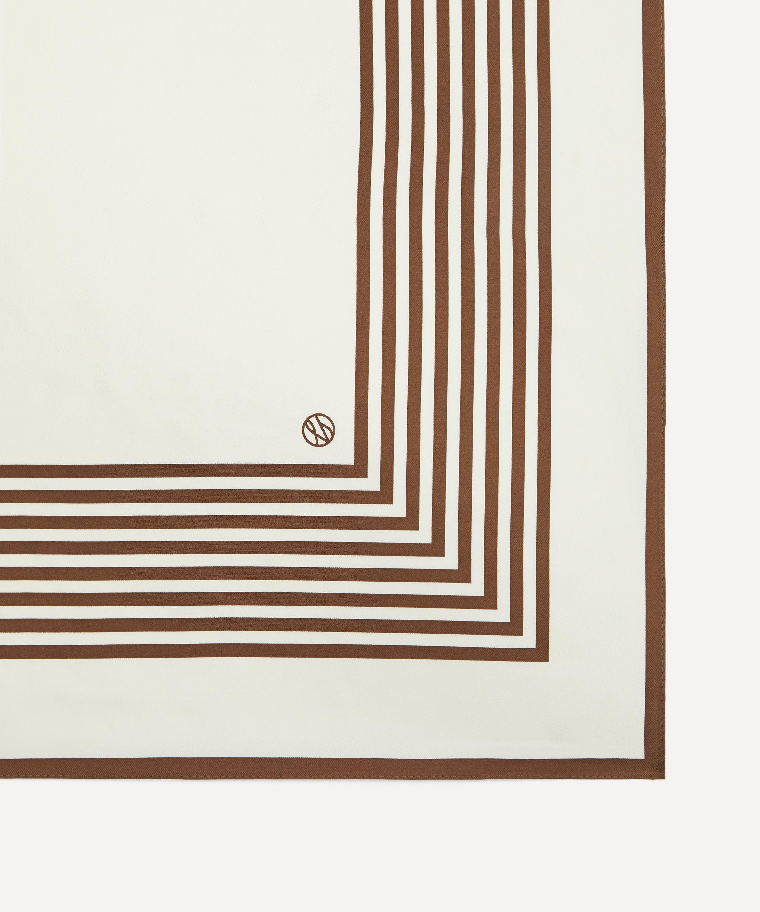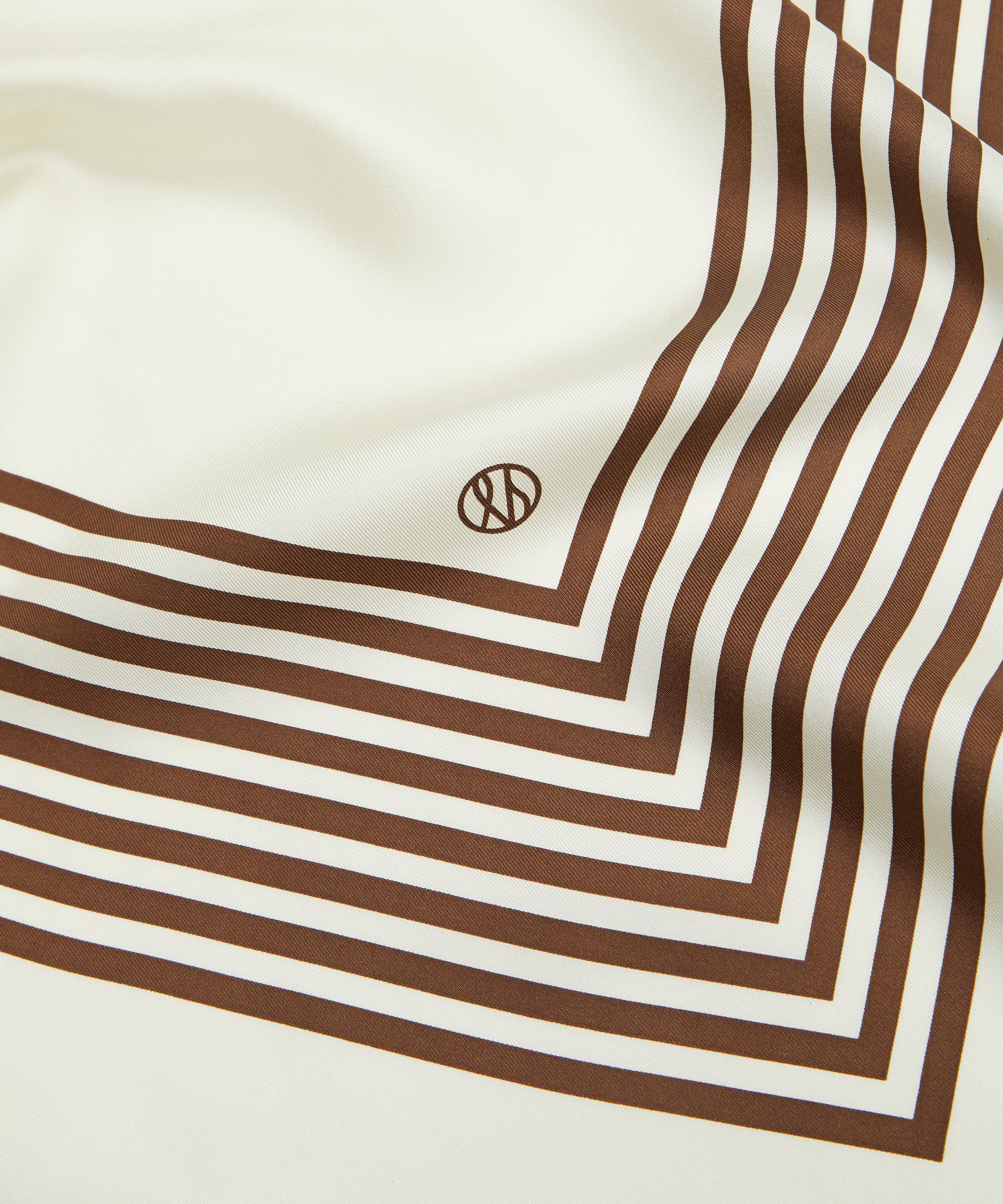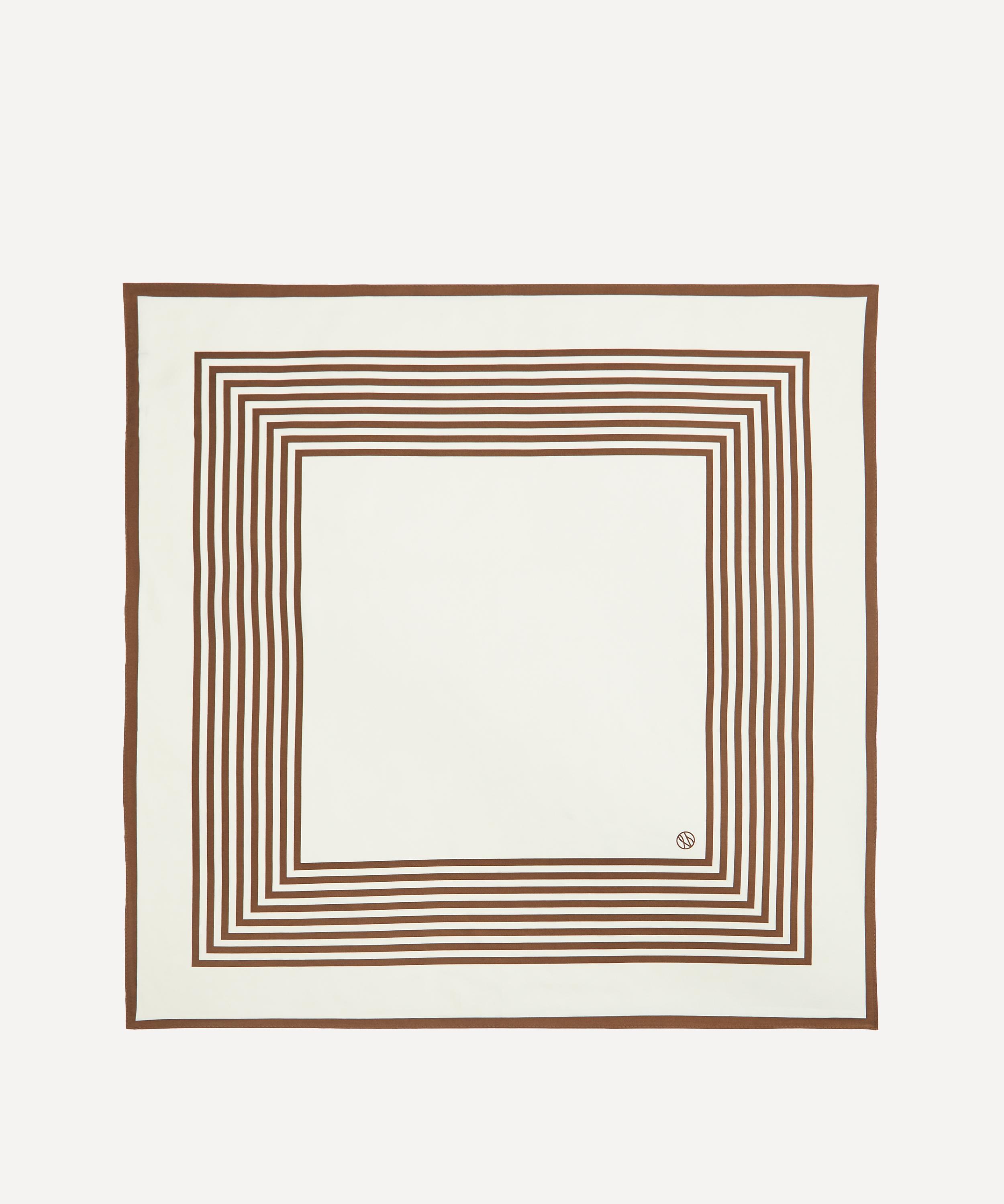 Crafted from lustrous silk in a soft cream hue, it features a bold stripe design, finished with a matching border. Boasting a versatile, square silhouette, it offers endless styling possibilities, as it effortlessly drapes around your neck, ties up your hair or wraps around the handle of your bag.
