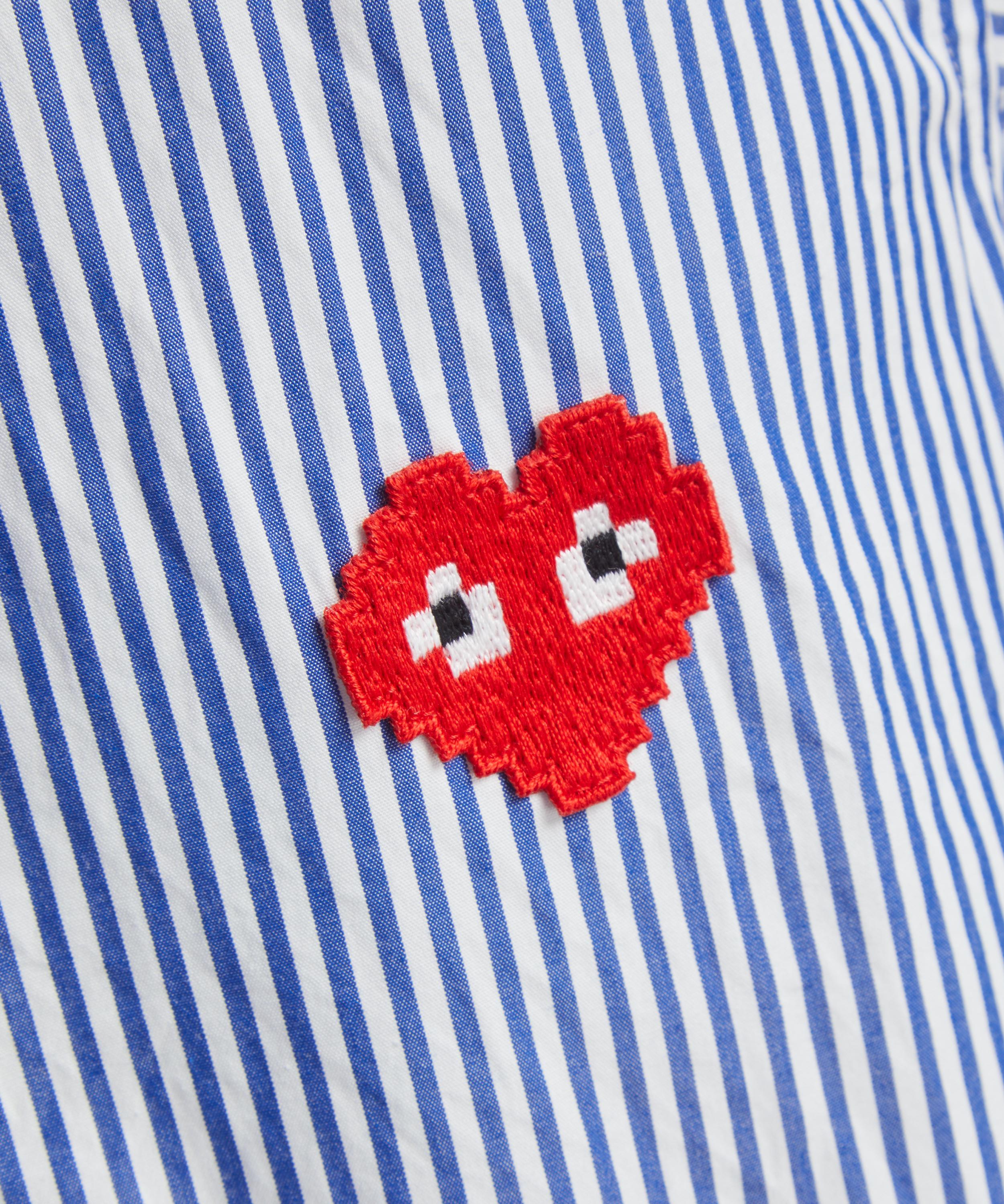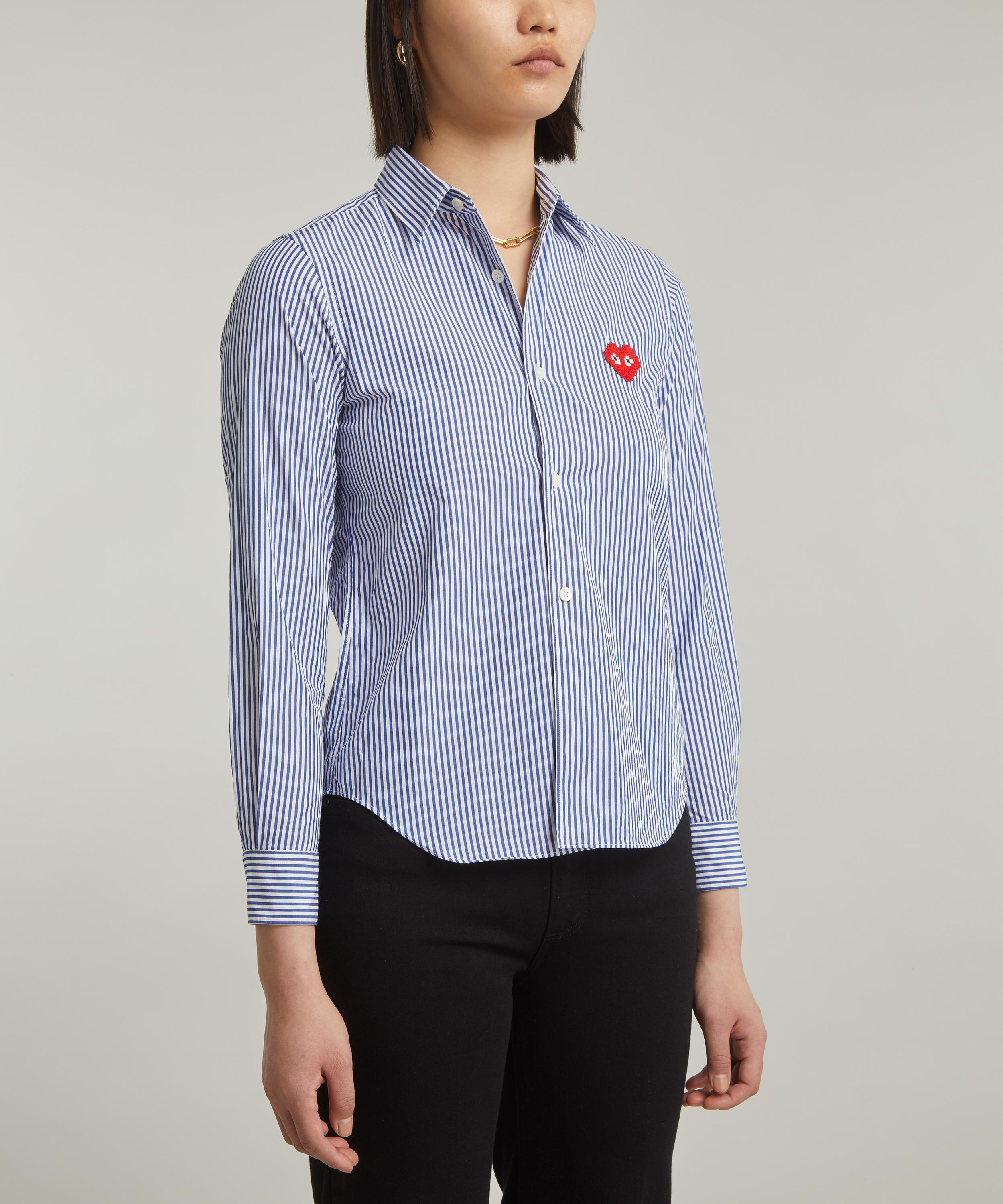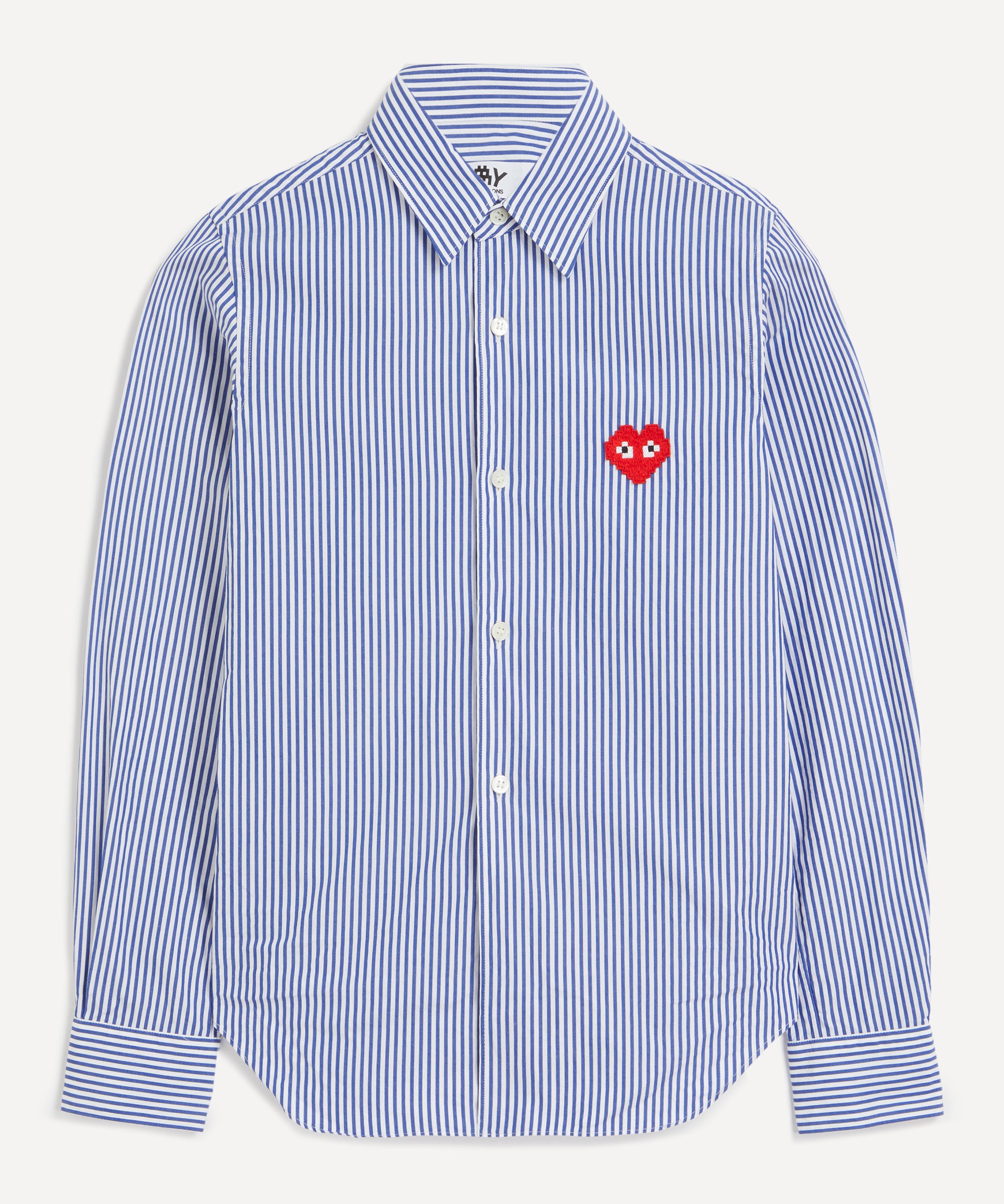 Embroidered with a pixelated edition of the instantly recognisable bug-eyed heart, this striped shirt is part of the Comme des Garçons PLAY x Invader collaboration. Cut from cotton with a classic point collar, buttoned closure and long, cuffed sleeves, it’s finished with the iconic heart logo appliquéd in red on the chest.