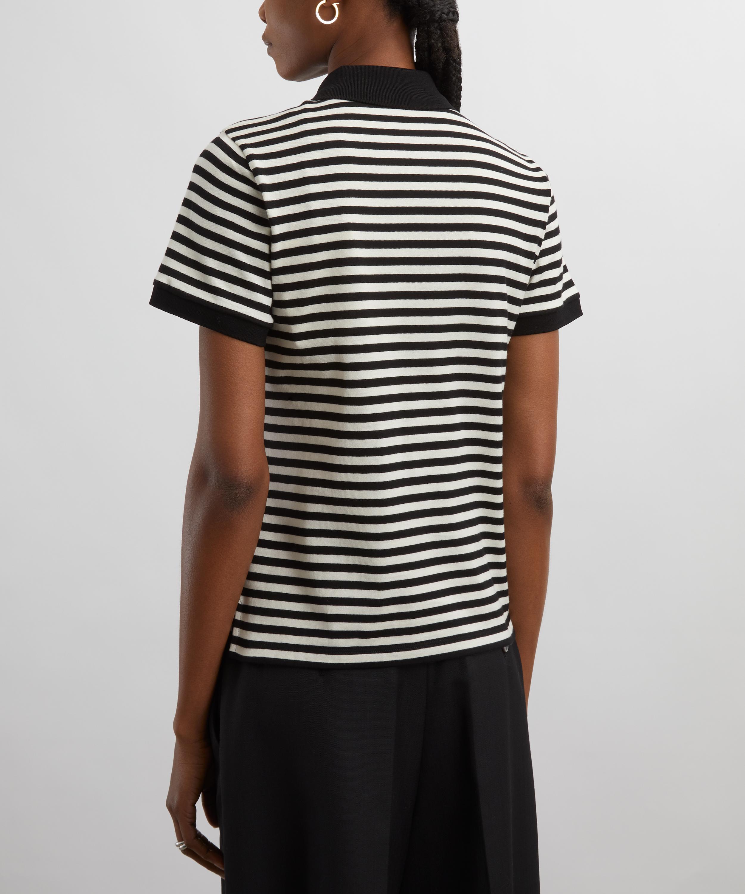 Crafted from cotton jersey, this polo shirt is adorned with seaside-inspired stripes. Featuring short sleeves and a buttoned partial placket, it adds a laid-back, seasonal touch to everyday looks.