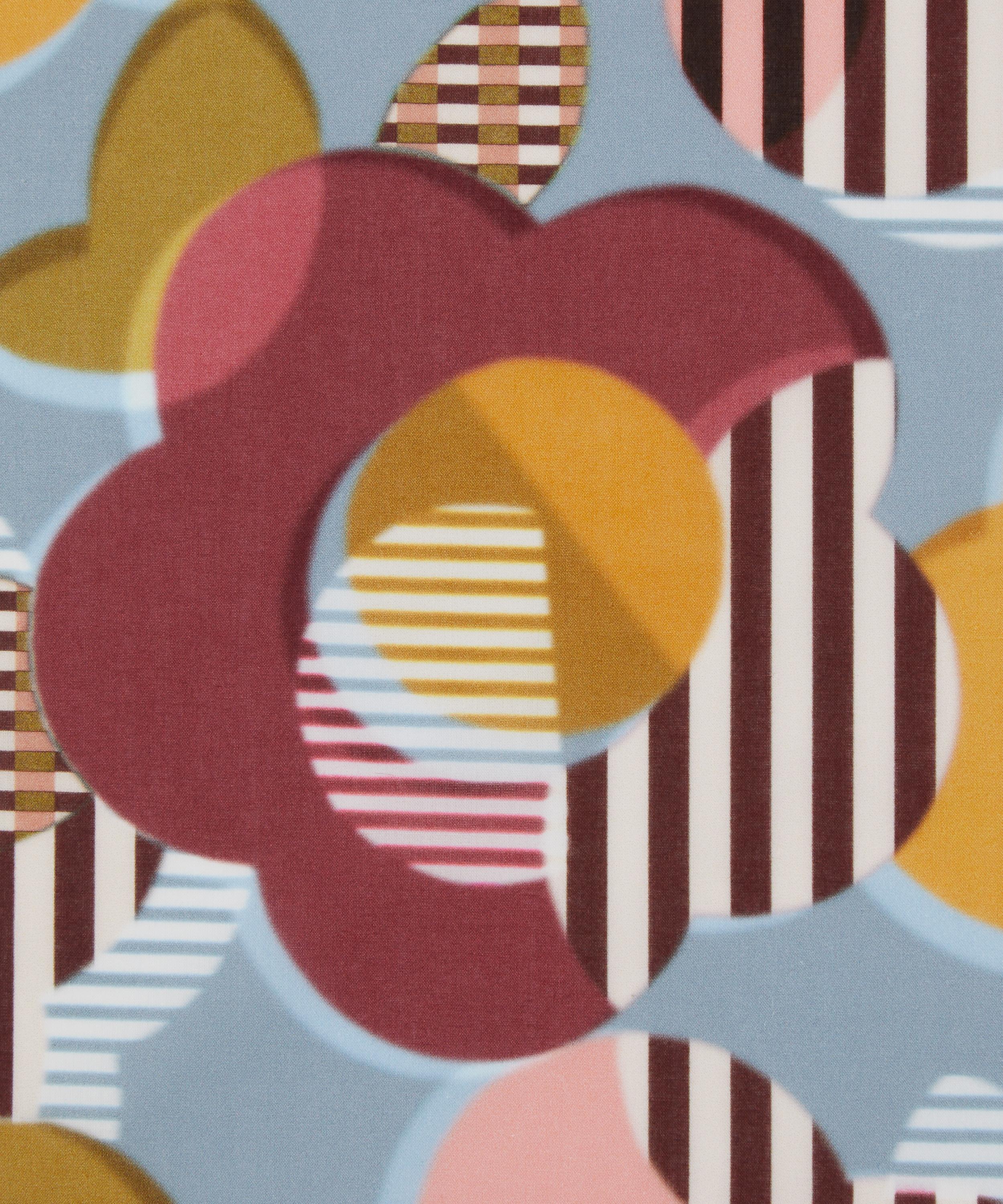 In 1983, Liberty showcased its avant-garde spirit by hosting an exhibition of the radical design group, Memphis Milano. Inspired by the group's hallmarks of playful, sculptural forms and optical, clashing patterns, Memphis Style stands out as a visually arresting design brimming with dazzling vitality. Spherical daisies cast soft overlapping shadows, while graphic cutouts dance amidst contrasting stripes, captivating the eye with a riot of illusory geometries. This print is part of the anniversary collection’s final chapter, Collectibles. Offering a design for each decade, this timeline of hero prints encapsulates 150 years - exploring the design house’s varied and influential handwriting while honouring key moments of creativity and discovery.