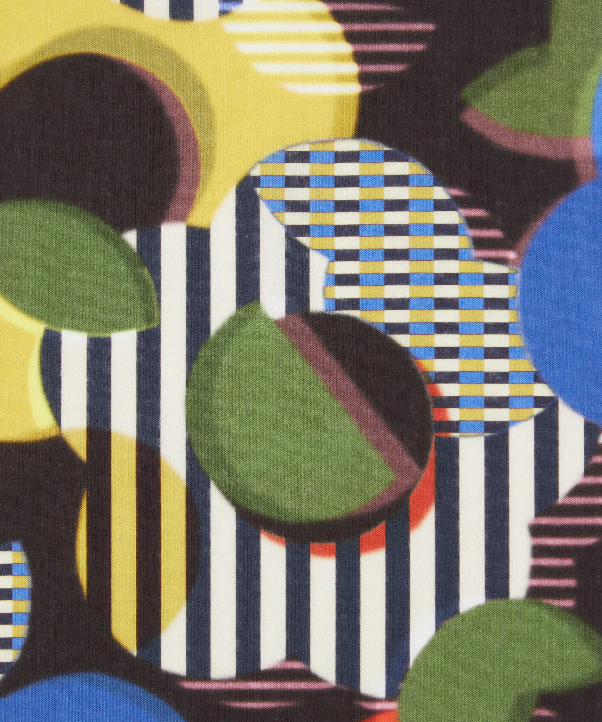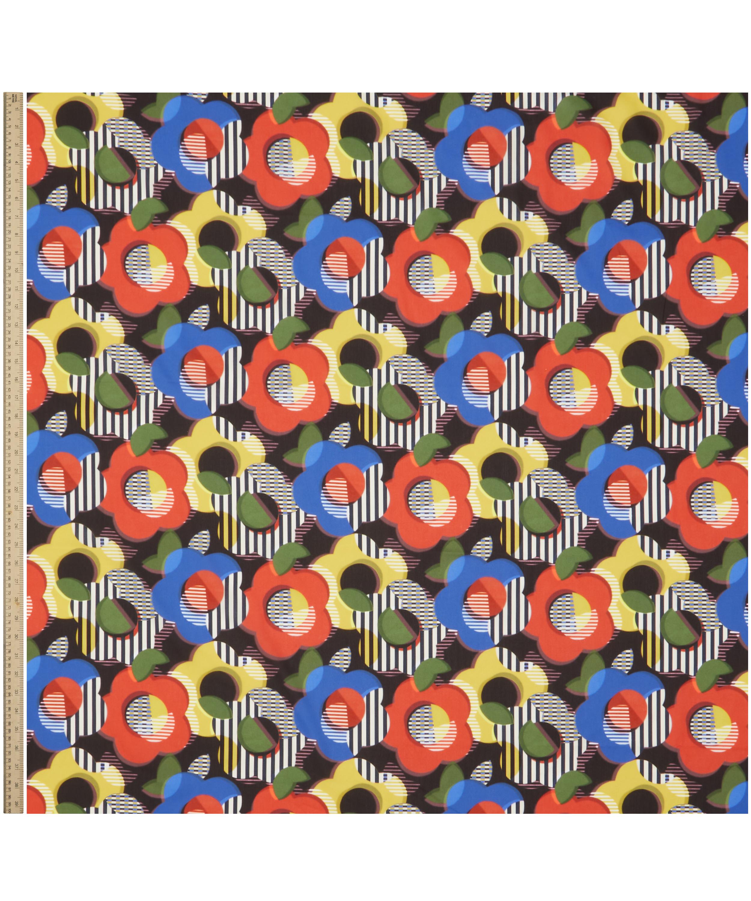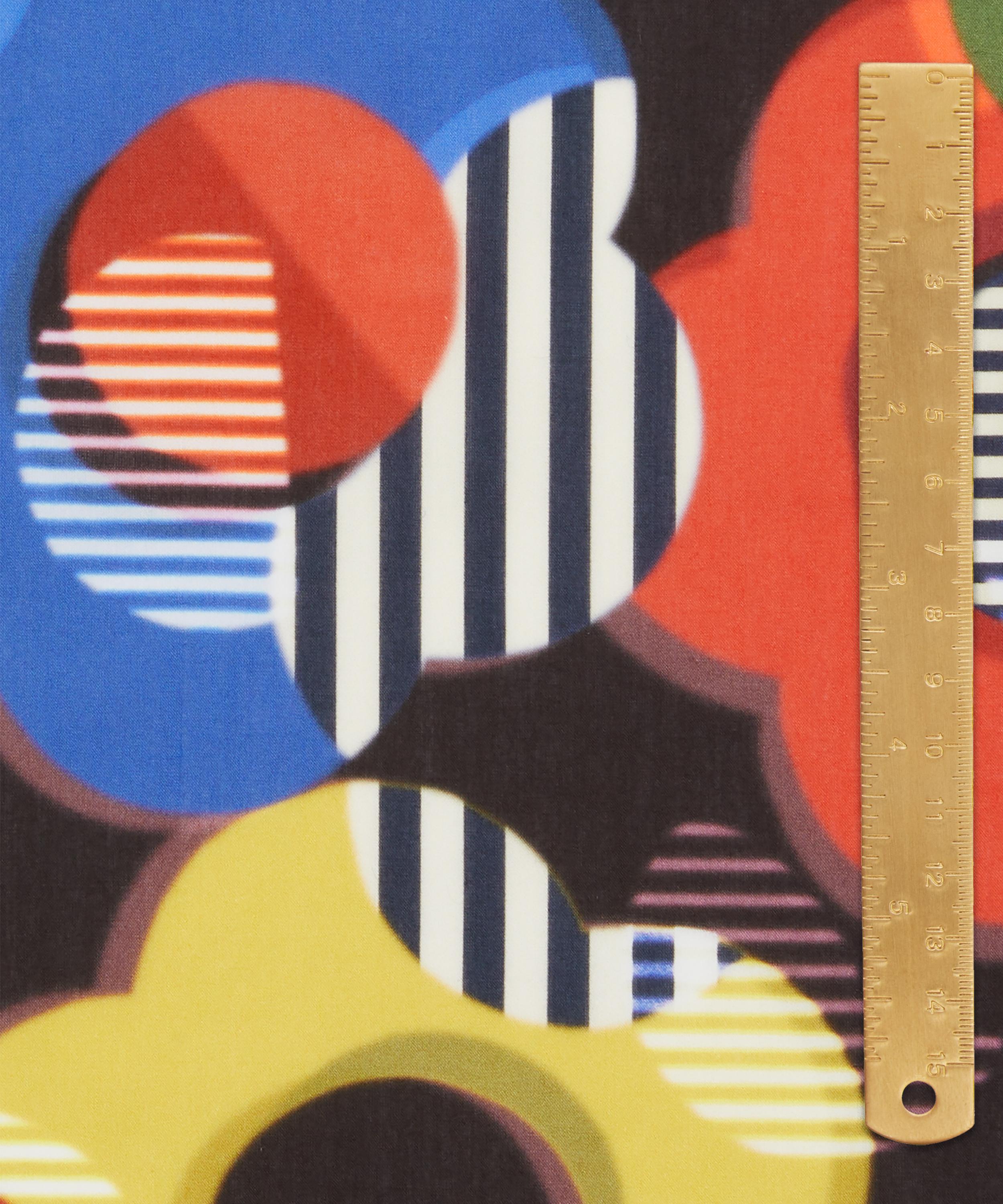 In 1983, Liberty showcased its avant-garde spirit by hosting an exhibition of the radical design group, Memphis Milano. Inspired by the group's hallmarks of playful, sculptural forms and optical, clashing patterns, Memphis Style stands out as a visually arresting design brimming with dazzling vitality. Spherical daisies cast soft overlapping shadows, while graphic cutouts dance amidst contrasting stripes, captivating the eye with a riot of illusory geometries. This print is part of the anniversary collection’s final chapter, Collectibles. Offering a design for each decade, this timeline of hero prints encapsulates 150 years - exploring the design house’s varied and influential handwriting while honouring key moments of creativity and discovery.