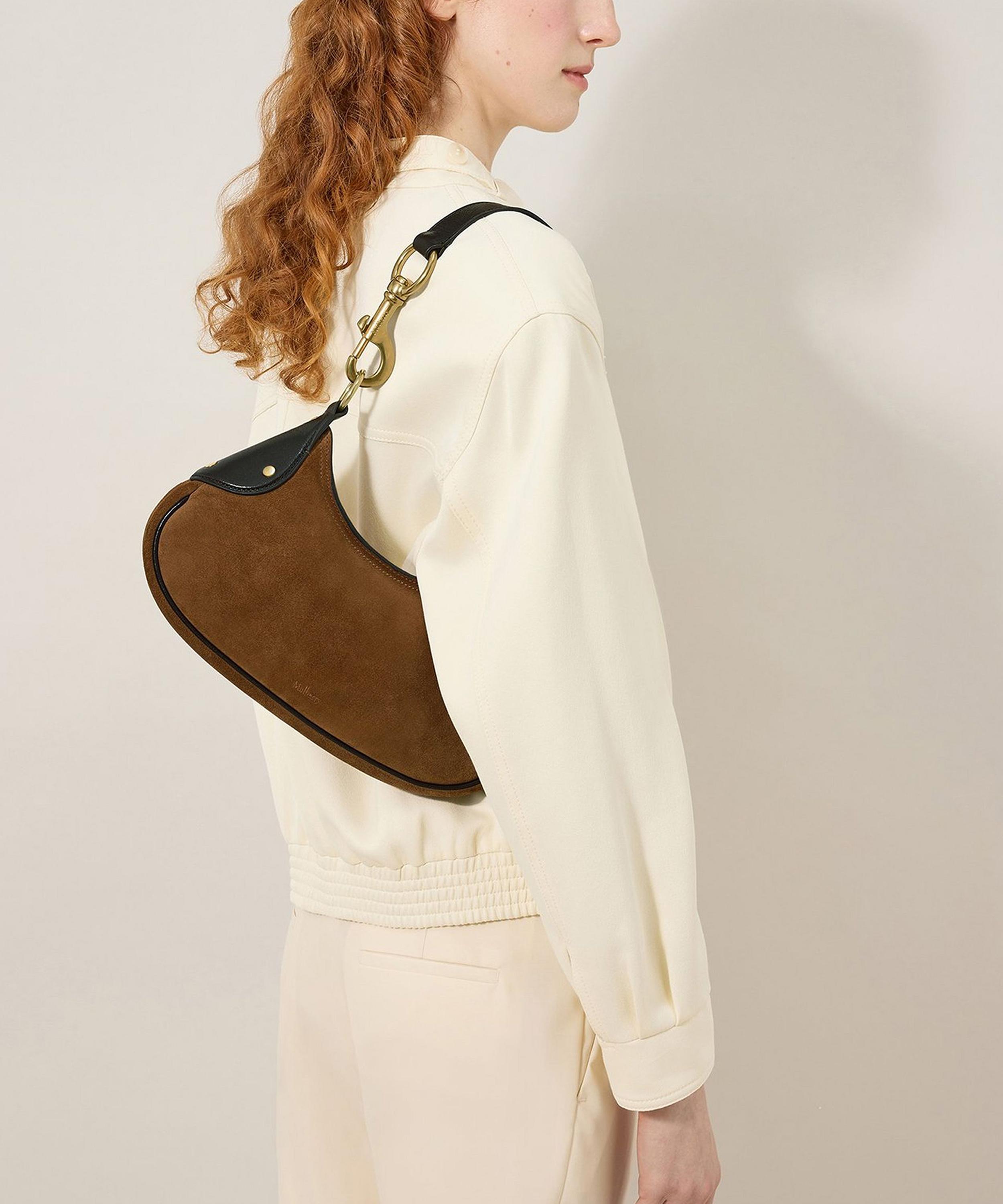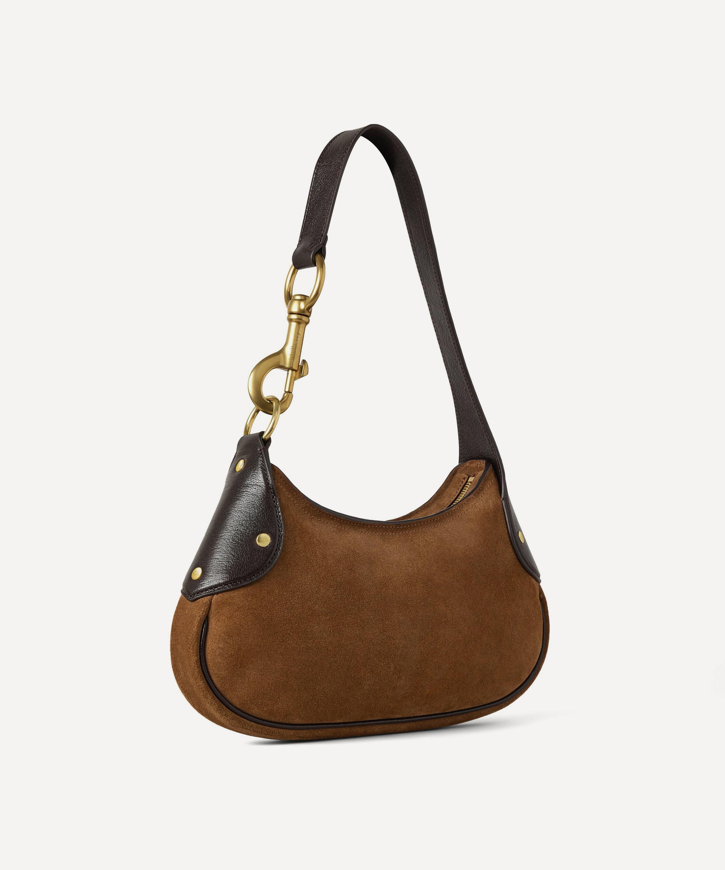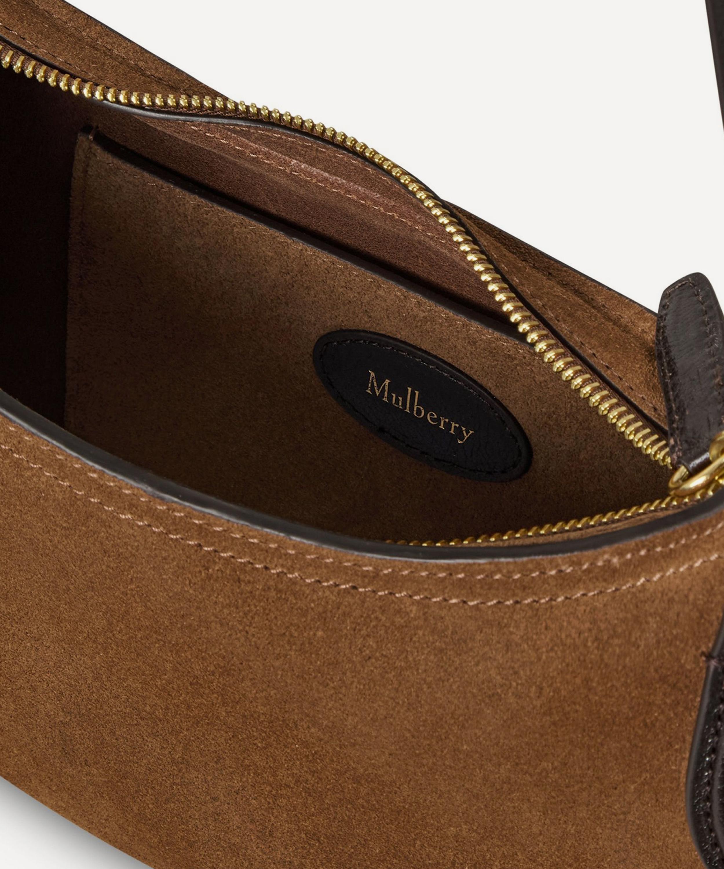 Reimagined in a smaller, yet classic shoulder bag silhouette, this versatile staple is crafted from soft suede leather, and adorned with Mulberry Tree rivet detailing. Finished with brass hardware, and featuring a shoulder strap with signature snap hook detailing, it is the perfect essential for a warmer take on effortless style.