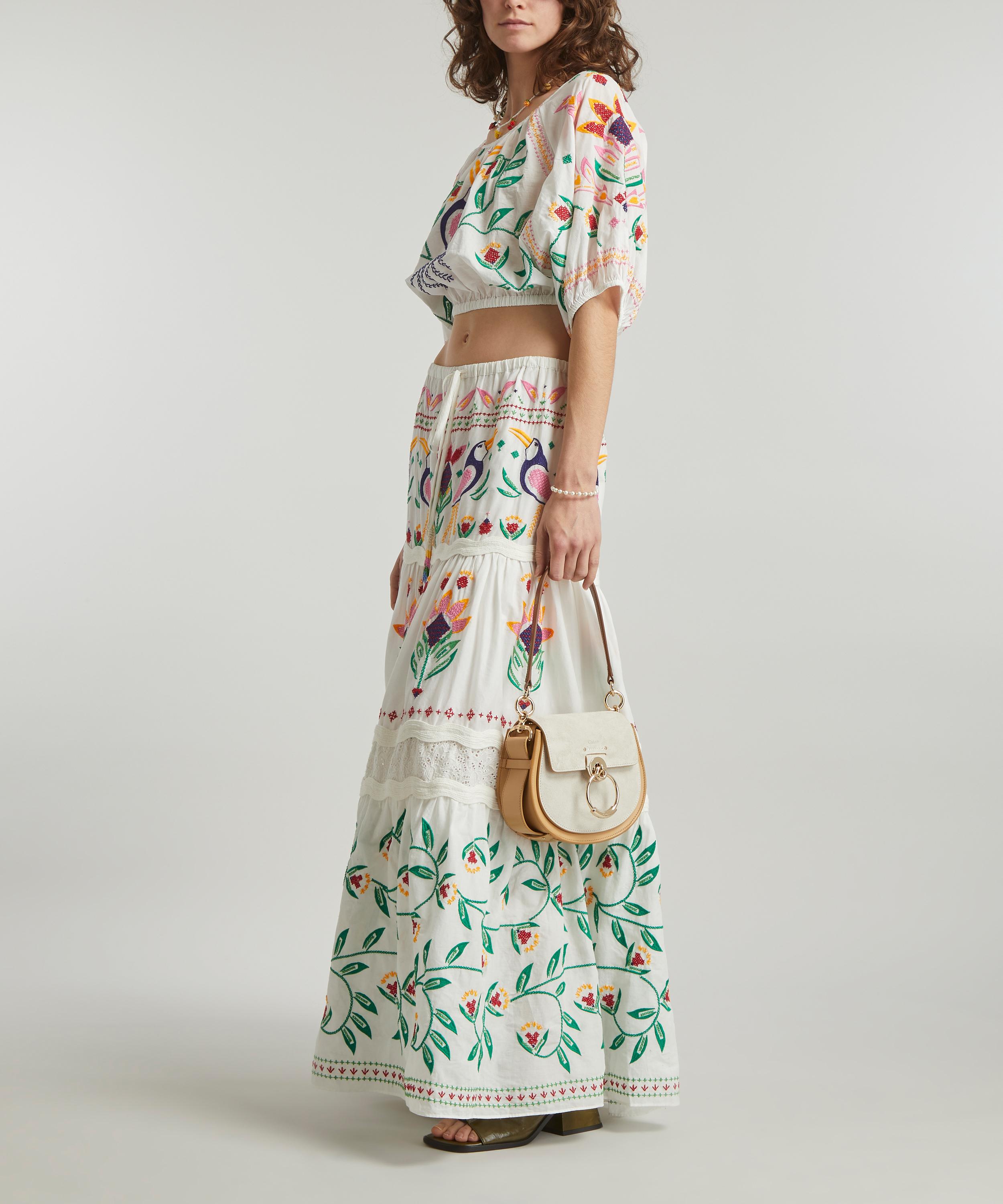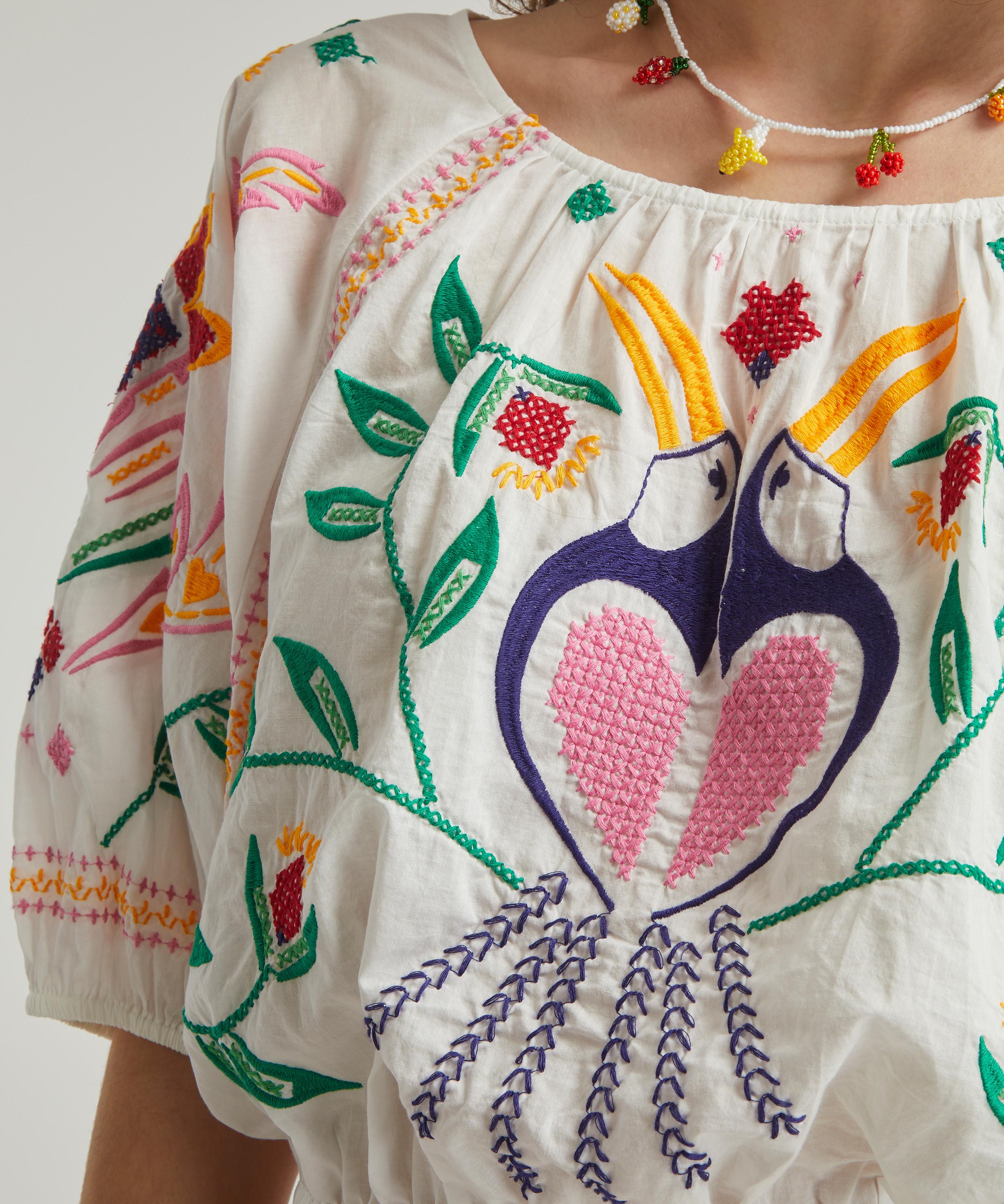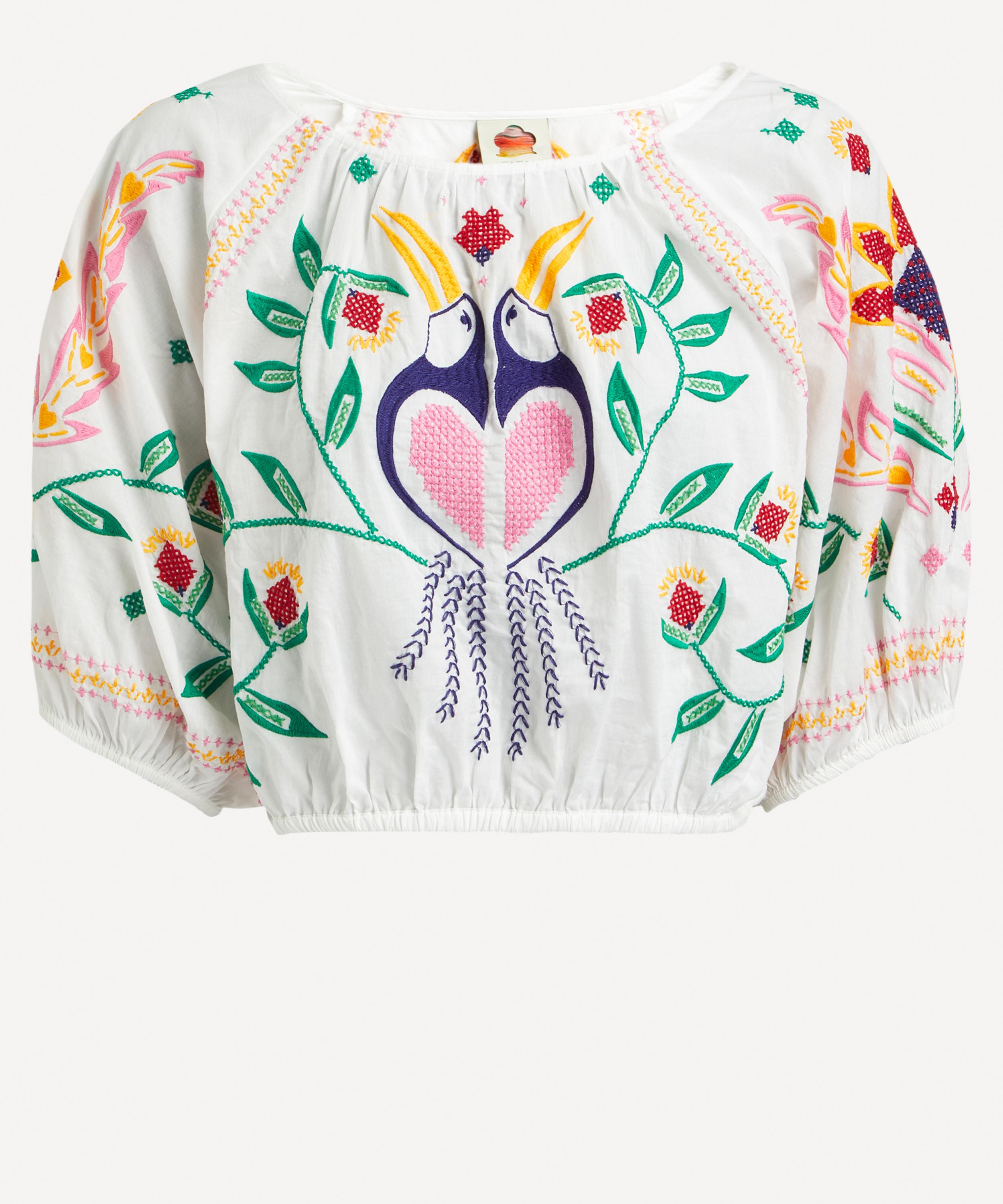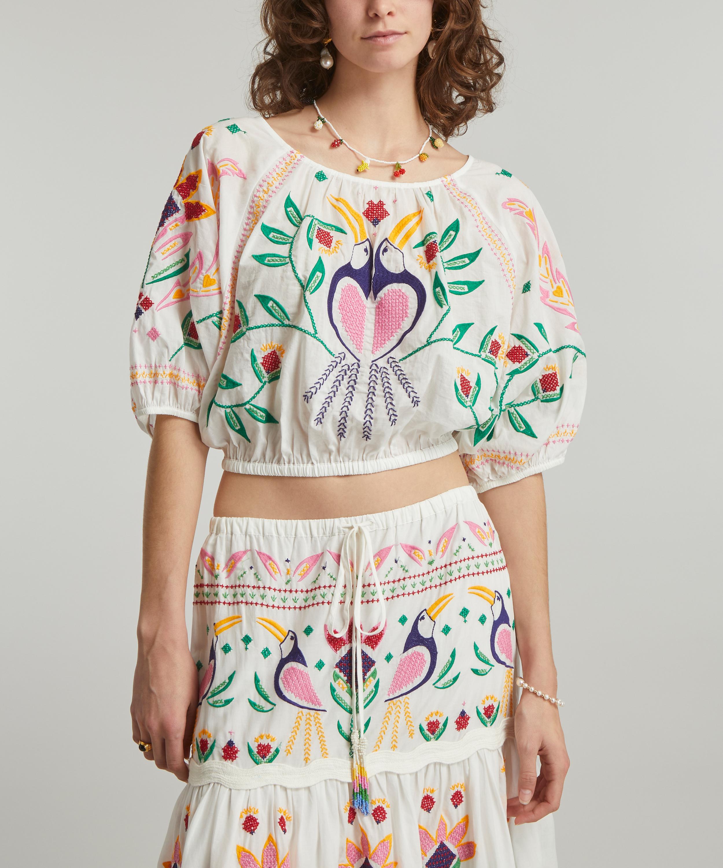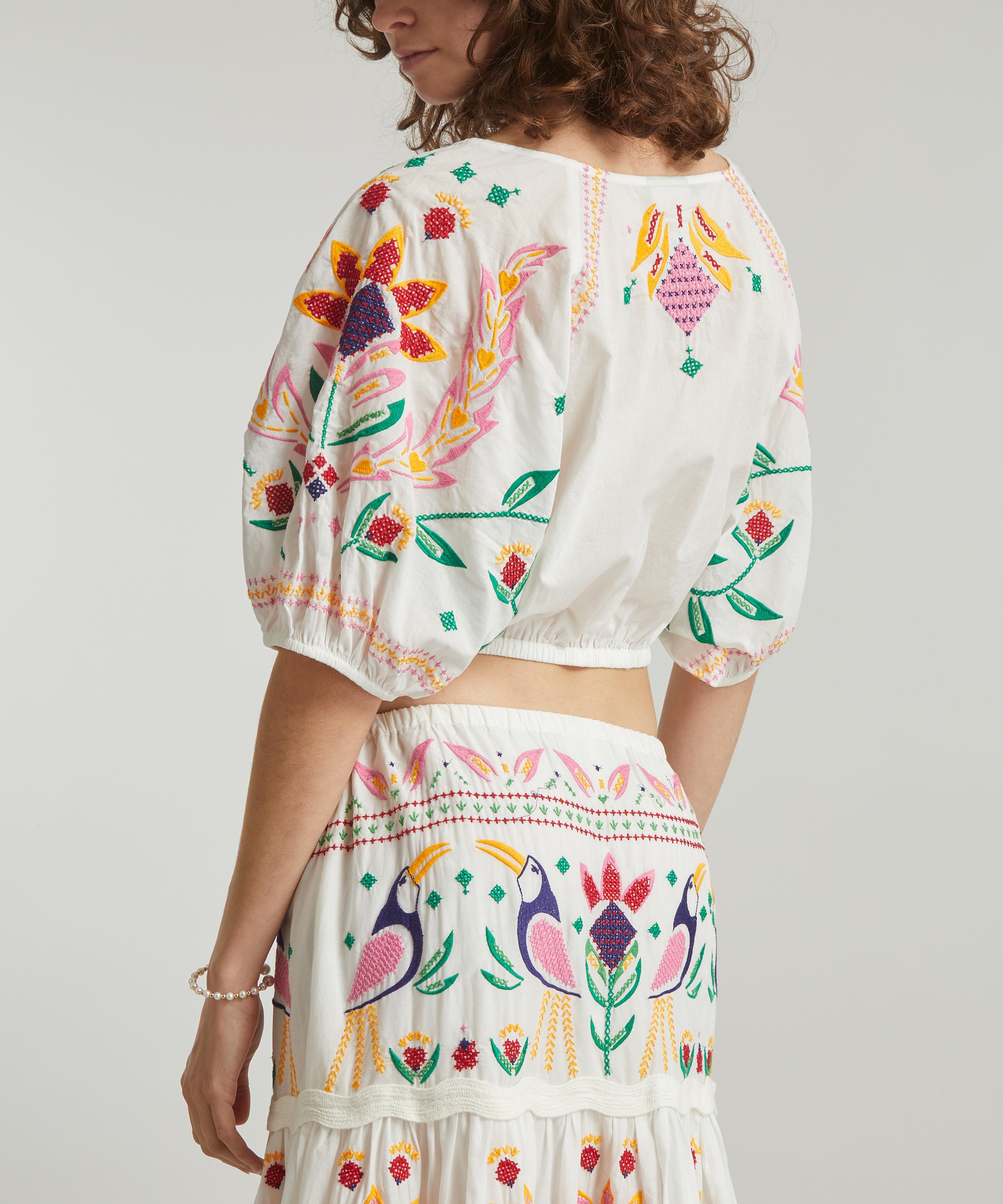 The Summer Garden crop-top from Rio de Janeiro-based label FARM Rio brings some Brazilian vivacity to your new-season edit. Adorned all-over with intricate embroidered birds and botanicals, this cropped cotton blouse is effortlessly relaxed with its elegant scoop-neckline and blouson sleeves. Pair it with the matching Summer Garden Embroidered maxi-skirt to complete your sun-filled look.
