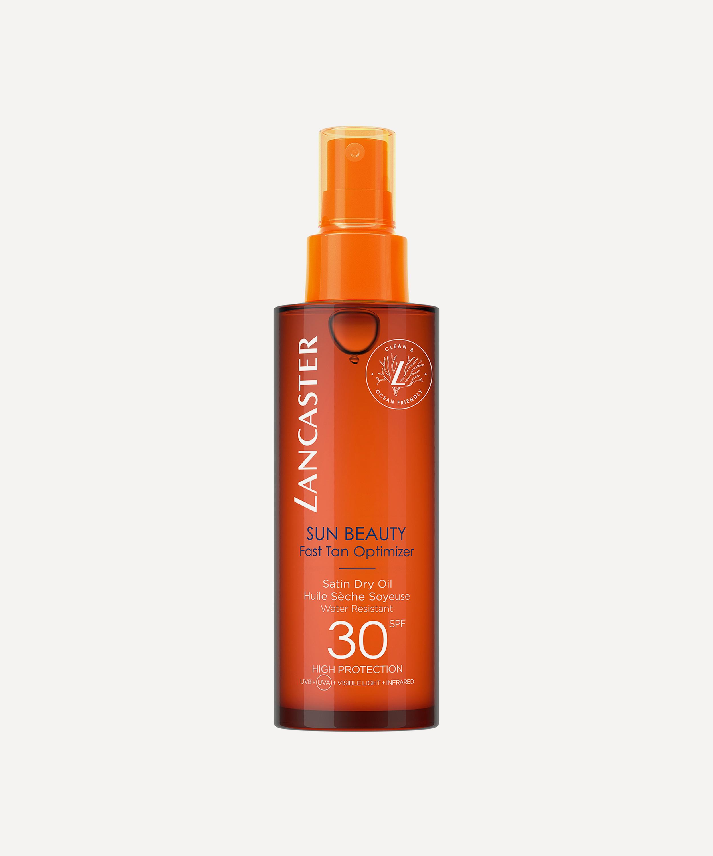 Revealing a sun-kissed complexion without any harmful effects, Lancaster's Sun Beauty Satin Dry Oil SPF30 is a dry-touch face and body oil.