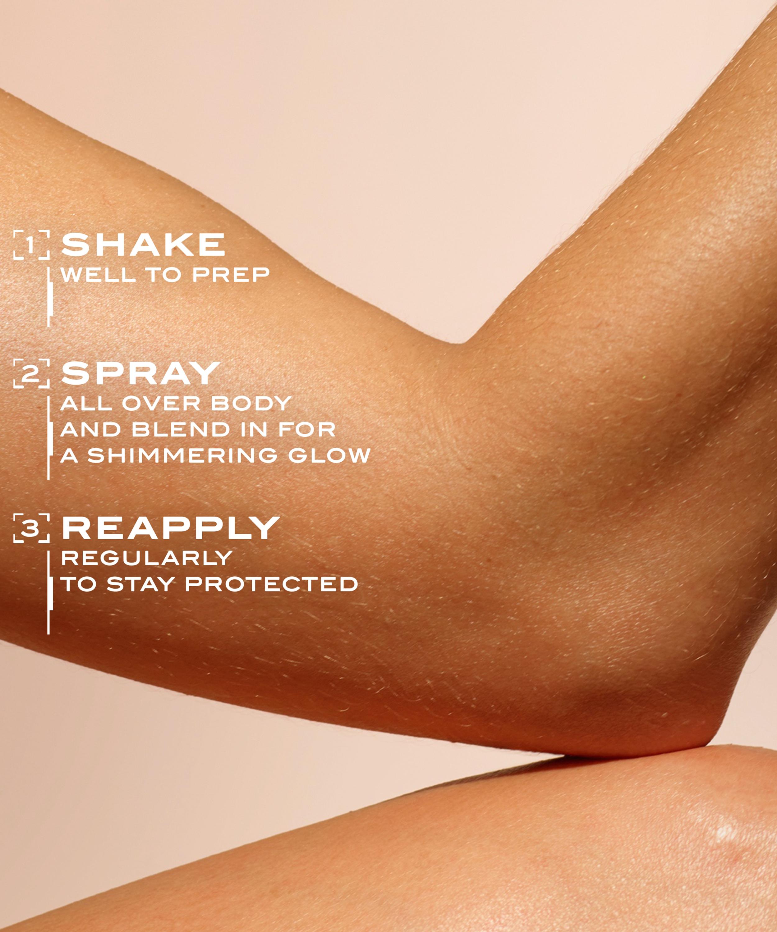Shake well before use and spread the product evenly with your hands. Apply Satin Dry Oil all over body before sun exposure. Reapply every 2 hours