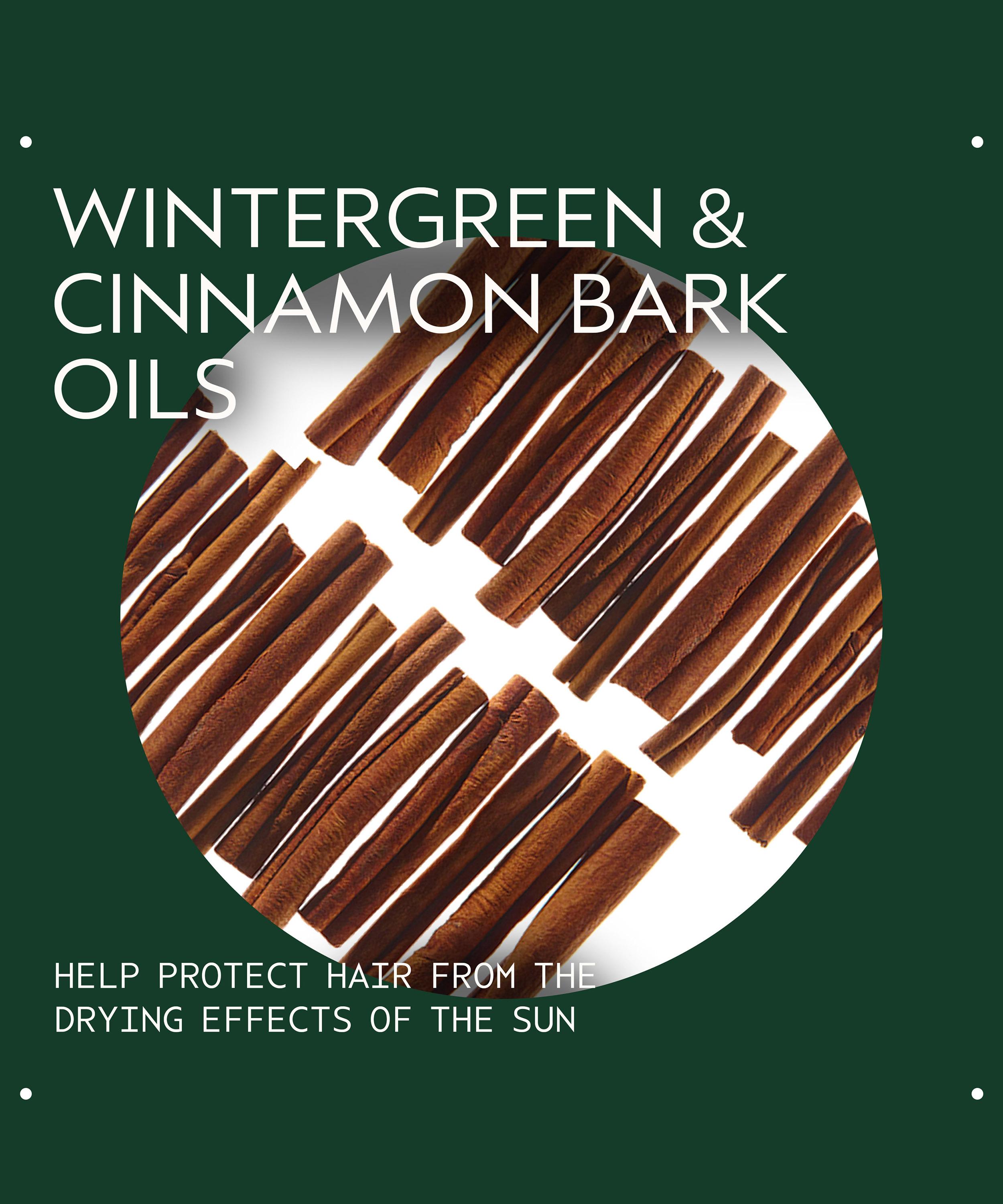 • Formulated with natural UVA/UVB filters wintergreen and cinnamon bark oils
