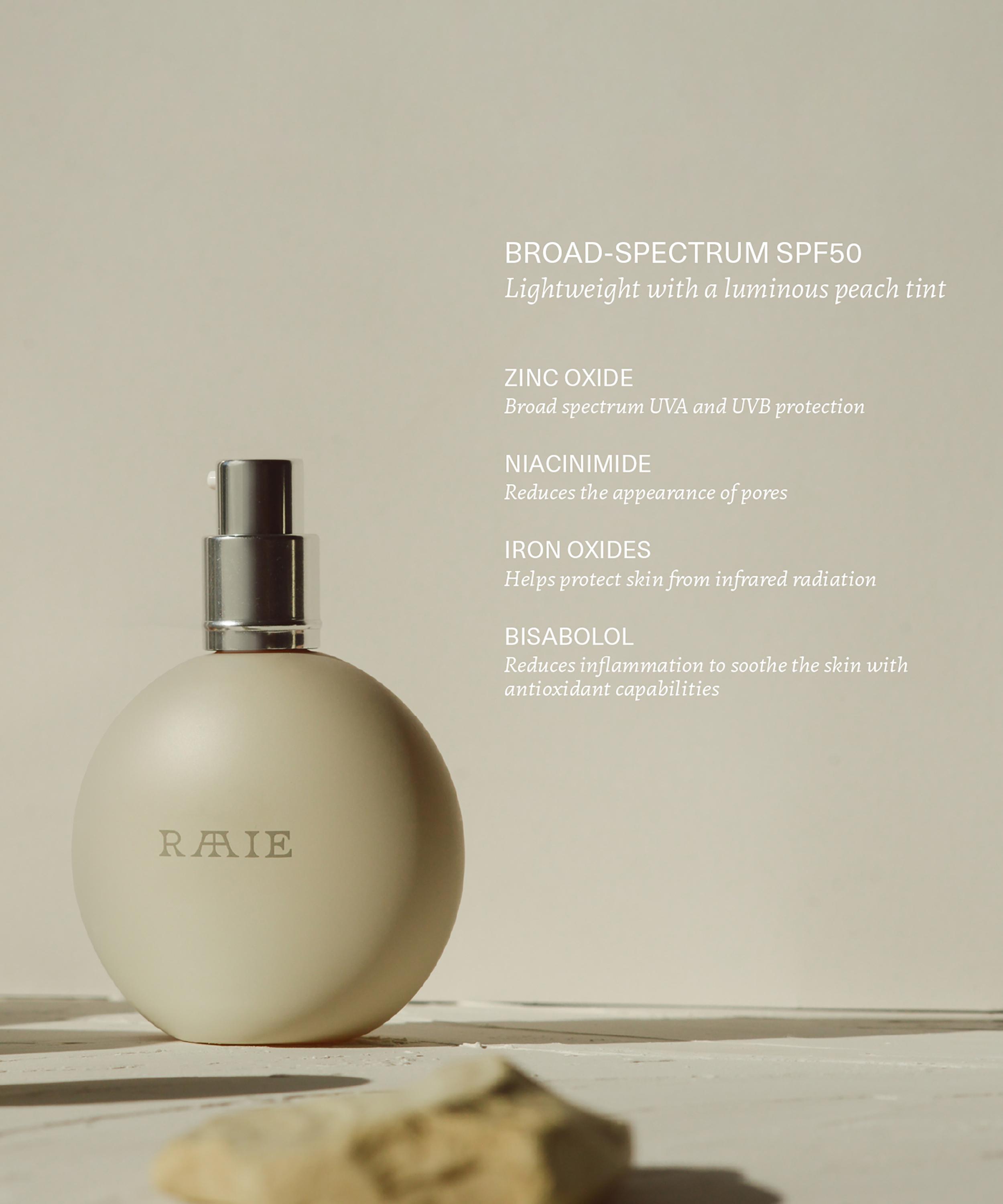 RAAIE's Sun Milk Drops Tinted SPF50 is a lightweight tinted mineral sunscreen that helps to balance redness by evening-out the skin tone, while providing immediate broad-spectrum protection.