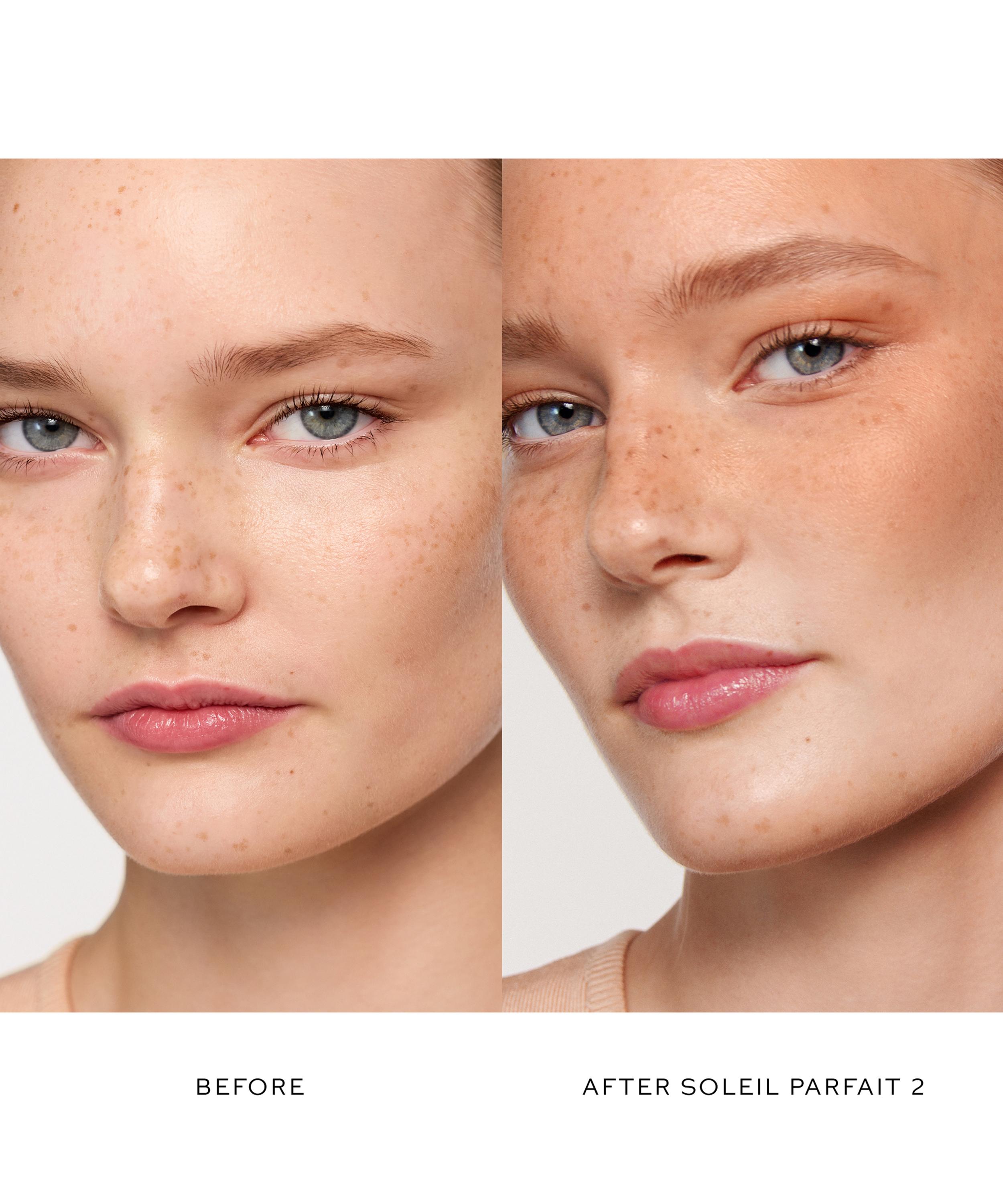 For a more targeted bronze, apply anywhere the sun would naturally hit—over cheeks, temples, forehead.