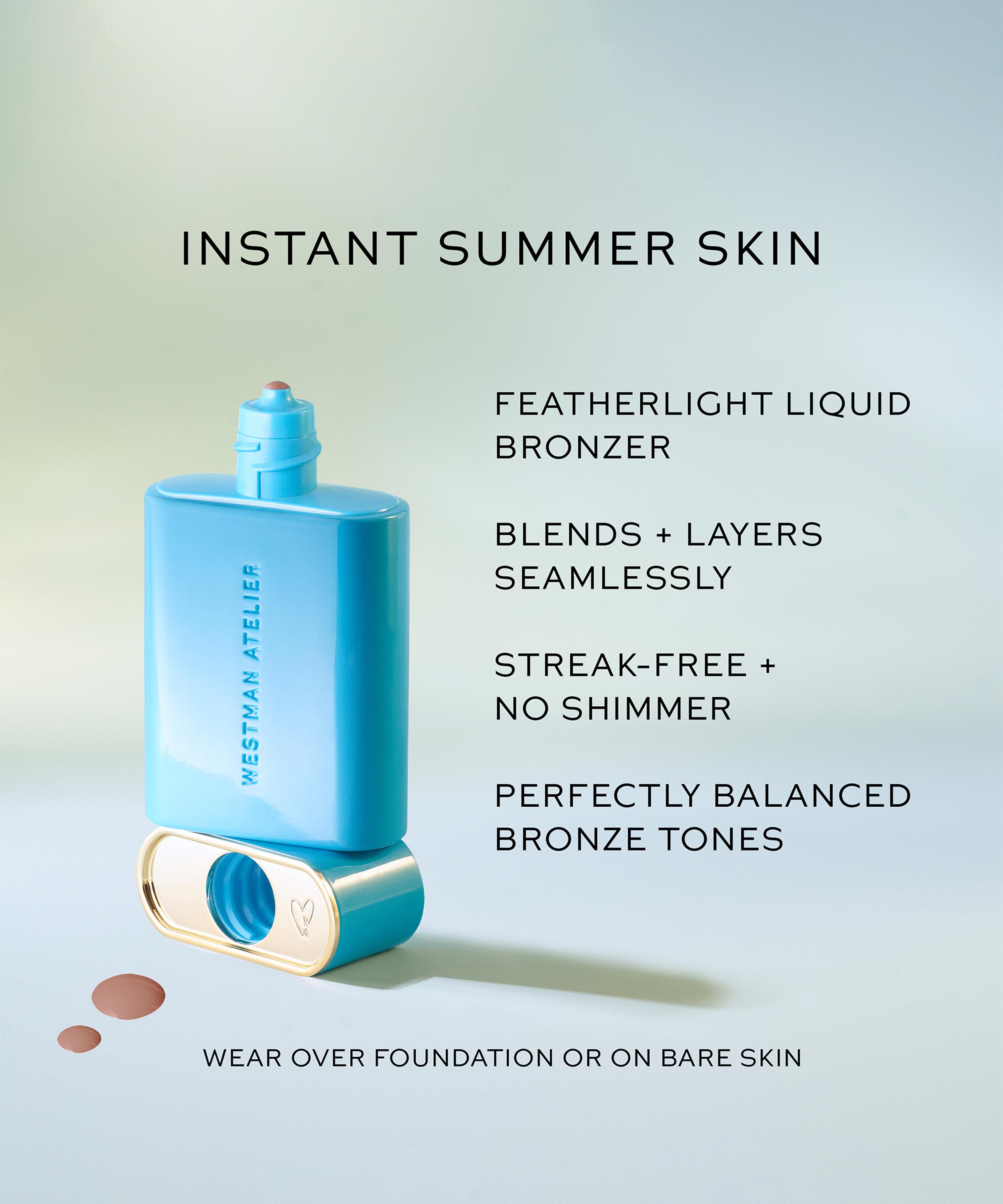 Westman Atelier's Sun Tone Bronzing Drops is a mattifying liquid bronzer that instantly delivers hydration-boosting skin care benefits for a firmed, sun-kissed appearance.