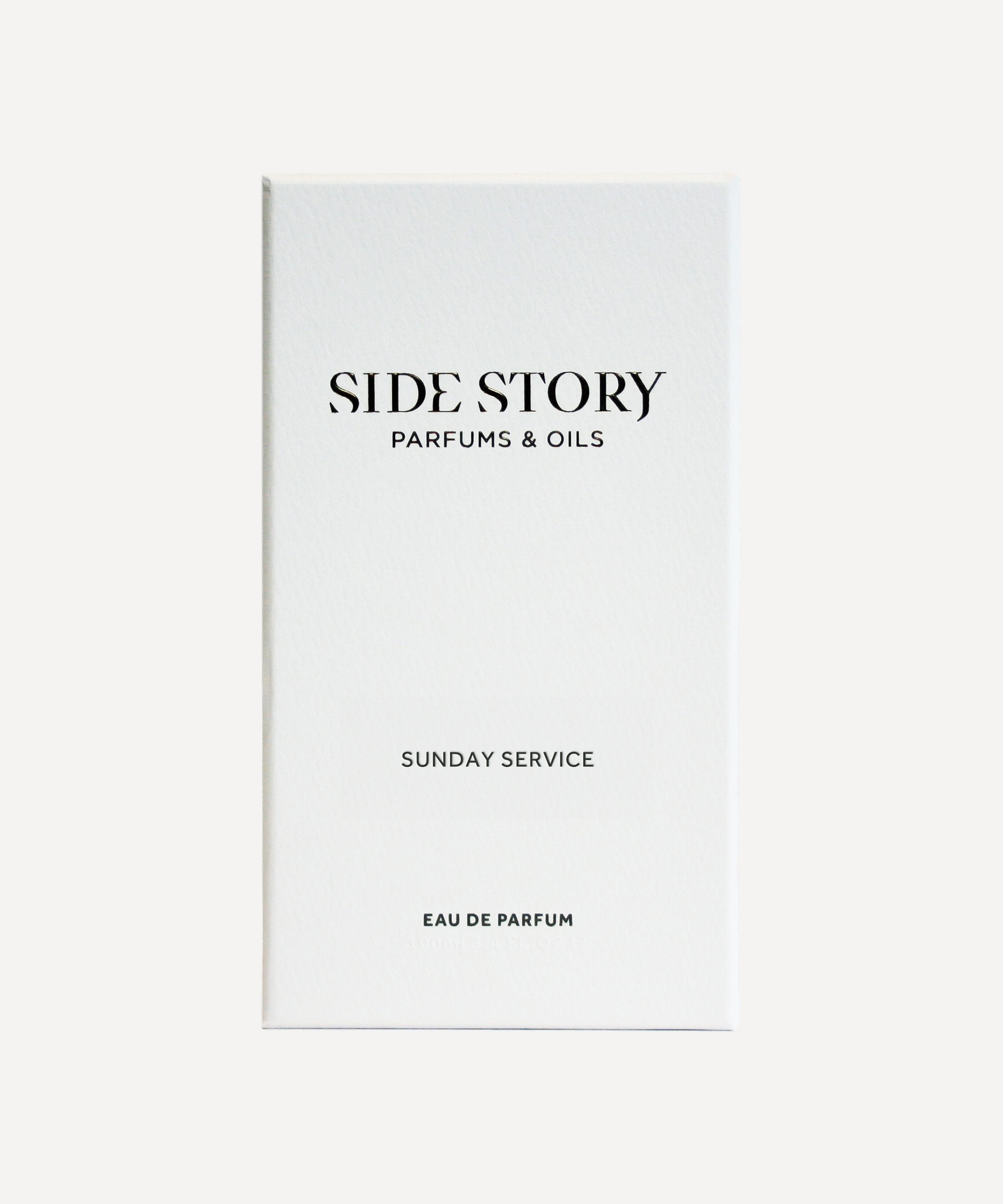 Envelop in the warm embrace of Side Story's Sunday Service eau de parfum, a spicy, woody fragrance, softened with a touch of antique rose.
