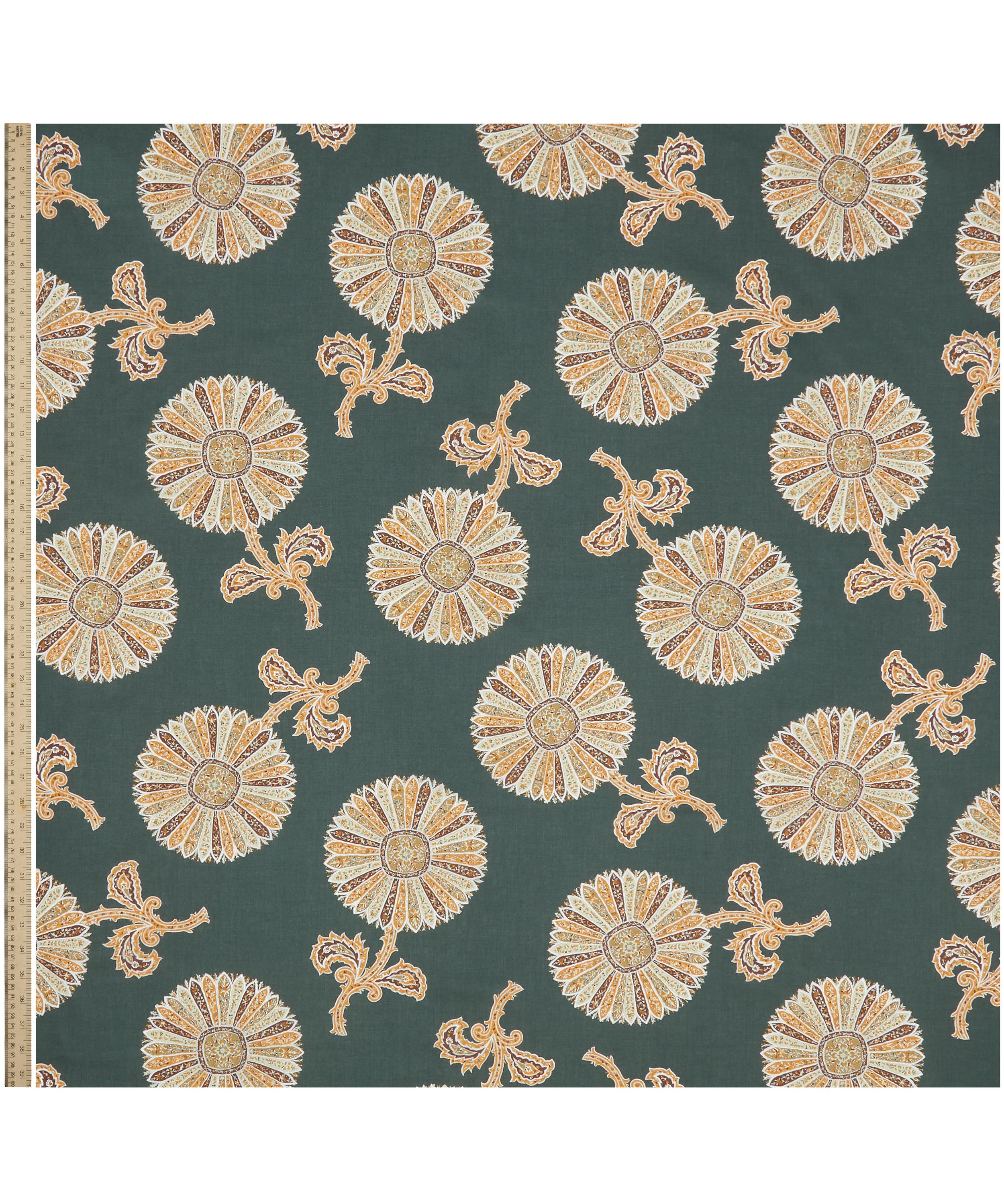 Adapted from a tiny fabric fragment discovered in the Liberty archive and dated between 1830s-1860s, this statement print conjures up both the old and the new in equal measure. A traditional paisley is arranged in an ultra modern layout with lots of ground space, creating an otherworldly, sunflower hybrid. This print is part of the Floral Wonderland narrative of the AW24 collection, which celebrates a world of never-before-seen species and hybrid varieties created from the Designer’s imagination – a real carnival of nature.