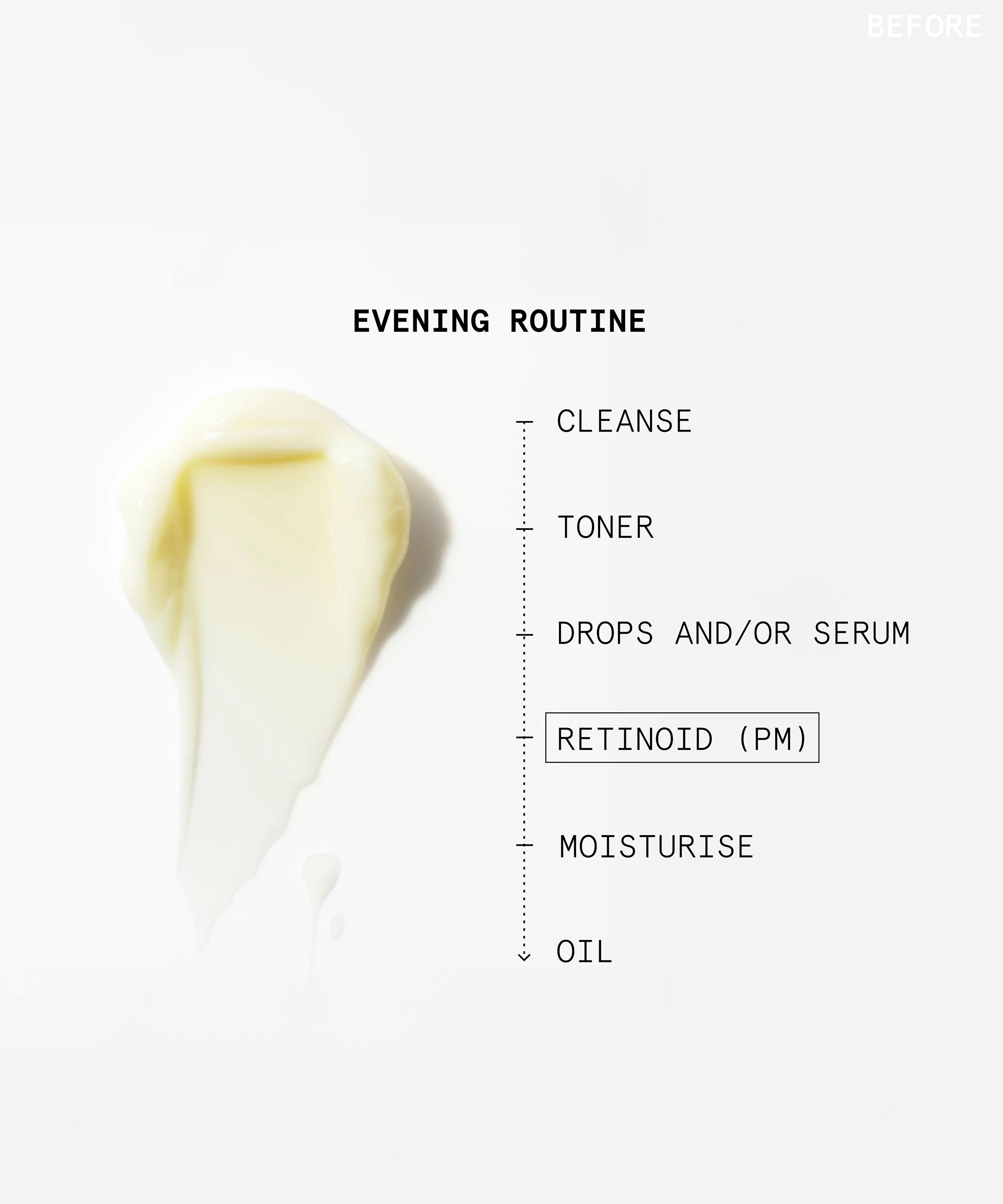 At night, massage a generous amount onto a well-cleansed face and neck and follow with a hydrating moisturiser. And don’t forget to wear SPF in the morning.
