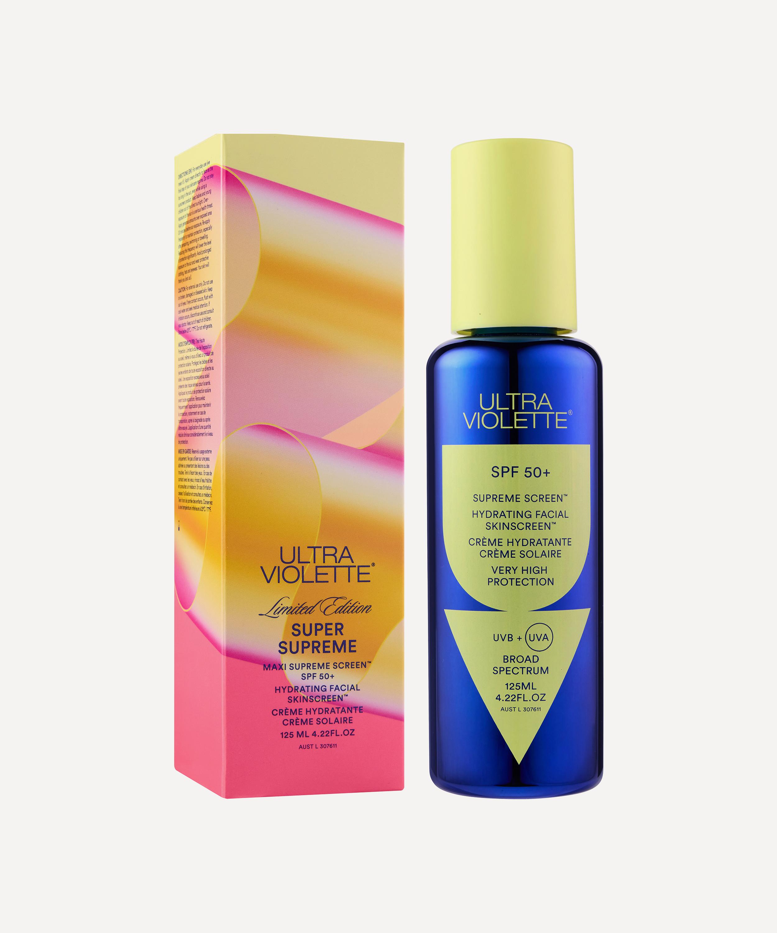 Housed in a jumbo-sized pump dispenser bottle, Ultra Violette's Super Supreme Screen SPF 50 Hydrating SKINSCREEN is a multi-tasking, three-in-one formula that works as a sunscreen, moisturiser and primer.
