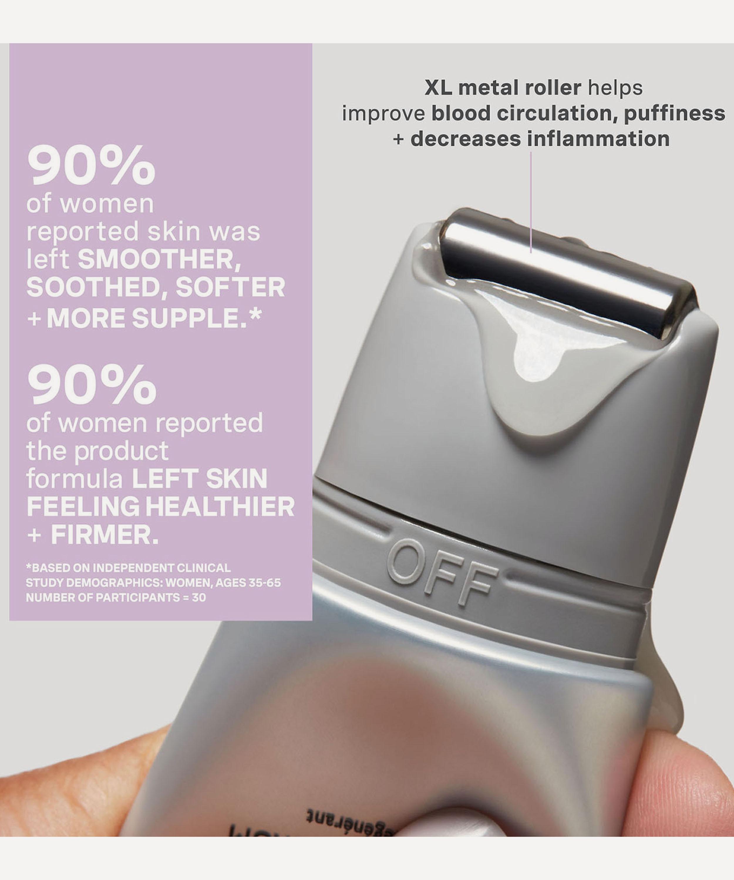 Apply a thin layer to dry, clean skin on face, neck, and décolleté twice a day. Massage gently with included roller.