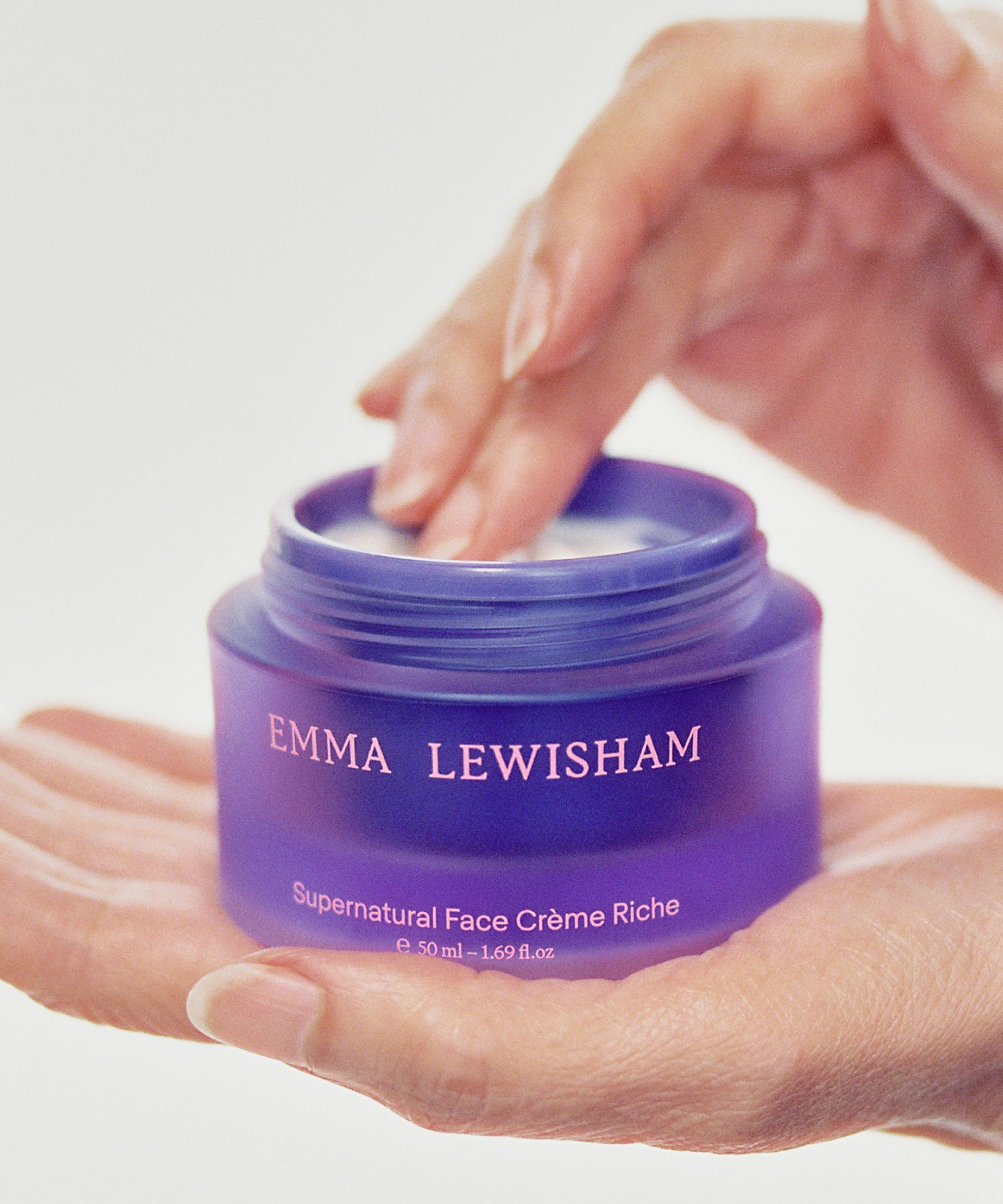 Boasting a luxuriously velvety texture, the Supernatural Face Crème Riche from Emma Lewisham is an intense daily moisturiser, crafted to powerfully hydrate, plump and smooth skin.