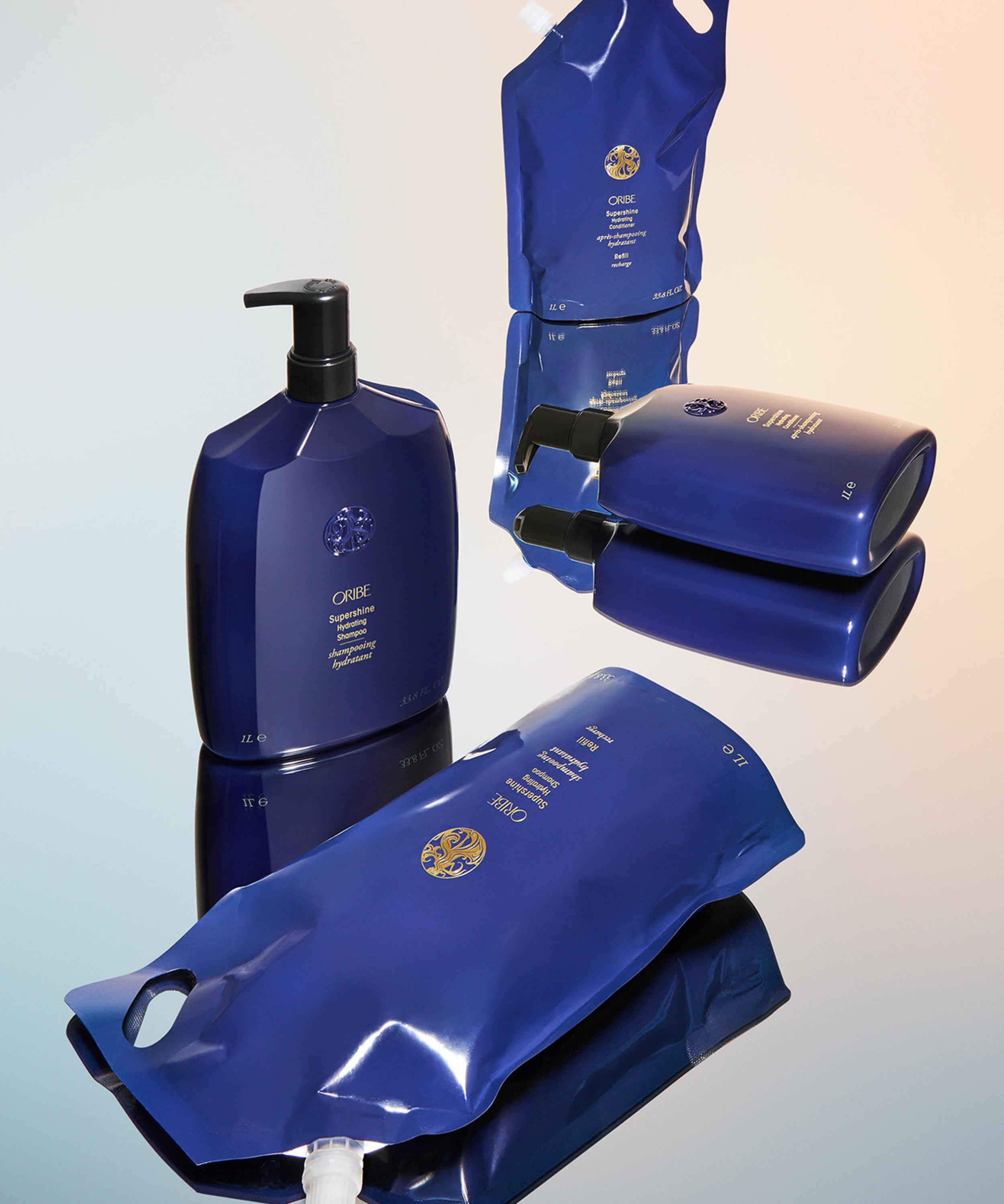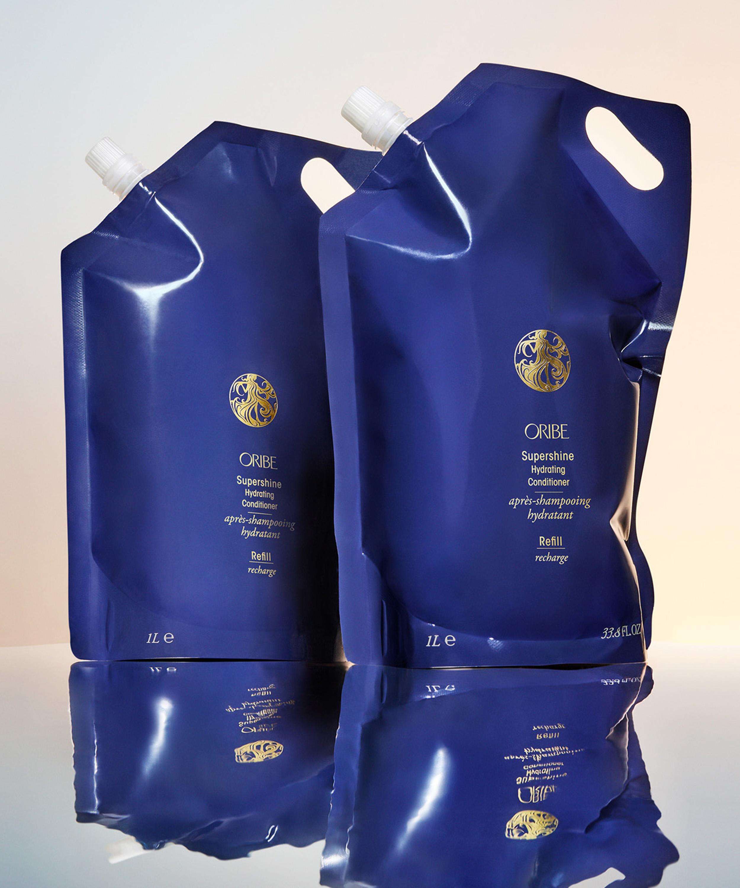 Oribe’s Supershine Hydrating Conditioner Refill Pouch transforms dull hair into captivating, luxurious locks, achieving multi-dimensional shine and hydration without wearing the hair down.