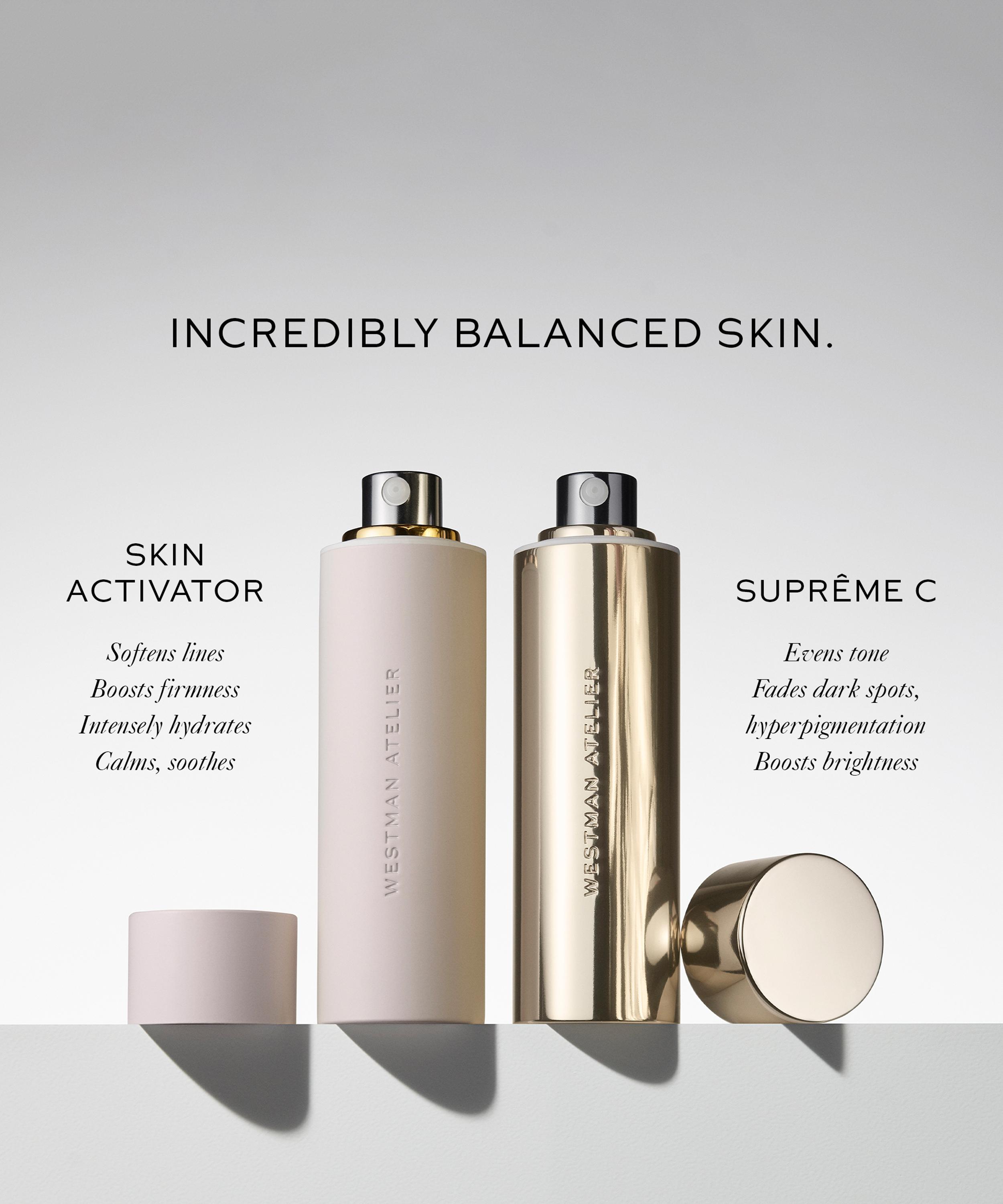 Westman Atelier's Suprême C is a powerful, single-ingredient serum, crafted to diminish hyperpigmentation, and reveal a more even, uniform complexion. This antioxidant-rich, springy gel-oil formula absorbs instantly to transform skin, through a potent, yet gentle vitamin C – leaving skin hydrated, supple, radiant and visibly more even.