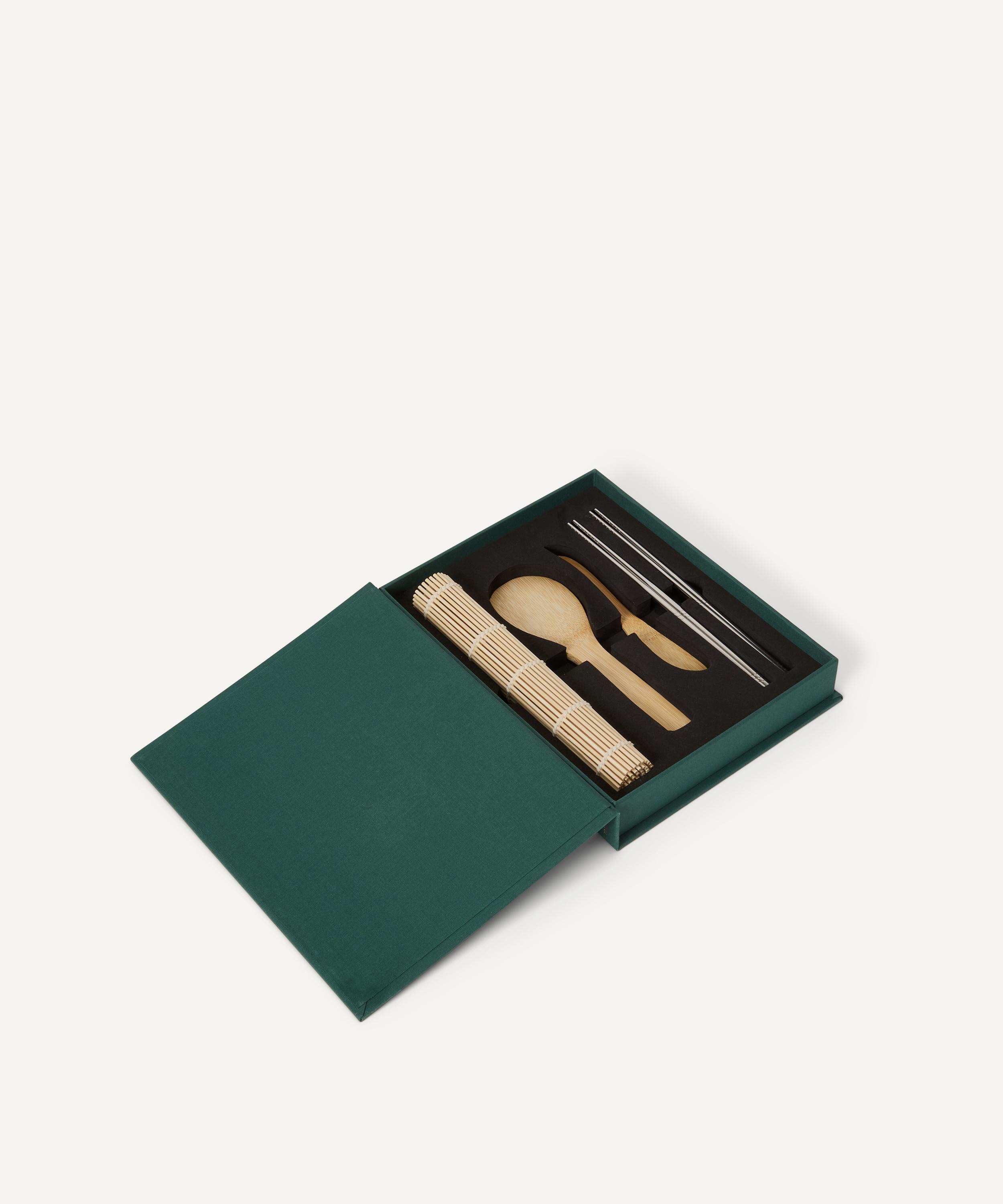 A perfectly tailored toolbox, this set includes a rice paddle, spreading knife, rolling mat and chopsticks, beautifully stored in cookbook-esque presentation box that is ready to be styled seamlessly amongst the shelves in your kitchen. Whether hosting or gifting, this sushi set will have you covered – prioritising practicality without compromising on timeless design.About Printworks